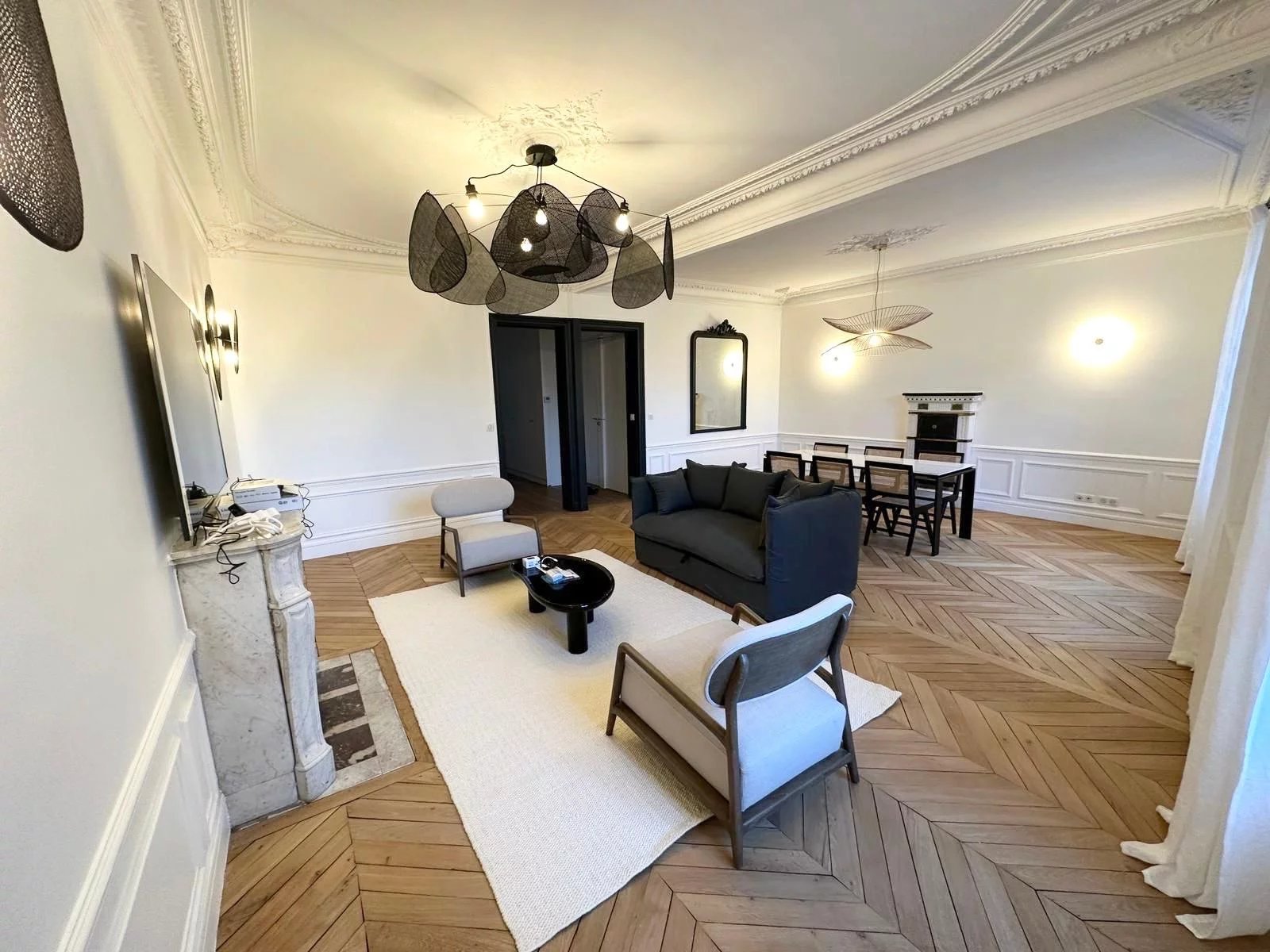 PARIS XVIeme - L'Agence Alexandre Properties vous propose un magnifique appartement de 110m2en parfait etat situe au 3eme etage desservi par ascenseur,dans un immeuble ancien de bon standing. Il se compose d'une entree, un double sejour, une cuisine separee entierement equipee, 3 chambres, 2 salles de douche, une buanderie avec lave linge et seche linge. Disponible a partir du 15 Avril 2025. Bail residence secondaire ou bail societe uniquement. Minimum llocation 1 an I