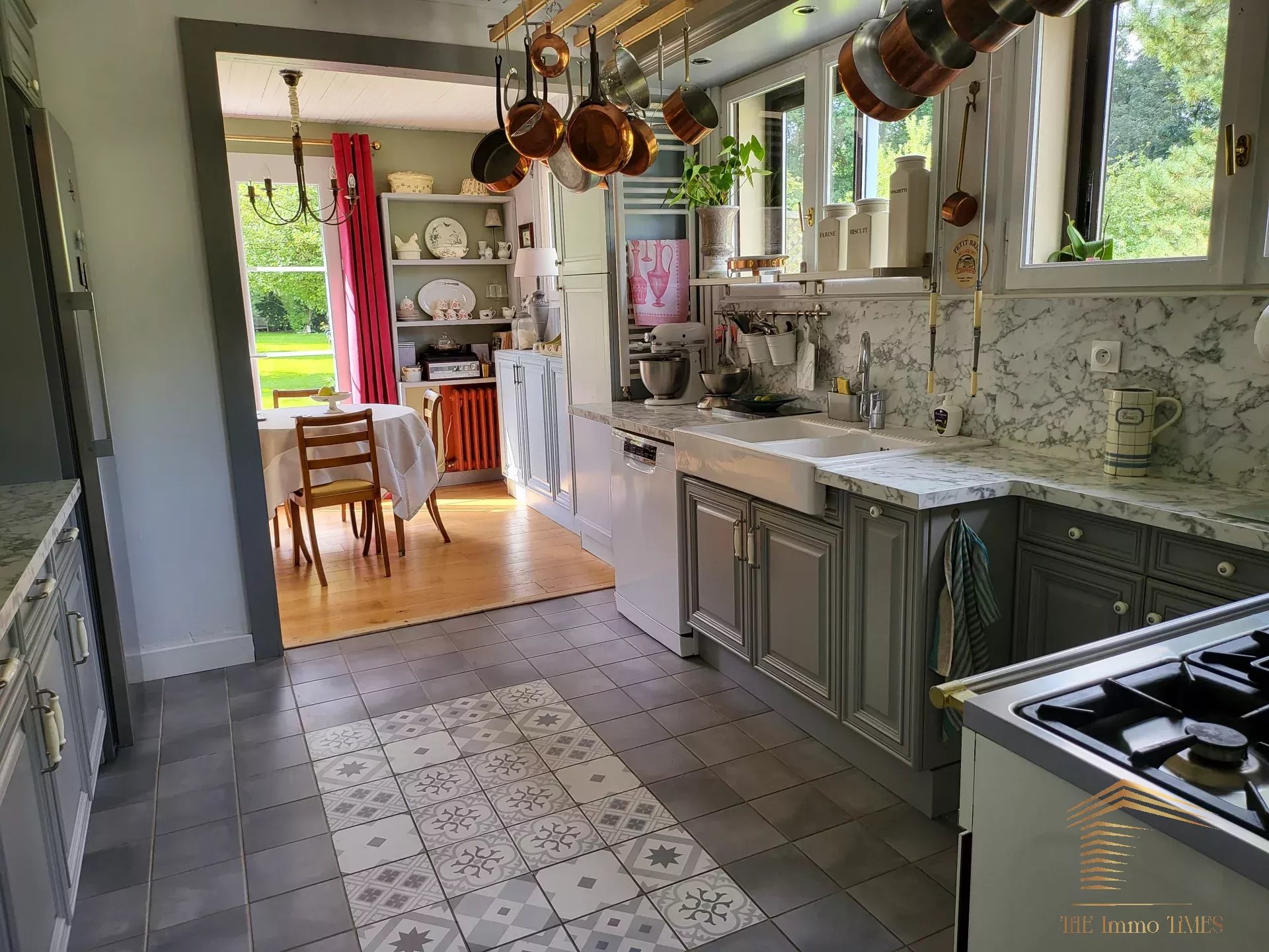 Ensemble immobilier comportant une maison de 216 m2 au sol, un ancien pressoir d'une surface de 300 m2 au sol et une petite dépendance de 60 m2, sur un terrain de 7000 m2 paysager (verger, jardin fleuri aménagé). A 5 mn de la gare SNCF et des accès aux autoroutes Amiens, Paris, le Havre, Rouen, Dieppe - Rez de chaussée : Entrée, vestiaire, WC - Cuisine aménagée équipée avec coin-repas, séjour-salon de 50 m2, 2 chambres dont une suite, salle de douche avec WC, lingerie, nombreux et grands placards . - à l'étage : Pallier/Bureau, 4 Chambres dont une avec cabinet de toilette, salle de douche WC, petit grenier. sous-sol partiel. Chauffage avec pompe à chaleur et ballon thermodynamique. Classe énergie : C