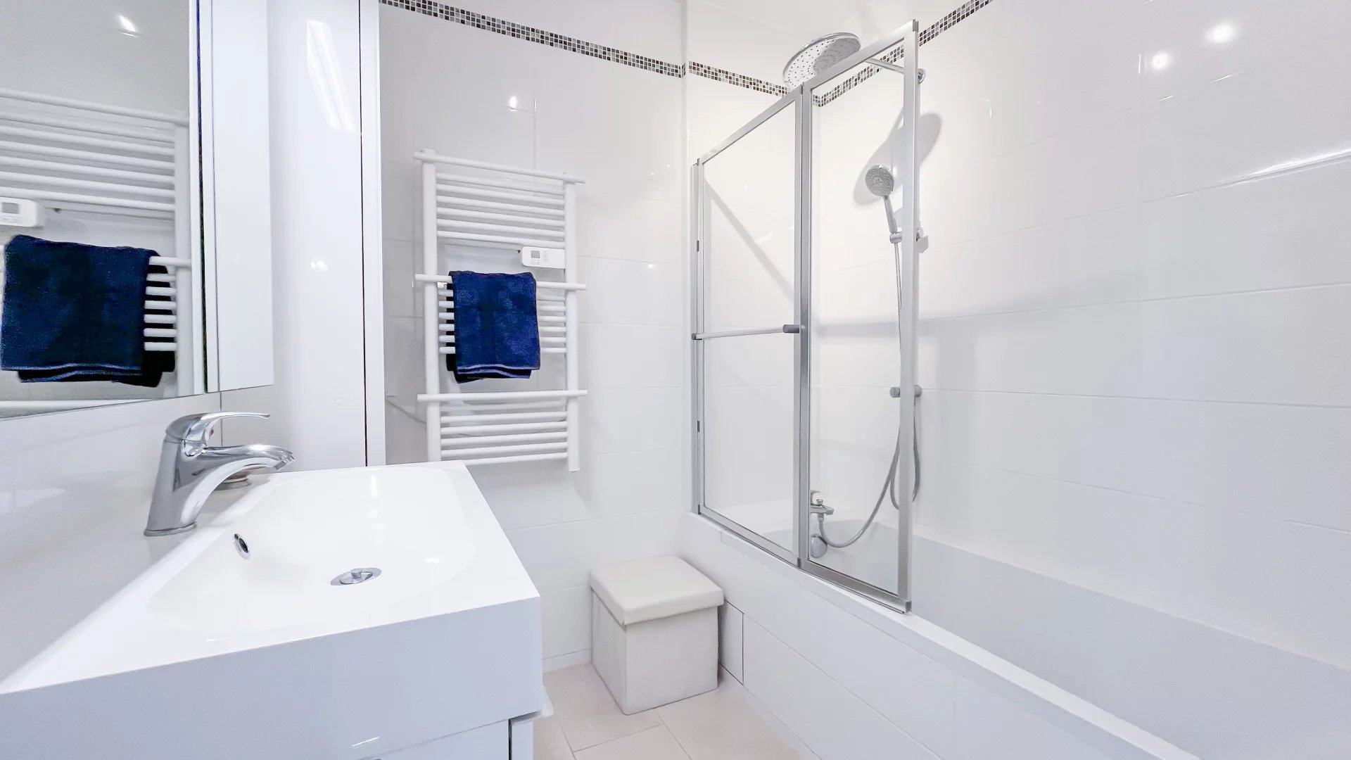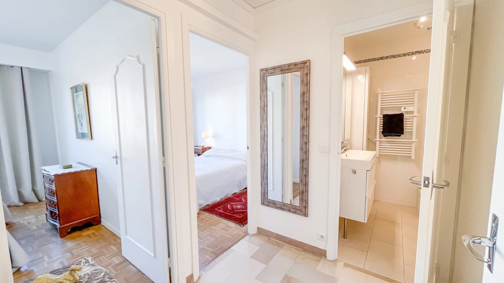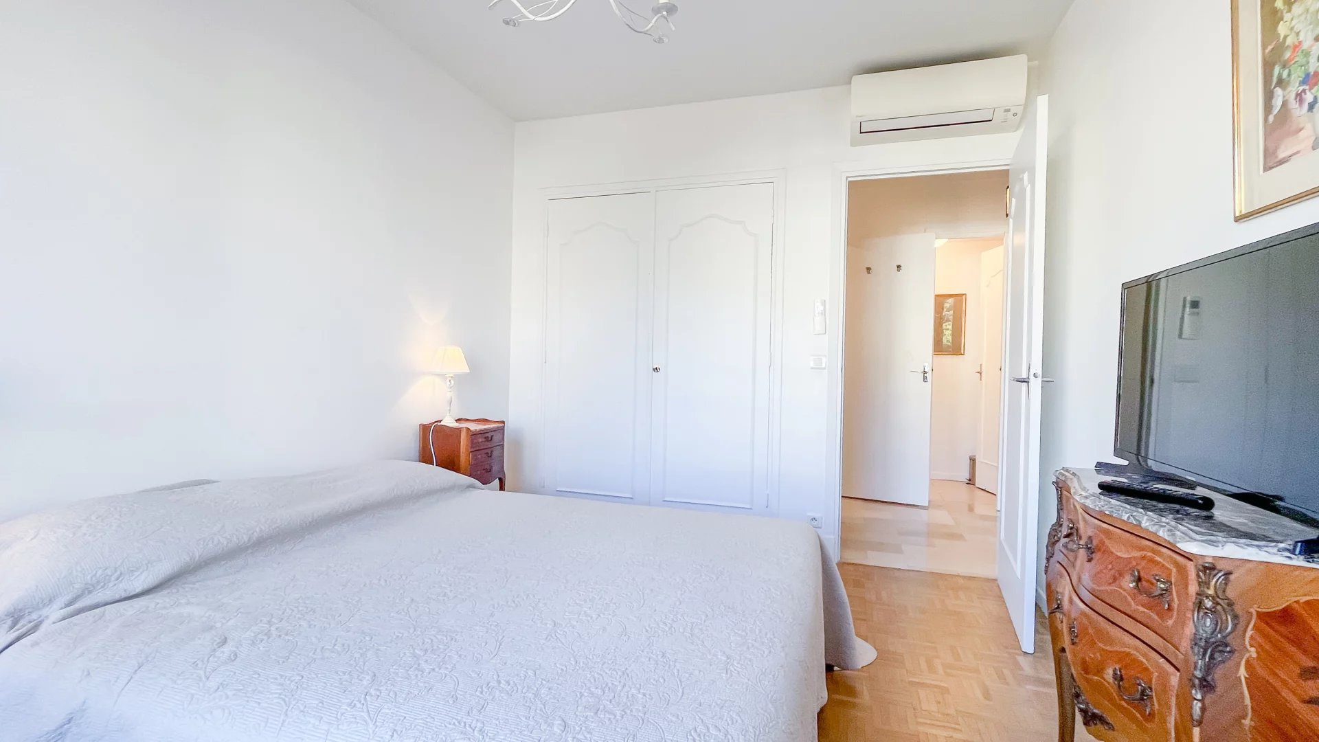 Pour votre confort, l'appartement est entièrement équipé de la climatisation, du double vitrage, de volets roulants électriques et stores.