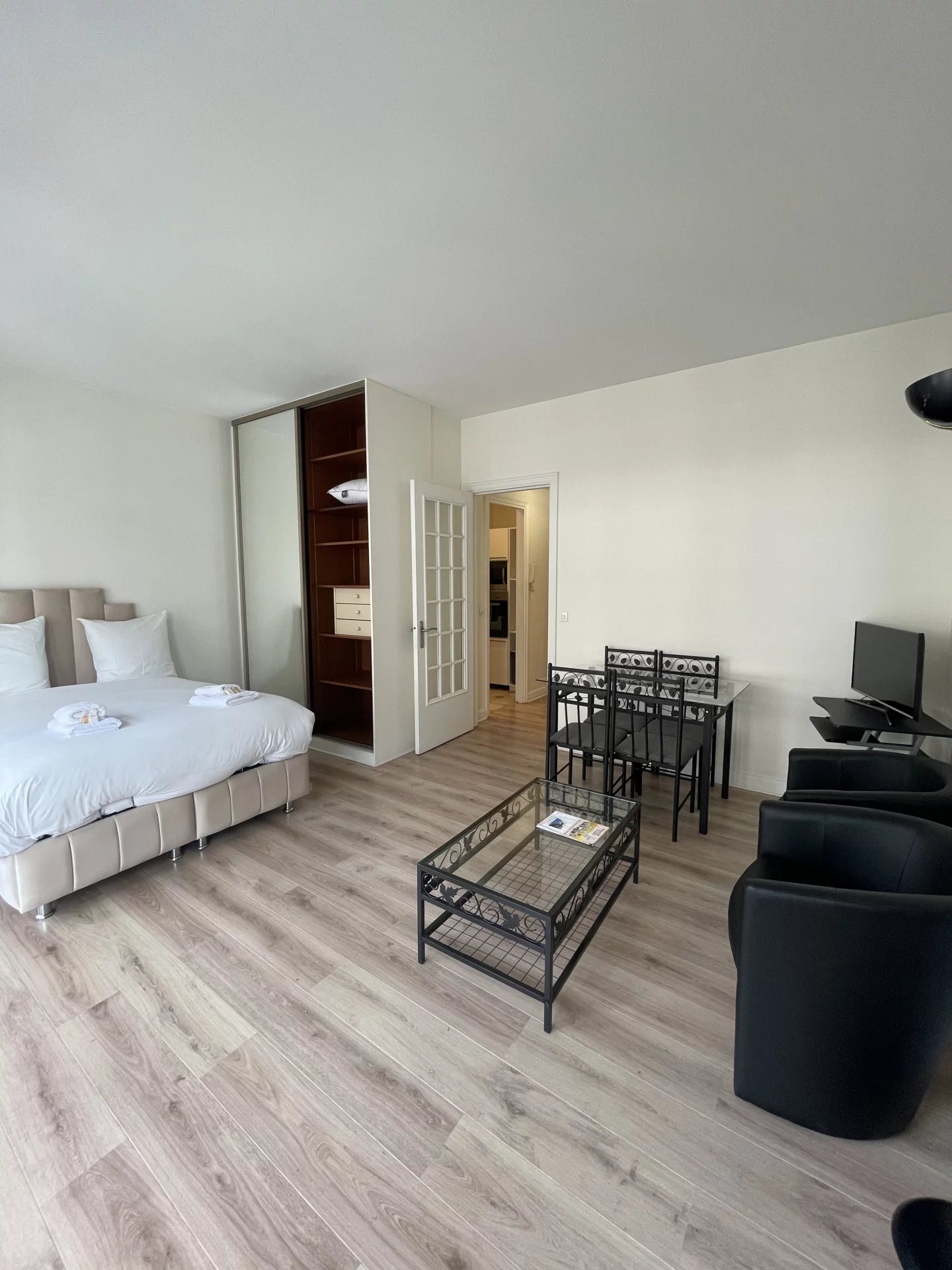 Belmont Properties vous propose à la location ce spacieux studio de 30 m² avec balcon, situé au 4e étage avec ascenseur d’un immeuble de bon standing dans le 16e arrondissement. Le bien se compose d’une entrée, d’une cuisine séparée, d’une salle de bains avec baignoire et lave-linge, de WC indépendants, ainsi que d’une grande pièce de vie comprenant un coin nuit, un espace salle à manger, et un accès direct à un large balcon. Le loyer comprend le chauffage, l’électricité et le wifi. Un appartement confortable et lumineux, idéalement situé dans un quartier résidentiel et recherché.