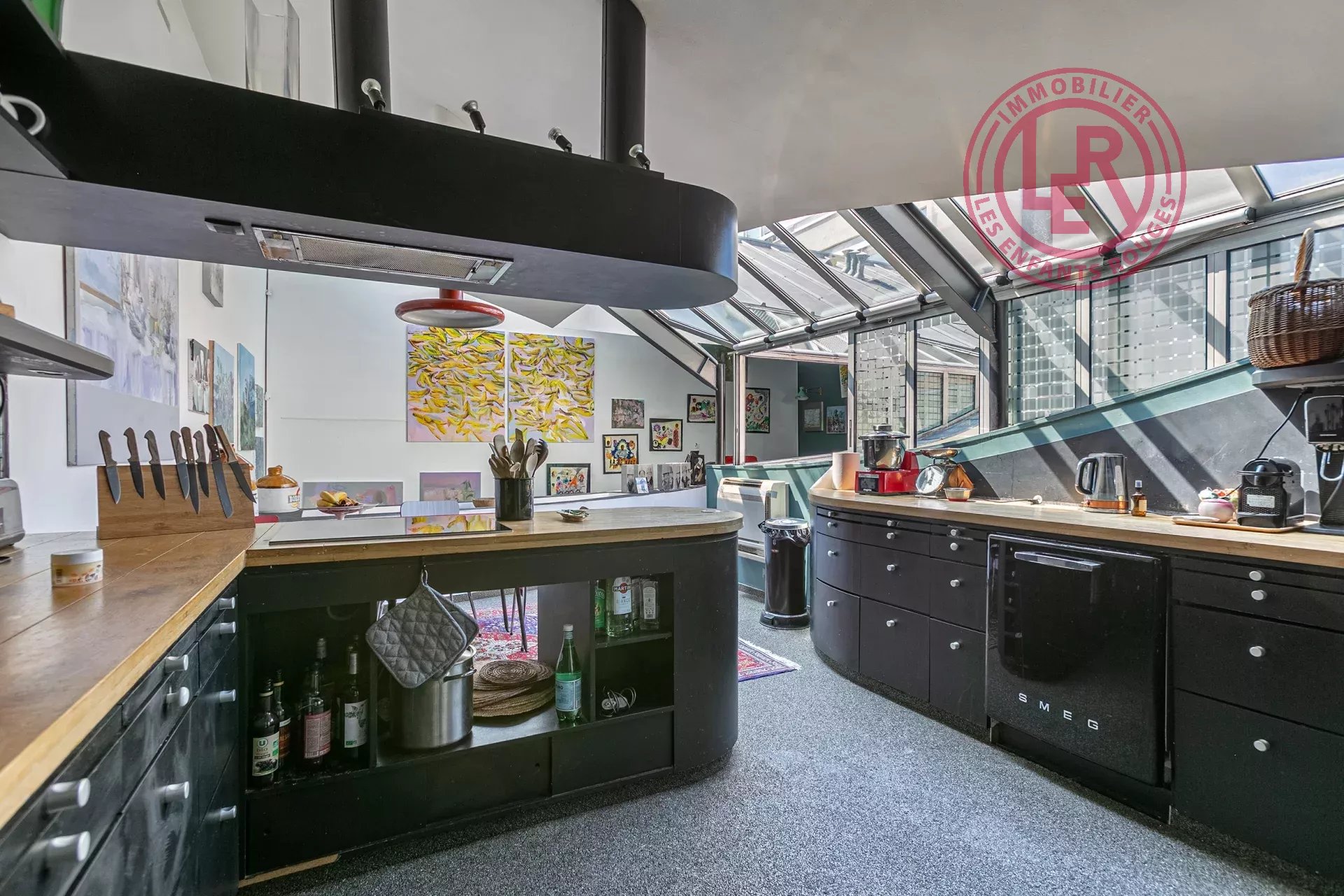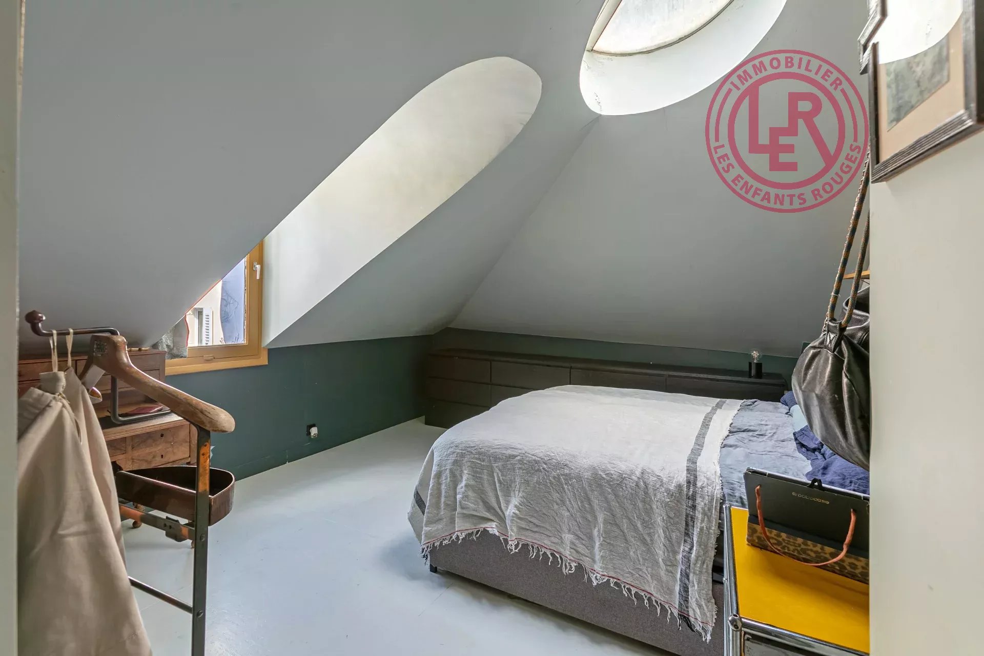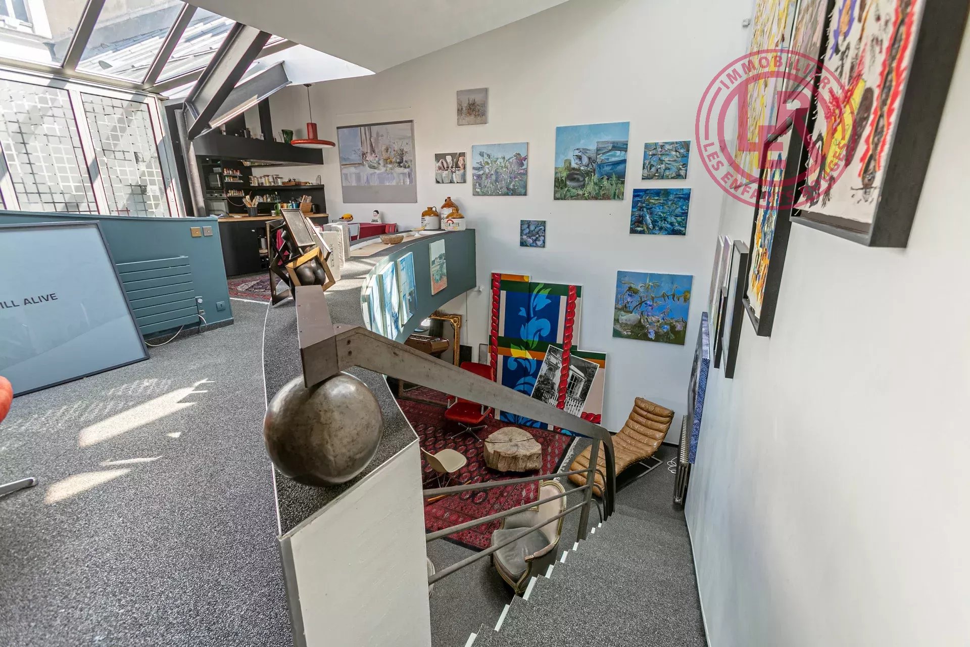 Sur 4 niveaux, elle est intelligemment distribuée avec une aile pour les 4 chambres, avec chacune salle de de bains et toilettes, et une aile pour la partie réception composée d'un double séjour en L menant au 3eme et dernier étage menant à la cuisine dinatoire et à son espace salon, véritable pièces maitresses des lieux, surplombant le séjour. Hauteur sous plafond magistrale allant jusque 6M50 pour la partie séjour et luminosité incroyable.