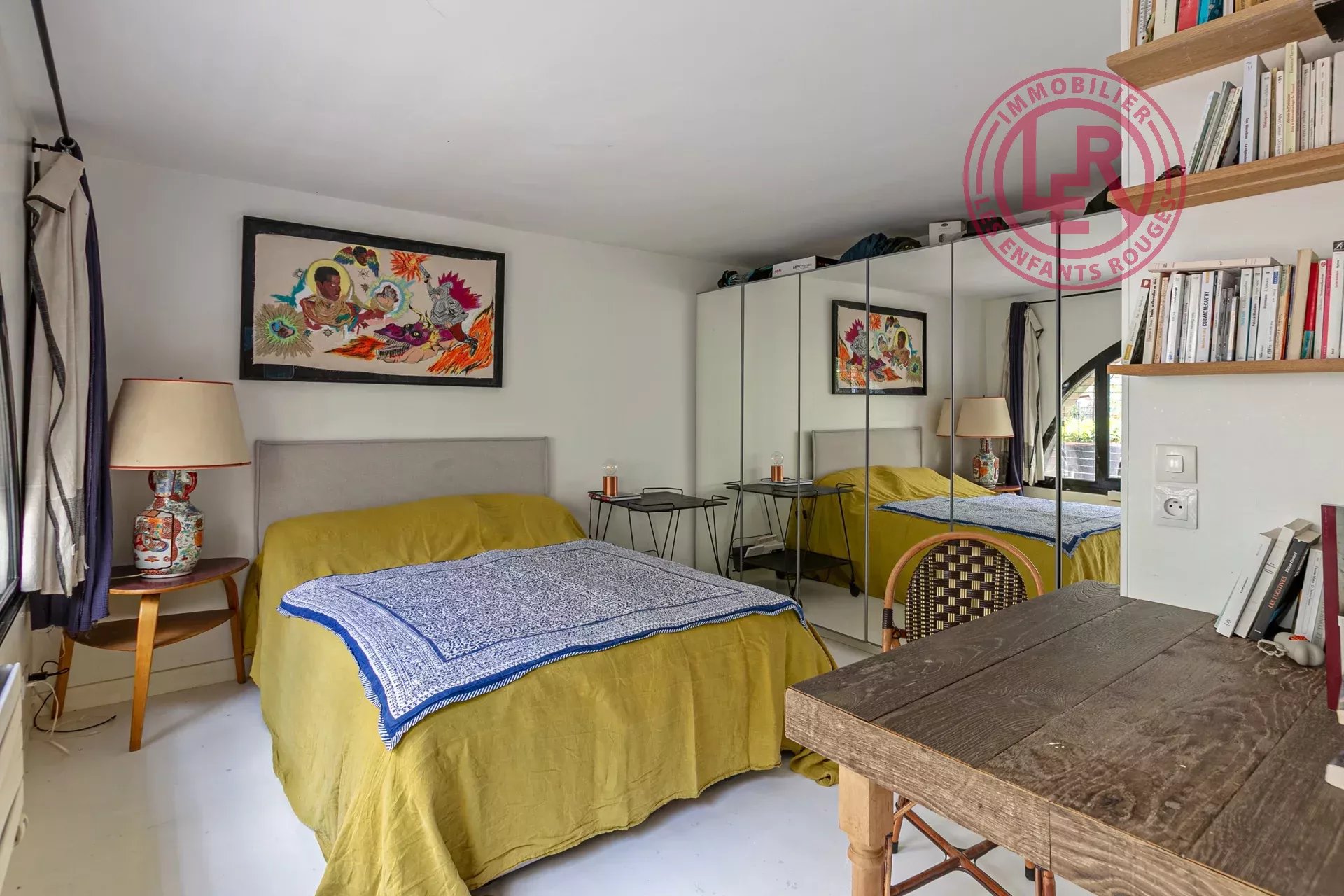 En toute intimité et dissimulée des regards, venez découvrir cette splendide maison d'architecte située dans une cour pavée, au calme absolu dans une impasse située au coeur du secteur Oberkampf.