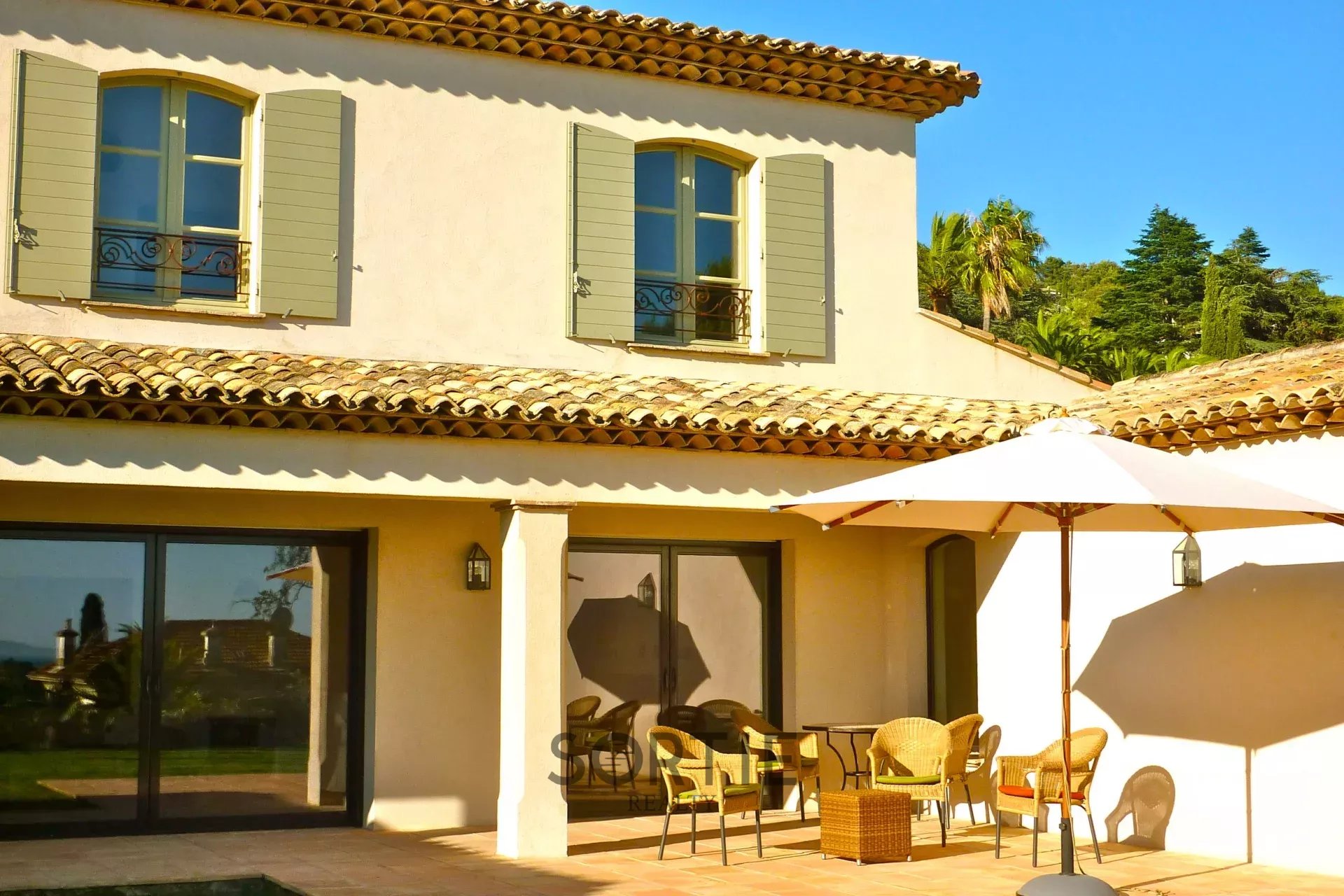 Profitez d’un séjour exceptionnel dans cette magnifique villa située à La Croix-Valmer, idéale pour des vacances en famille ou entre amis. Avec ses sept chambres spacieuses et six salles de bains, elle offre un confort absolu pour accueillir jusqu'à 14 personnes. La villa se trouve à seulement 5 minutes en voiture de la mer et à distance de marche du village pittoresque de La Croix-Valmer, où un marché en plein air se tient chaque dimanche tout au long de l'année. À l’extérieur, vous pourrez profiter d’une grande piscine privée entourée de palmiers, parfaite pour se détendre sous le soleil méditerranéen. La terrasse extérieure est un véritable lieu de vie, idéale pour des repas en plein air. De plus, à quelques pas de la villa, se trouve le Domaine de la Croix, l’un des châteaux viticoles les plus appréciés de la région.