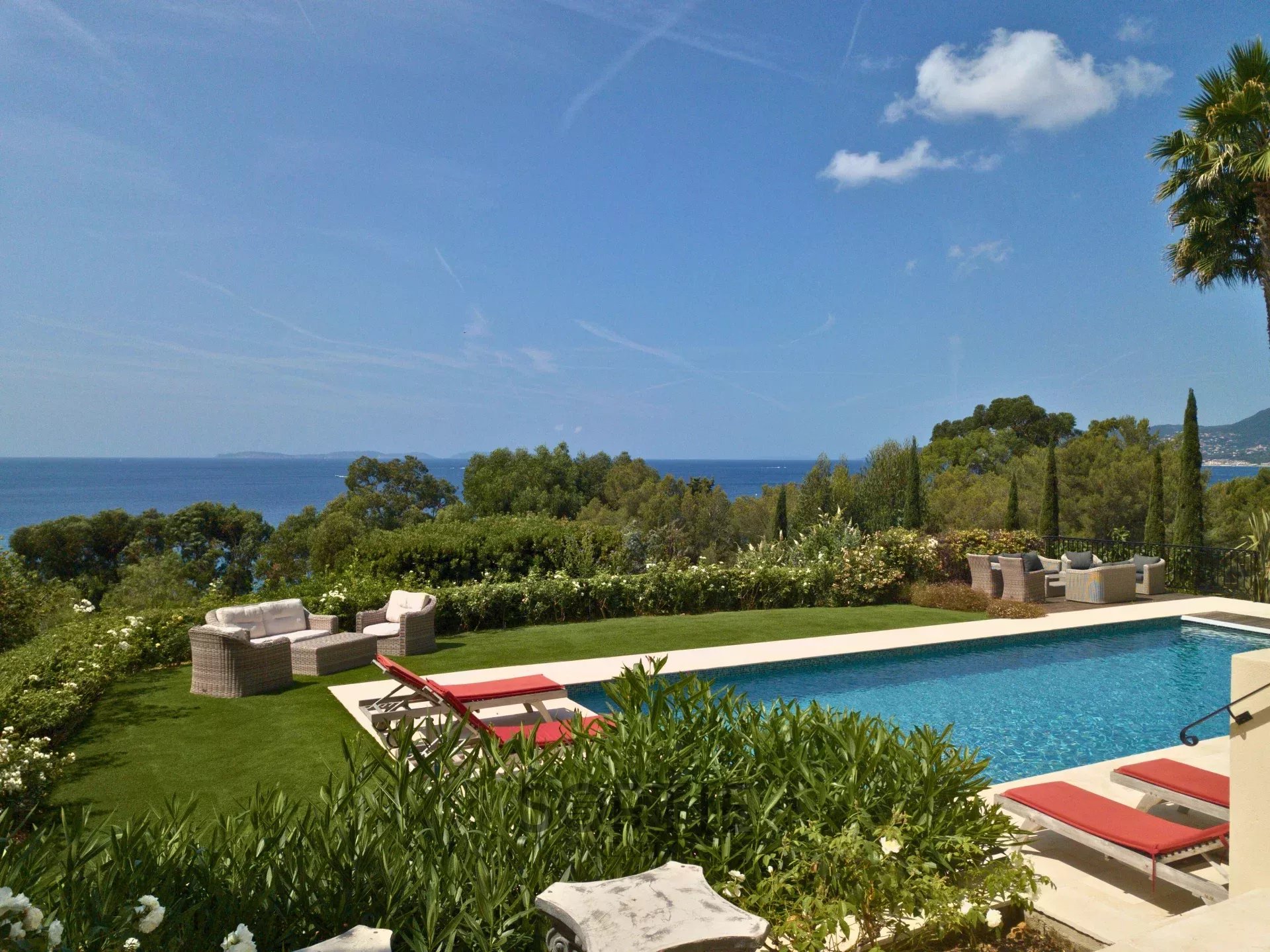 Découvrez cette somptueuse villa idéalement située à deux pas d'une des plus belles plage de La Croix-Valmer. Cette belle propriété offre une vue panoramique imprenable sur la mer et une proximité de la plage, créant ainsi un cadre idyllique pour des vacances inoubliables. Avec ses cinq chambres cette propriété peut accueillir un nombre important d’invités. Les espaces de vie spacieux et lumineux comprennent une salle à manger, une cuisine moderne entièrement équipée et un vaste salon. La Villa est entièrement climatisée et dispose d'une grande piscine. Avec ses équipements haut de gamme et son emplacement idyllique, cette propriété à deux pas de plage promet une expérience de vacances exceptionnelle sur la Côte d'Azur.