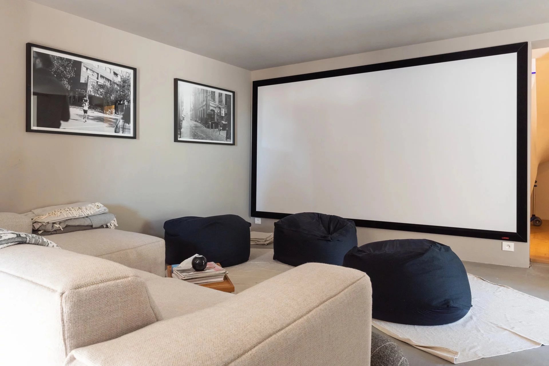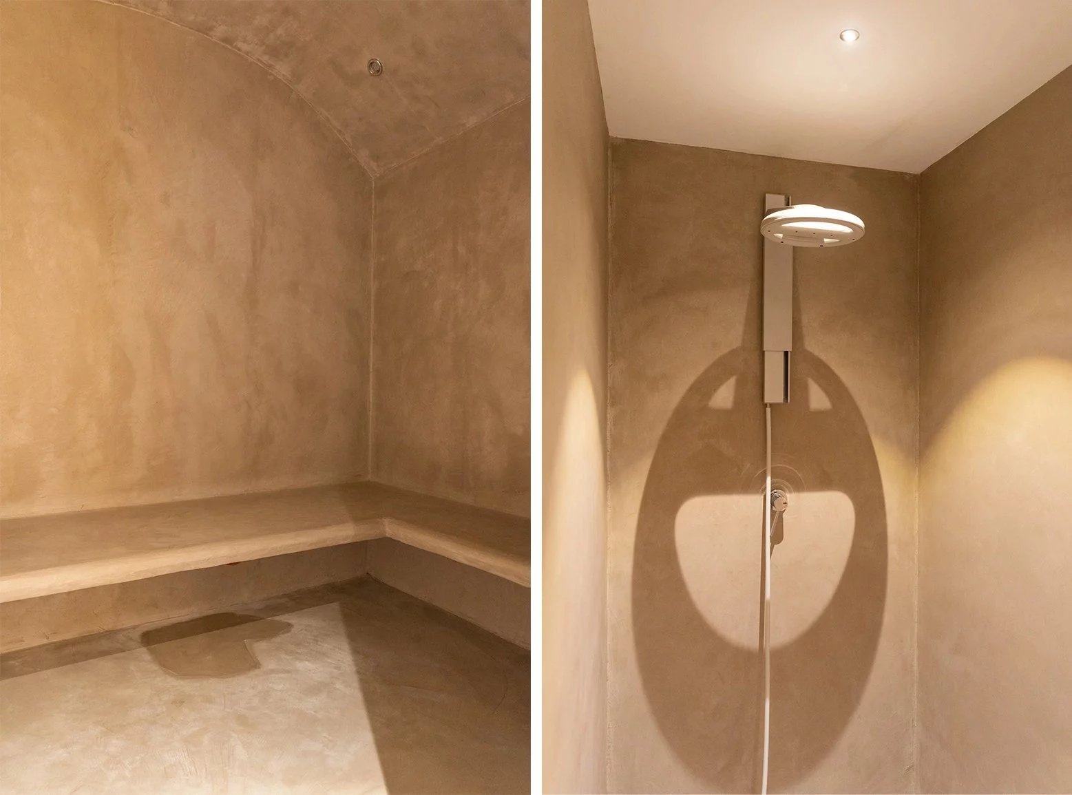 Le rez-de-jardin, quant à lui, se compose d’une salle de cinema, d’un hammam, d’une piscine intérieure chauffée au sel et d’un jacuzzi s'ouvrant vers le village par de large baie à galandage.