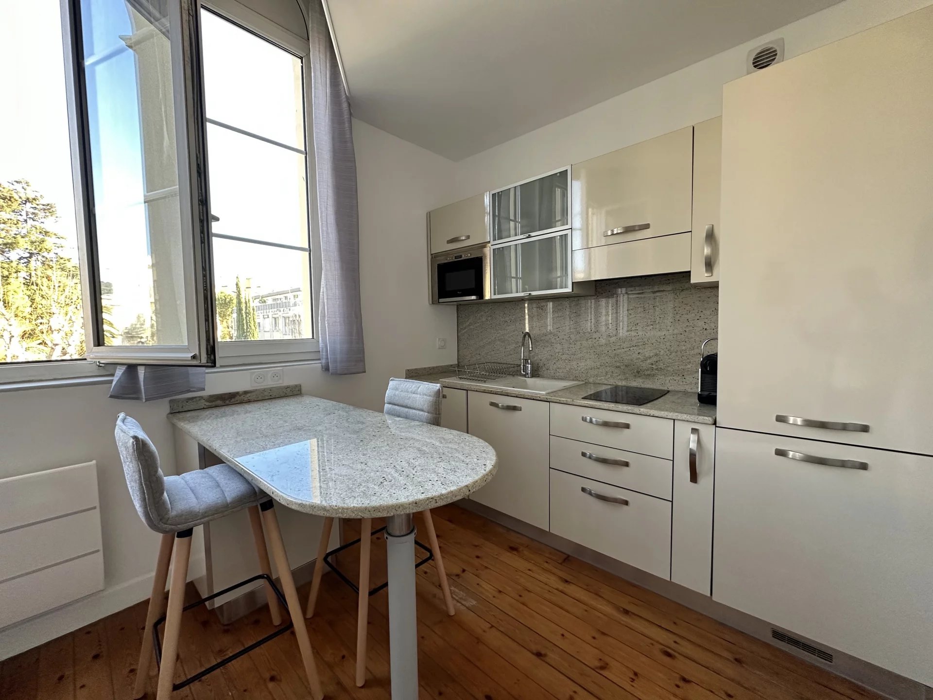 Les agences CIMIEZ RESIDENCES vous proposent la location d'un deux pièces refait à neuf, situé dans un immeuble bourgeois, sécurisé, en plein cœur de Cimiez. Ce deux pièces refait à neuf, comprend une pièce à vivre avec cuisine américaine, une grande salle de douche avec wc, et une mezzanine offrant l'espace nuit. Les plus de cet appartement : une très belle vue exposée Est sur les espaces verts et la célèbre résidence l'Alhambra, prestations haut de gamme. Coup de cœur de l'agence !