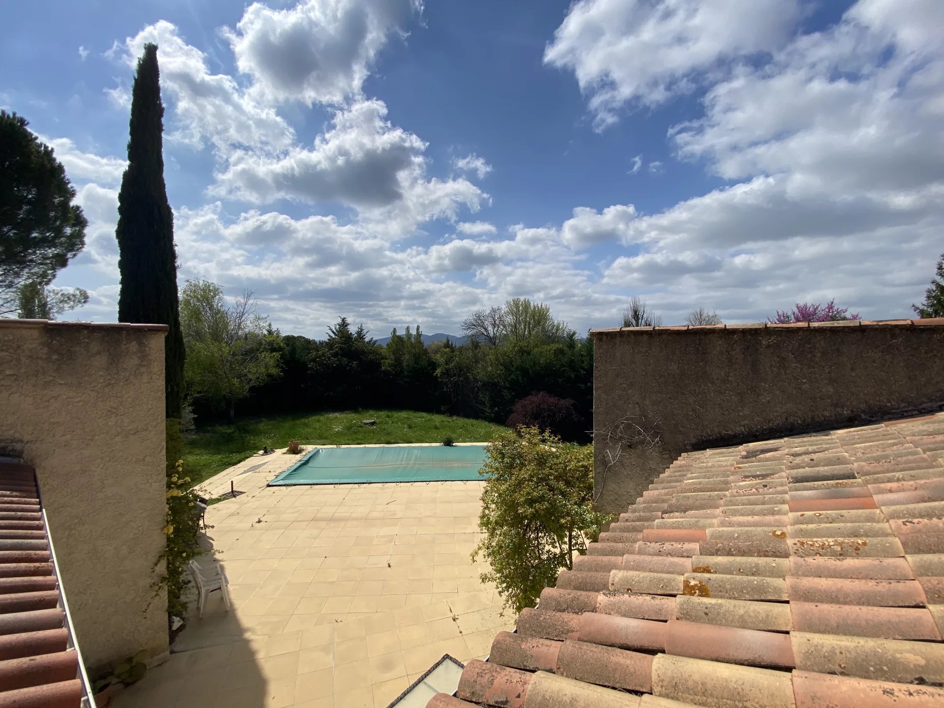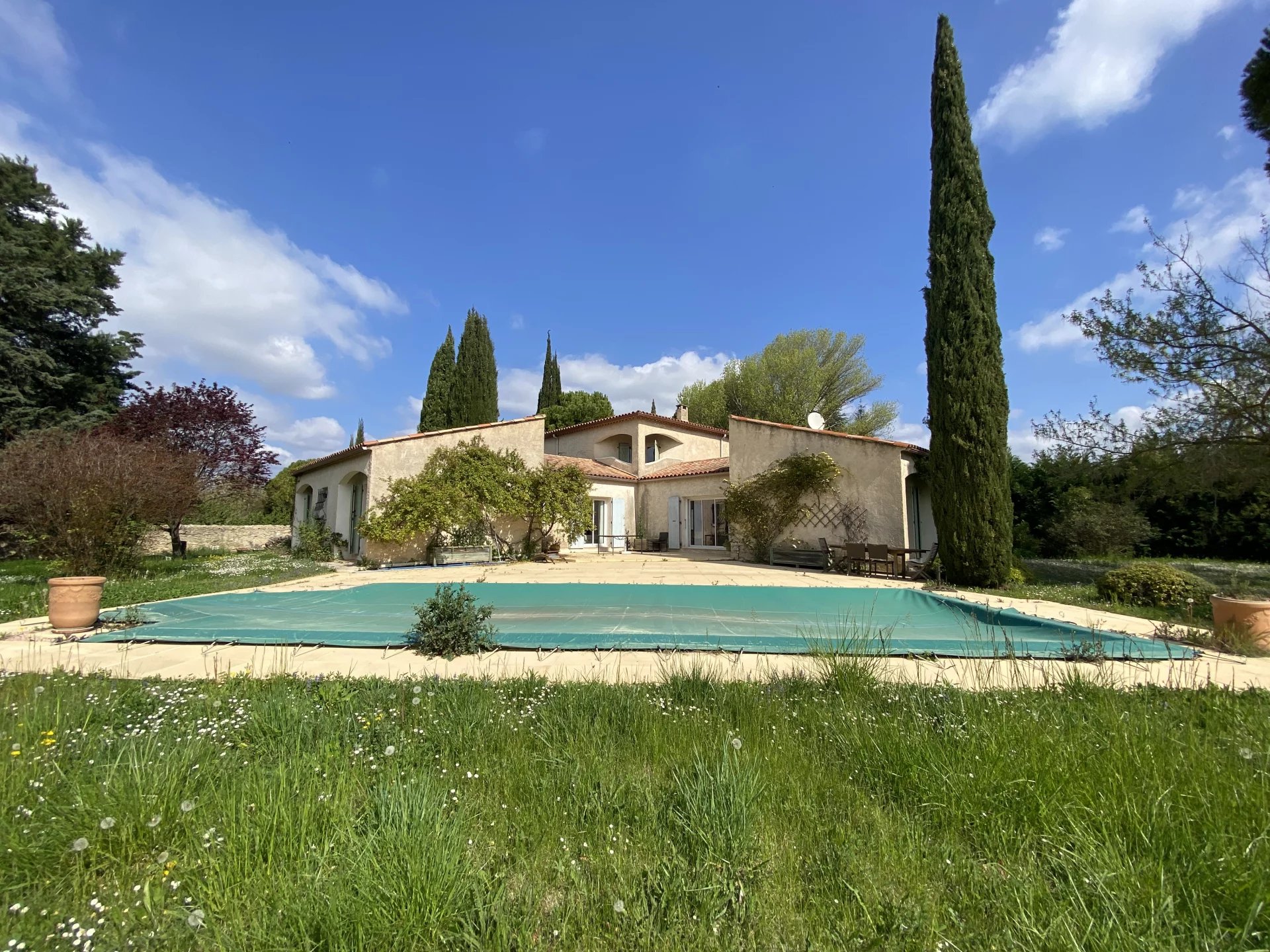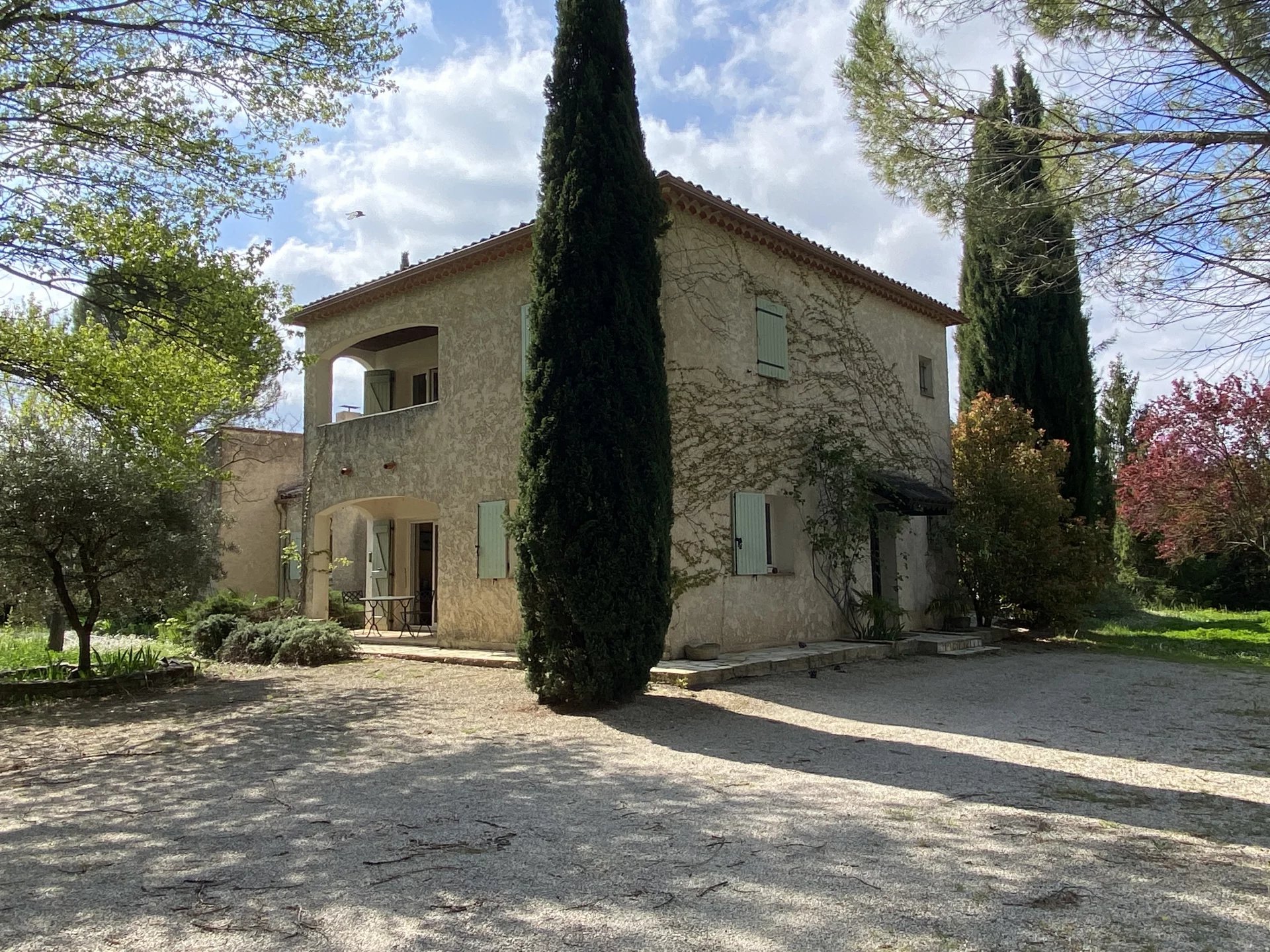 SOUS PROMESSE. Dans une commune disposant de toutes les commodités, à seulement 4 kilomètres de Lourmarin et 40 minutes en voiture de la gare TGV d'Aix-en-Provence, charmante maison construite en 1990 offrant sur 253 m² et deux niveaux: au rez-de-chaussée, une belle entrée avec un wc, un vaste séjour (salon-salle à manger) avec cheminée et accès à deux terrasses, deux chambres avec une salle d'eau commune et accès au jardin, un wc; une cuisine indépendante et équipée avec accès au sous-sol, un couloir desservant une chambre avec salle de bains et accès à la terrasse, deux chambres avec une salle d'eau commune et accès au jardin, un wc; à l'étage, un vaste palier desservant un grand bureau avec deux terrasses, un second bureau ou chambre. Parc arboré et clos de 4400 m² avec une piscine et un garage. Maison avec forage et arrosage automatique. Proche de tous les commerces, environnement calme et agréable.