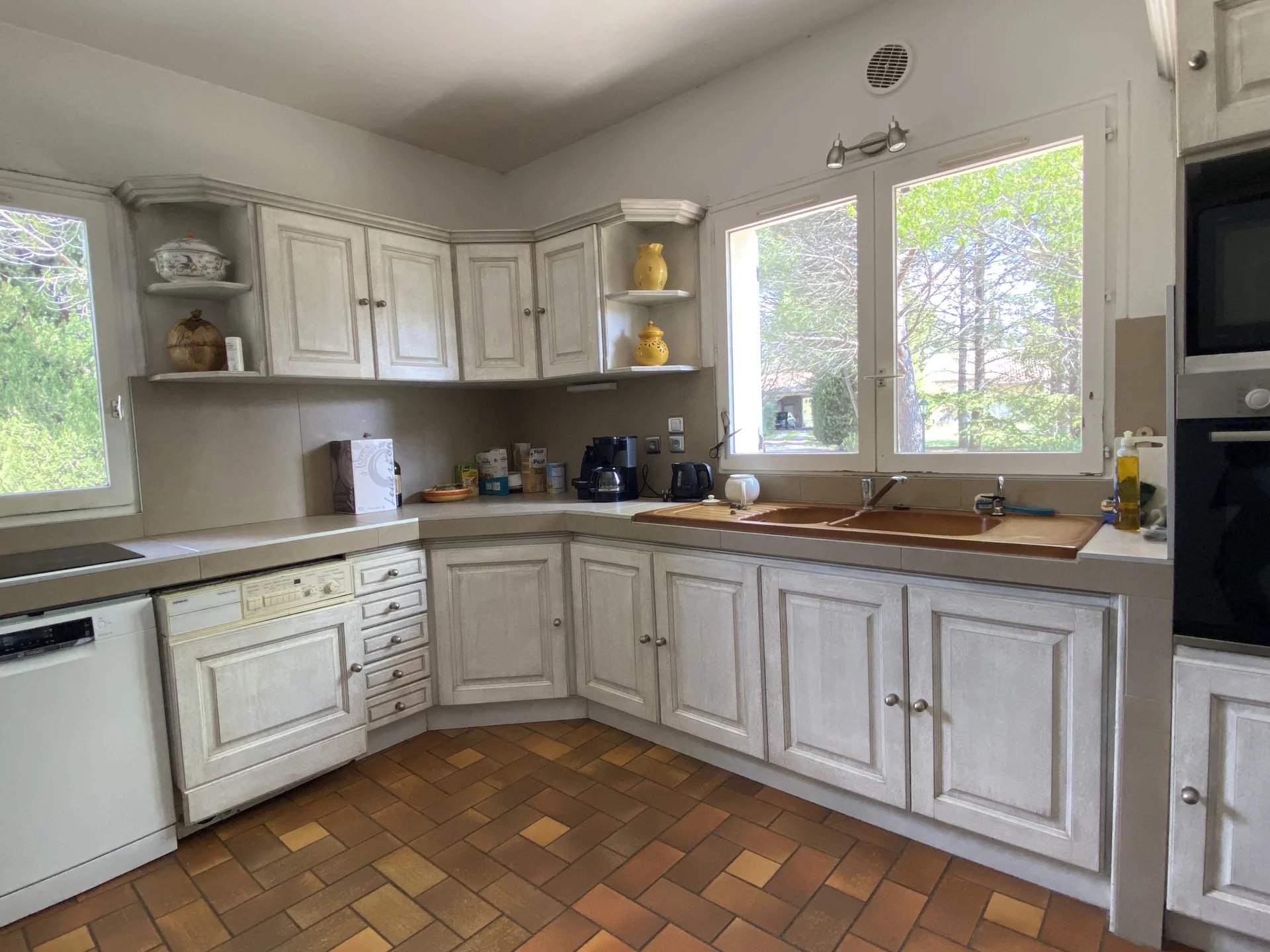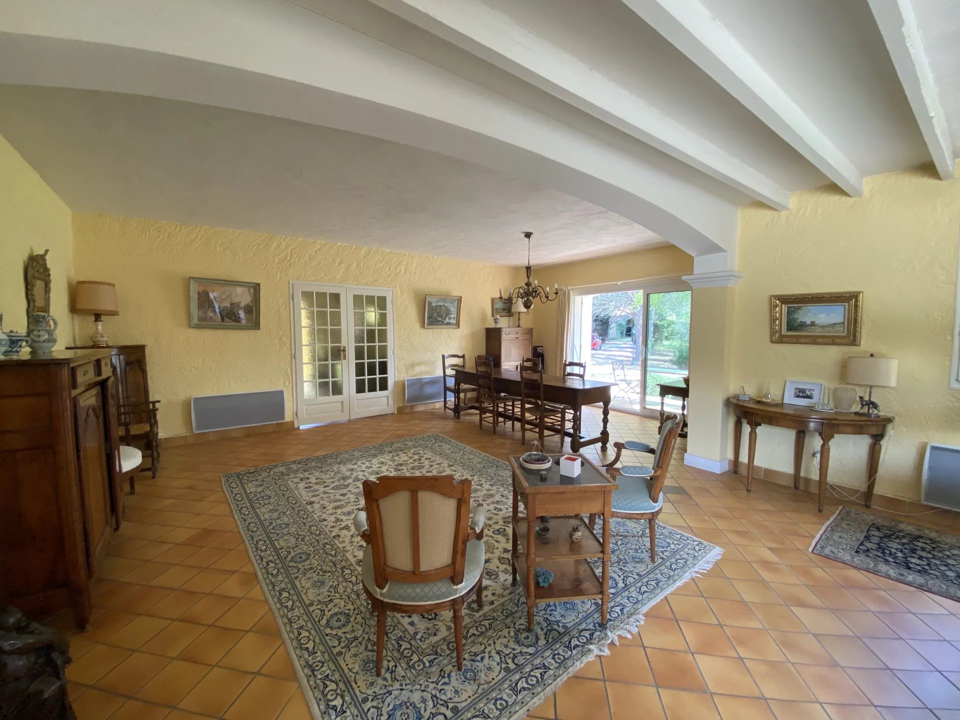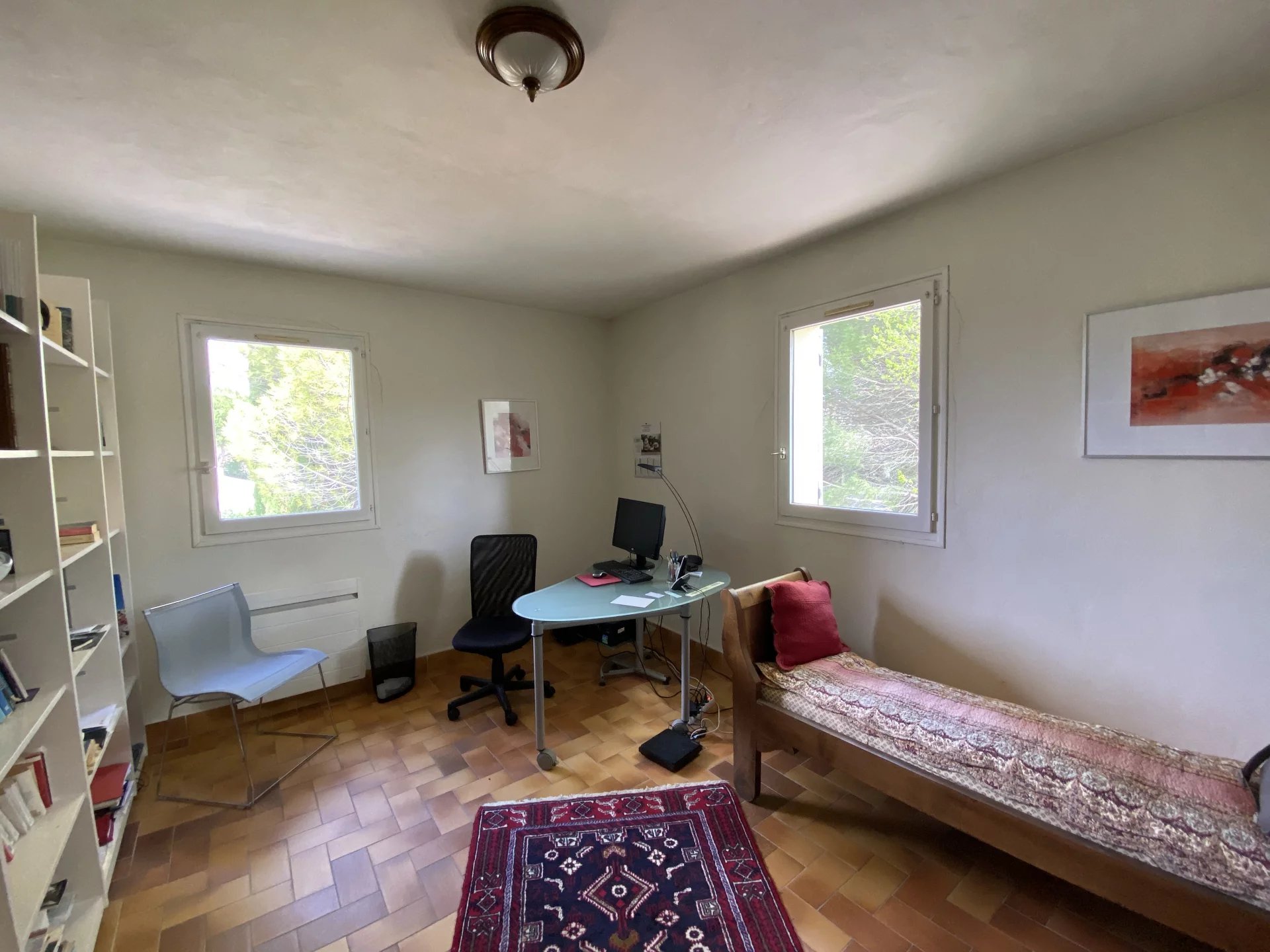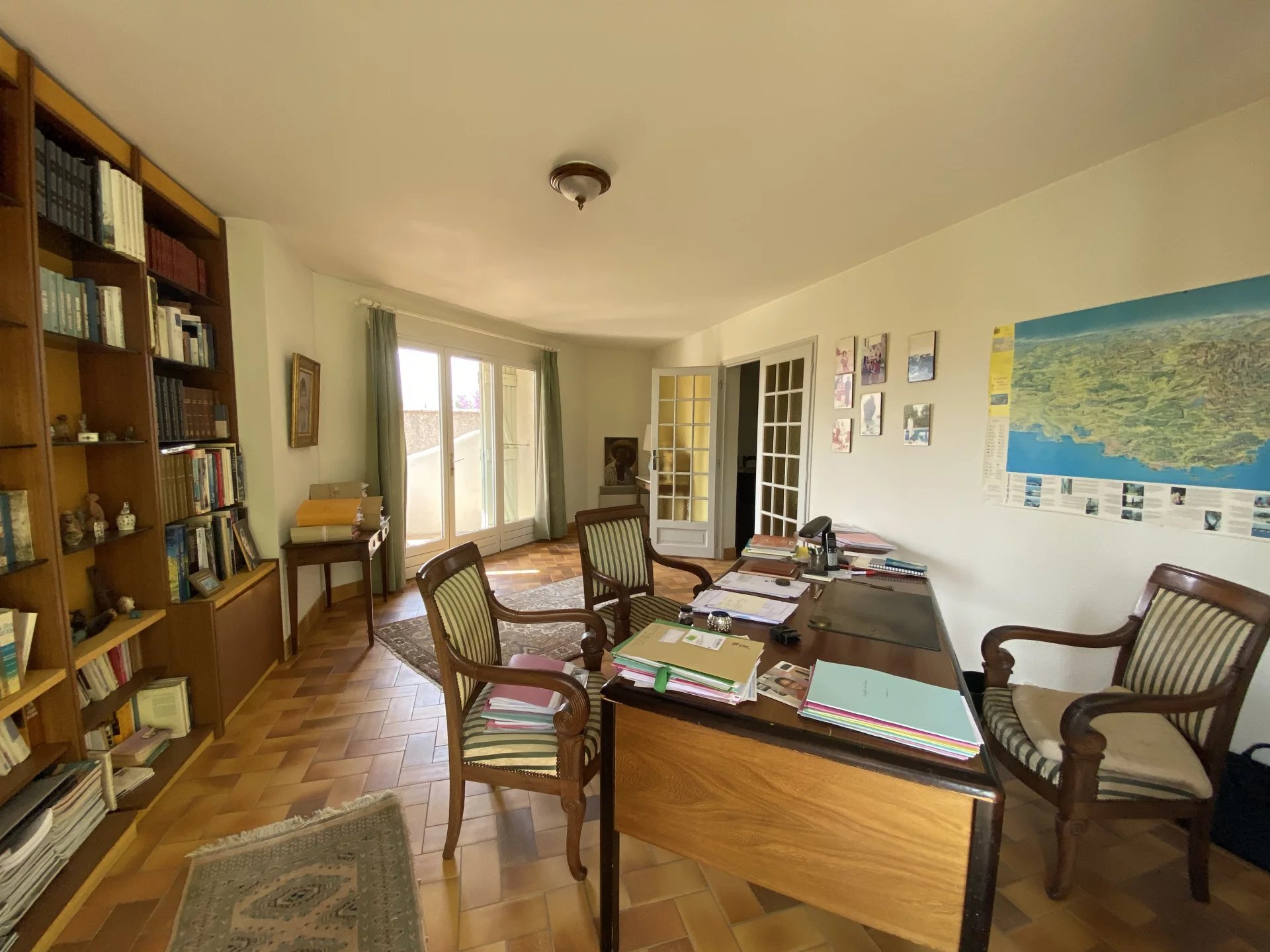 SOUS PROMESSE. Dans une commune disposant de toutes les commodités, à seulement 4 kilomètres de Lourmarin et 40 minutes en voiture de la gare TGV d'Aix-en-Provence, charmante maison construite en 1990 offrant sur 253 m² et deux niveaux: au rez-de-chaussée, une belle entrée avec un wc, un vaste séjour (salon-salle à manger) avec cheminée et accès à deux terrasses, deux chambres avec une salle d'eau commune et accès au jardin, un wc; une cuisine indépendante et équipée avec accès au sous-sol, un couloir desservant une chambre avec salle de bains et accès à la terrasse, deux chambres avec une salle d'eau commune et accès au jardin, un wc; à l'étage, un vaste palier desservant un grand bureau avec deux terrasses, un second bureau ou chambre. Parc arboré et clos de 4400 m² avec une piscine et un garage. Maison avec forage et arrosage automatique. Proche de tous les commerces, environnement calme et agréable.