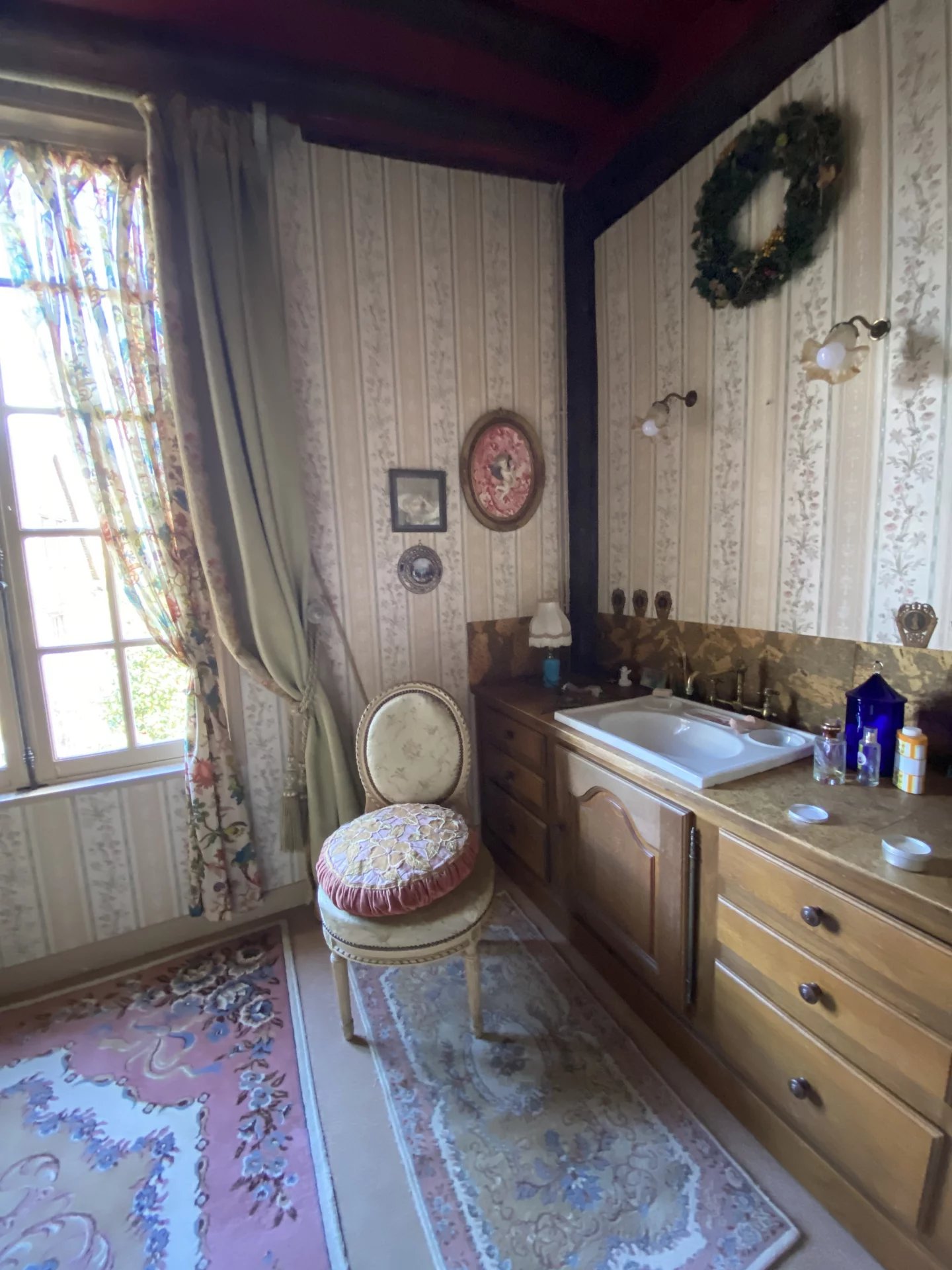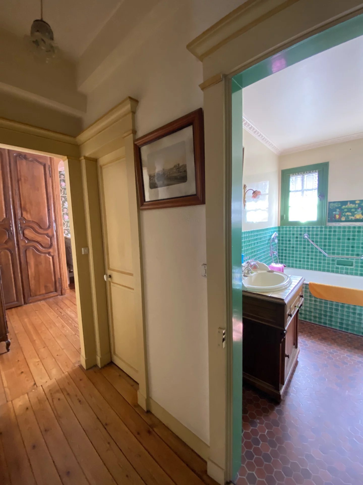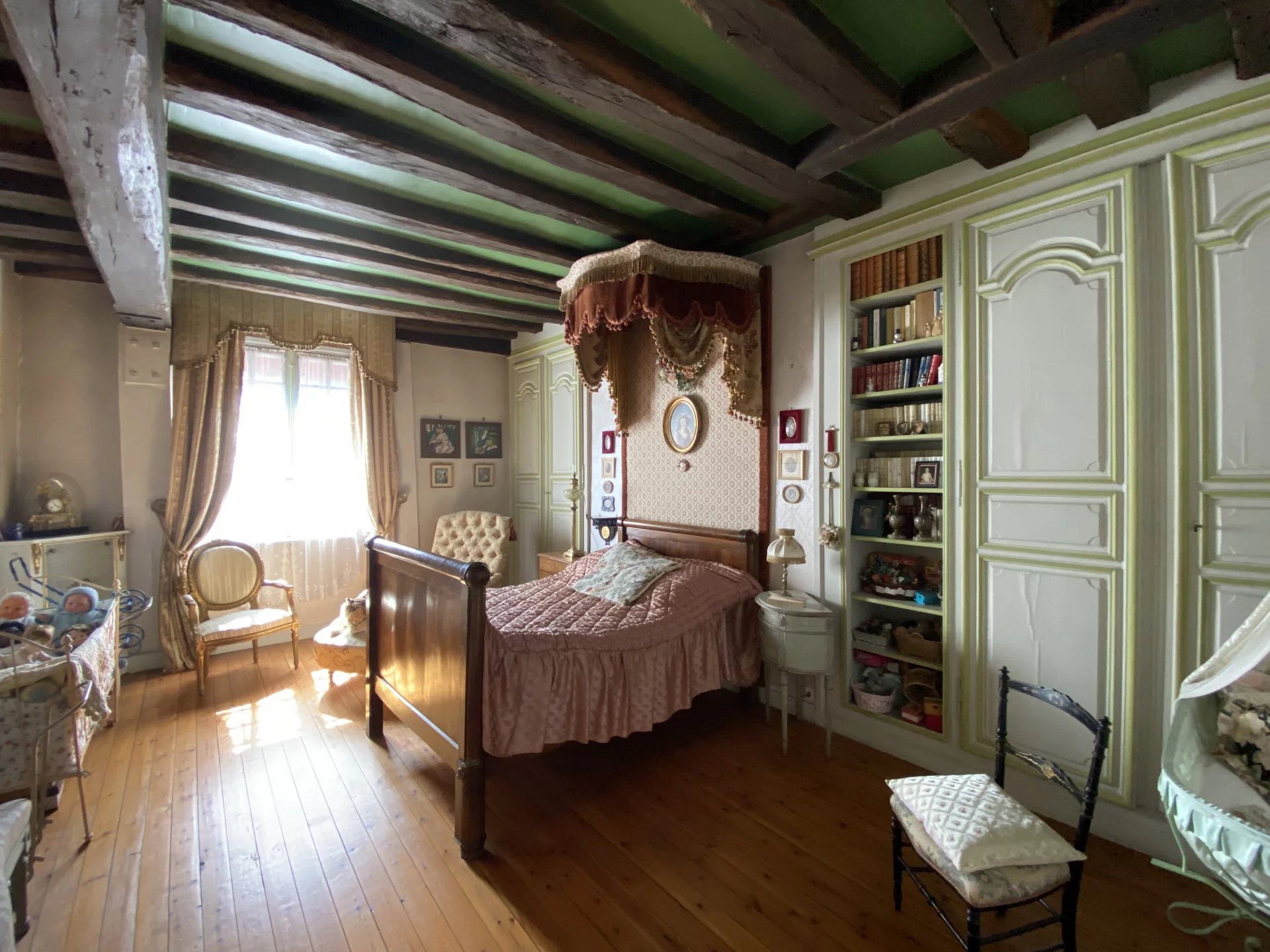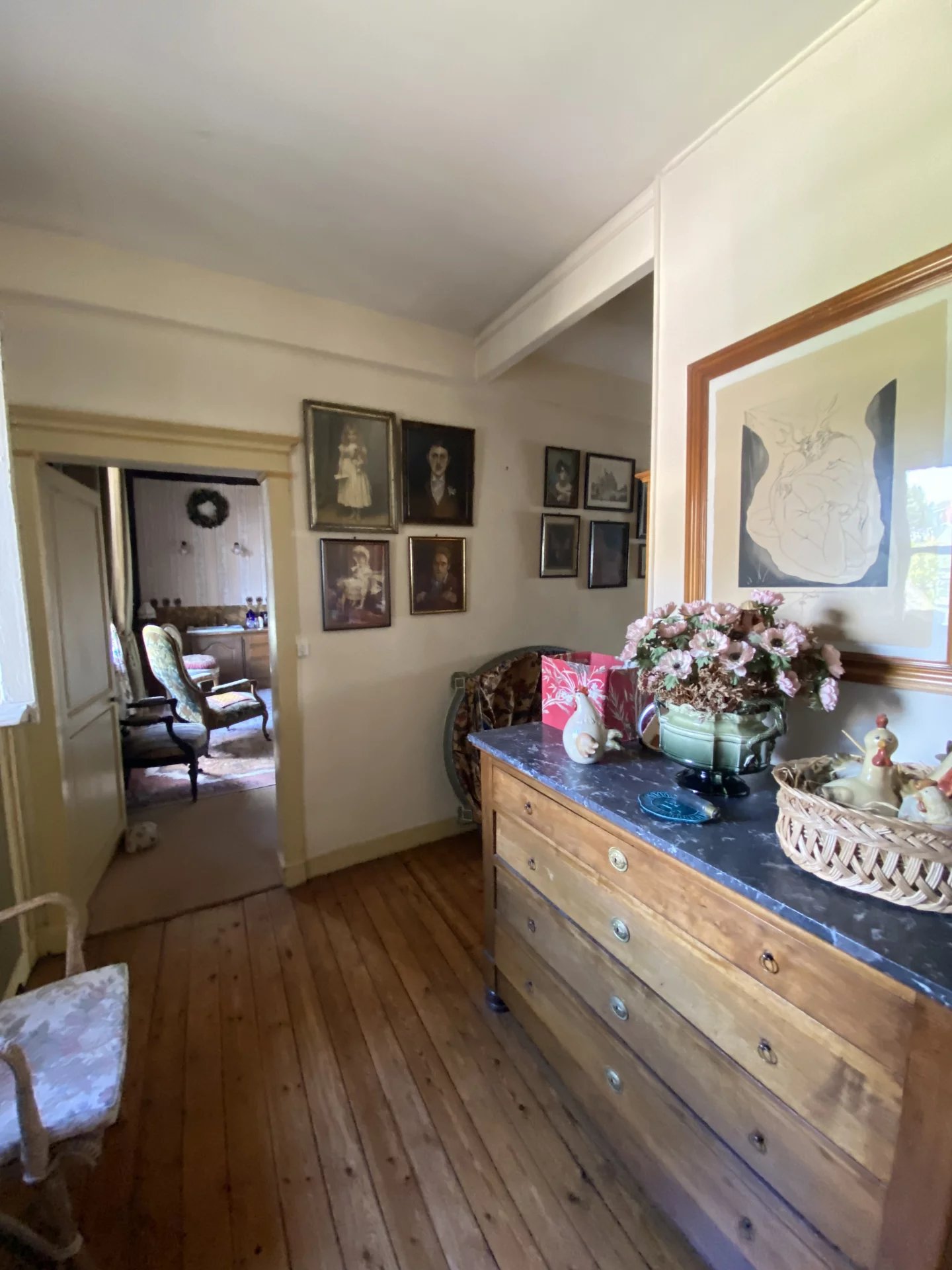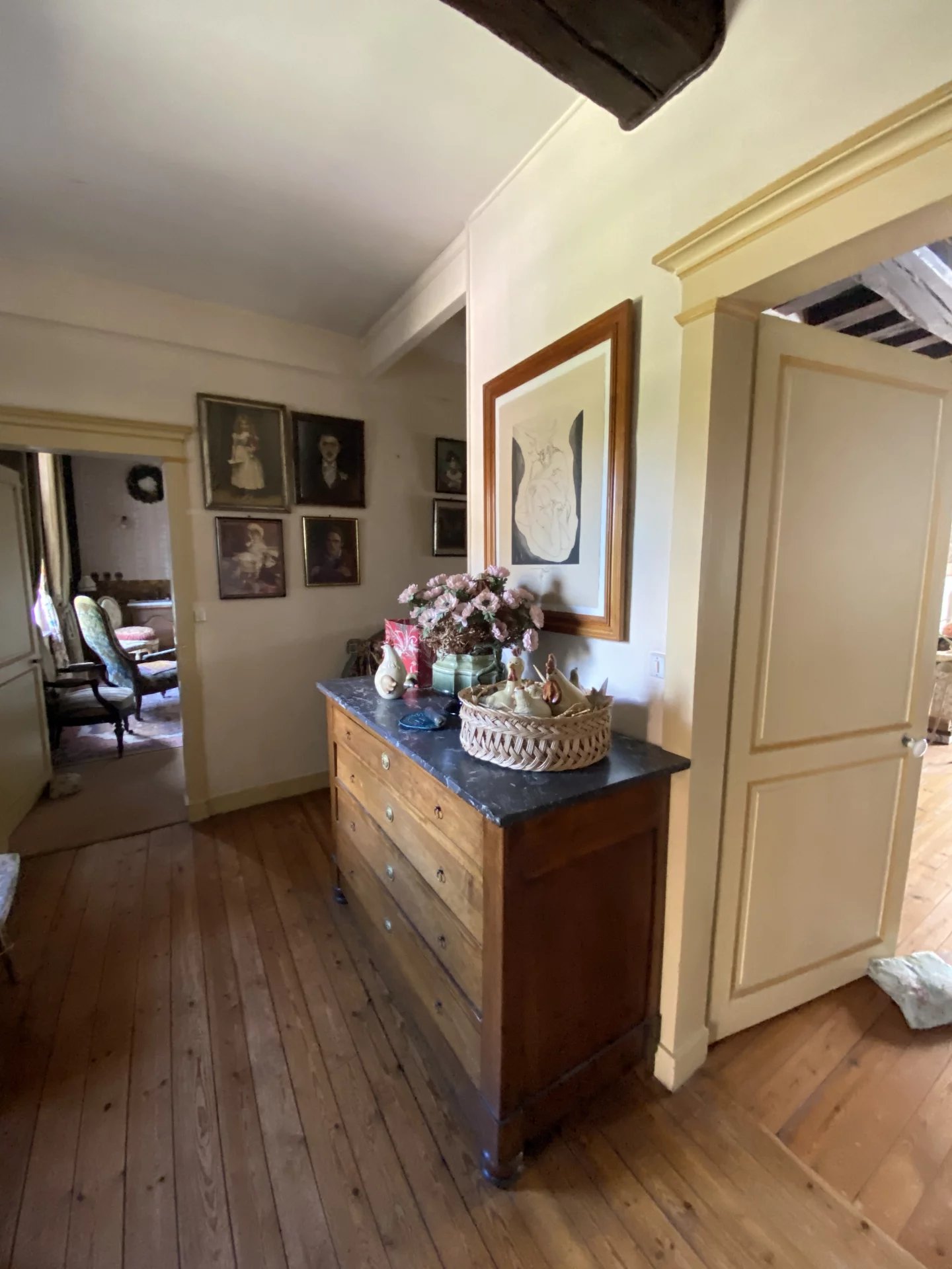 Eure. Maison de ville construite deuxième moitié du XVIII ème pour un bâtiment et première moitié du XIX ème pour une seconde partie offrant sur 264.80 m² et trois niveaux : au rez-de-chaussée, une entrée, un grand salon avec une cheminée, un couloir, un bureau bibliothèque avec cheminée, la tourelle menant à la salle à manger, la cuisine avec arrière-cuisine, chaufferie, wc, lingerie et accès au jardin ; à l'étage, une pièce (chambre-bureau) et un grenier ; au premier étage depuis la tourelle (de 1973), un couloir desservant trois chambres dont une avec point d'eau, une salle de bains, un wc; au deuxième étage, un couloir desservant une salle de bains et trois chambres; un grenier; une cave.
