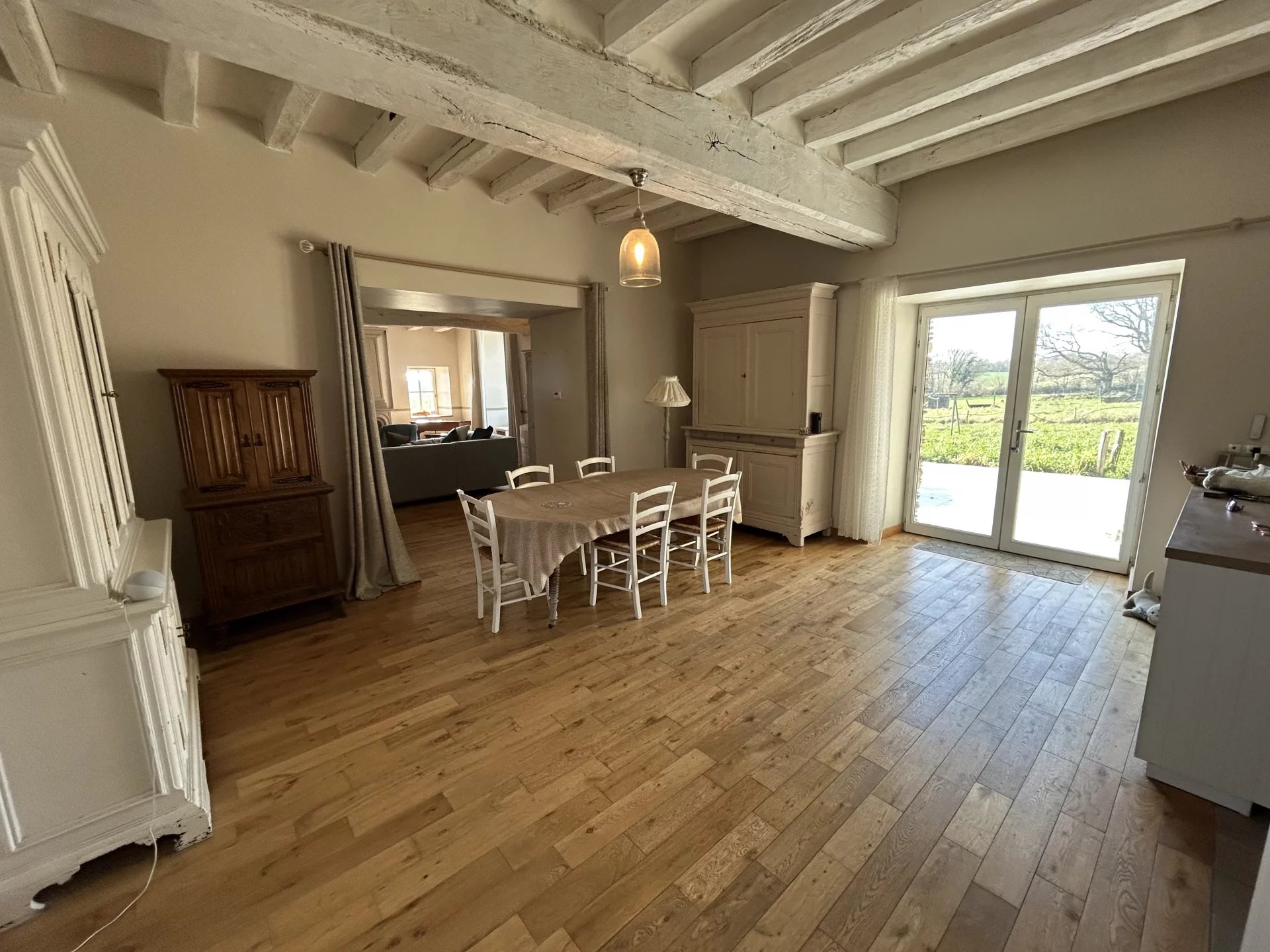 Dans une commune disposant de toutes les commodités, à seulement 20 minutes en voiture du centre d'Angers, ancien logis datant du XV ème récemment et totalement restauré avec goût et matériaux de qualité offrant sur 260 m² et deux niveaux: au rez-de-chaussée, une grande entrée, une salle à manger avec accès à une terrasse, un salon avec cheminée, une cuisine équipée ouverte sur le séjour, une lingerie arrière-cuisine, un bureau, un wc, une suite parentale avec dressing et salle de bains wc; à l'étage, un couloir desservant trois chambres, une salle d'eau avec wc, une grande salle de jeux (40 m²). Cette demeure de caractère dispose de dépendances et garage avec un jardin de 6500 m². Vue panoramique sur la campagne. Environnement calme et agréable.
