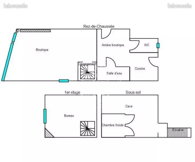- surface totale 57 m² dont un bureau à l'étage de 11 m² , wc et cuisine,