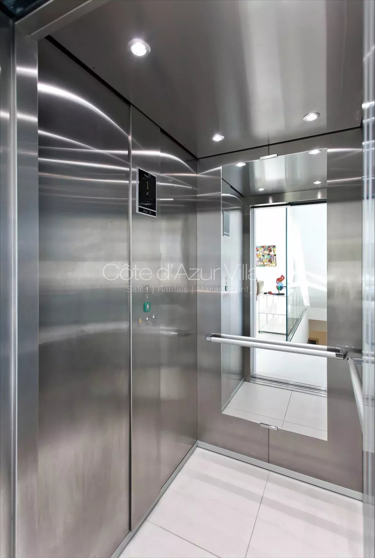 Ascenseur et escaliers menant à l’étage :
