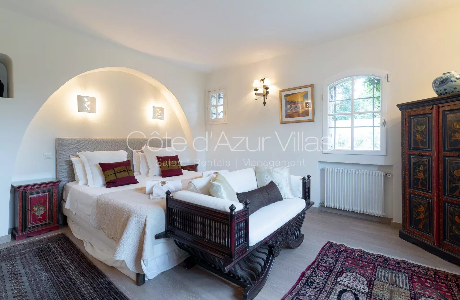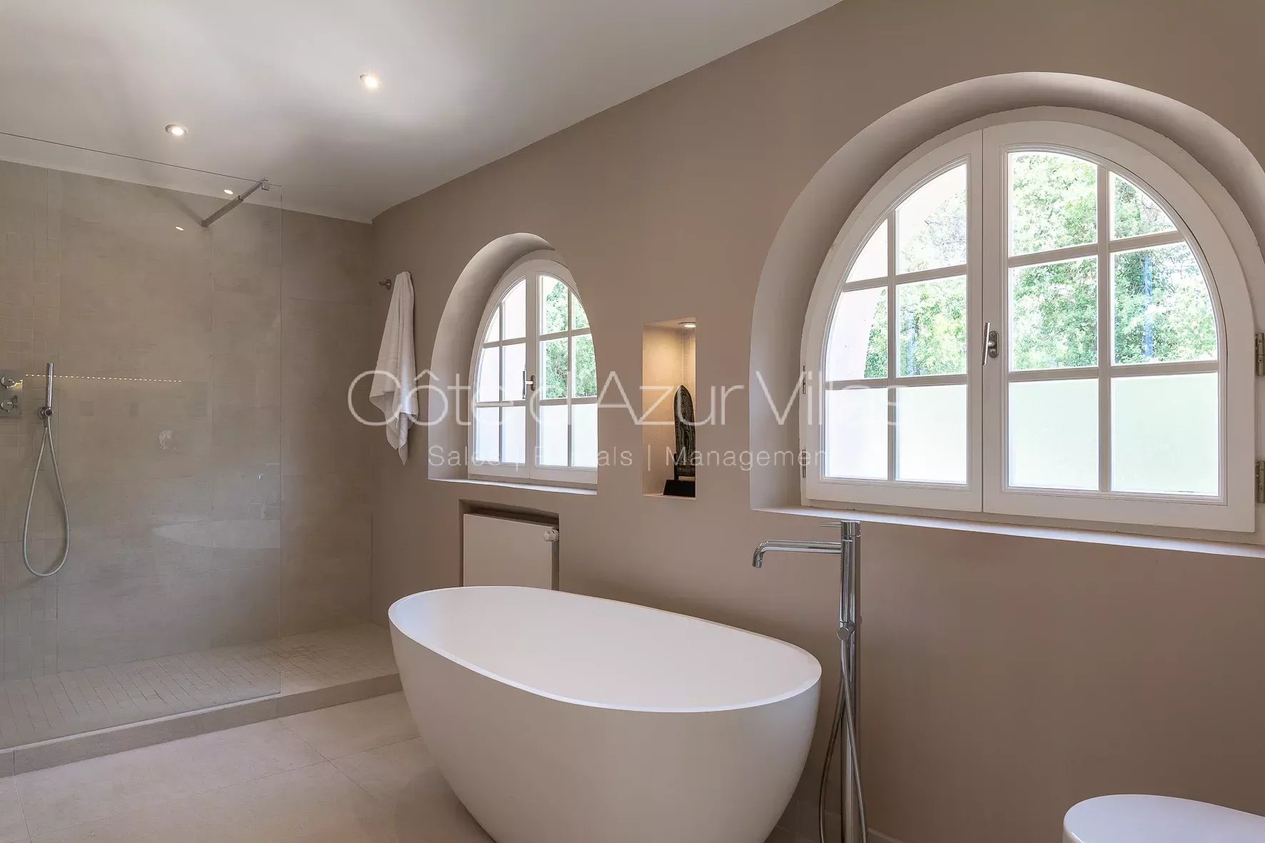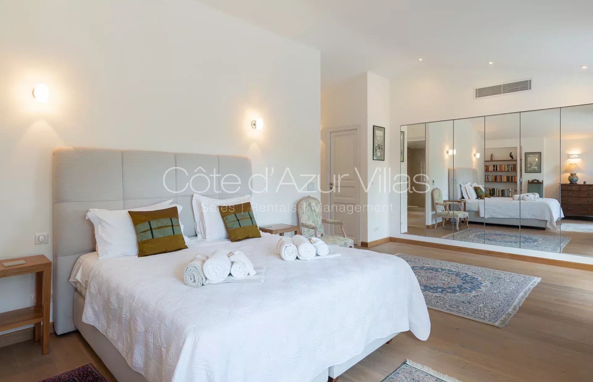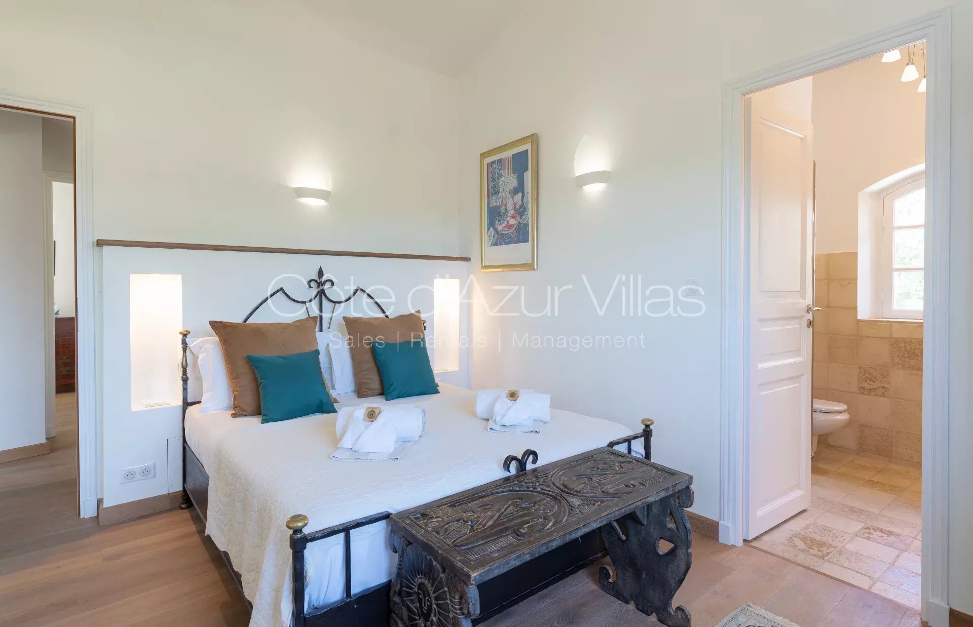 Au premier étage, la chambre de maître avec salle de bain attenante et dressing, deux chambres à coucher et deux salles de douche.