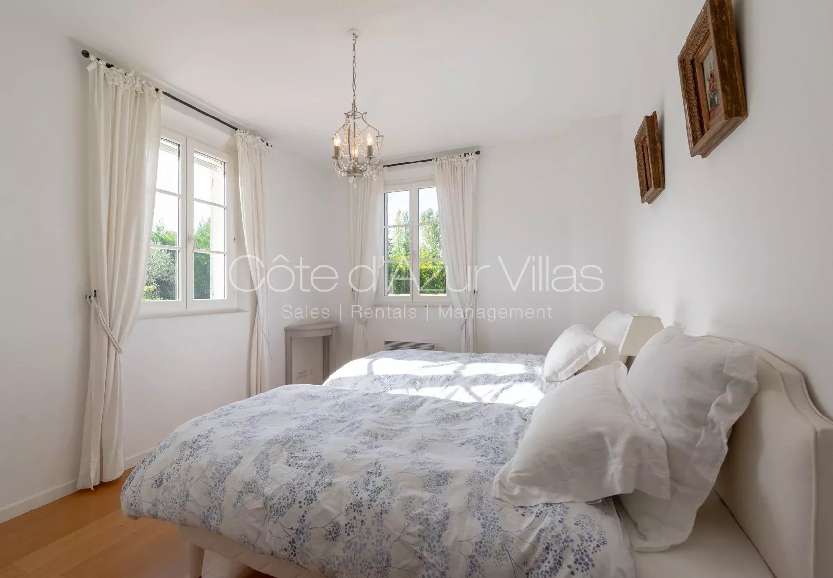 Un salon avec une belle cheminée en pierre, un vaste séjour ouvrant sur le jardin, une cuisine entièrement équipée, une salle à manger ainsi qu'une grande arrière-cuisine et une buanderie. Une grande chambre de maître avec salle de bains en suite, dressing et terrasse privée.