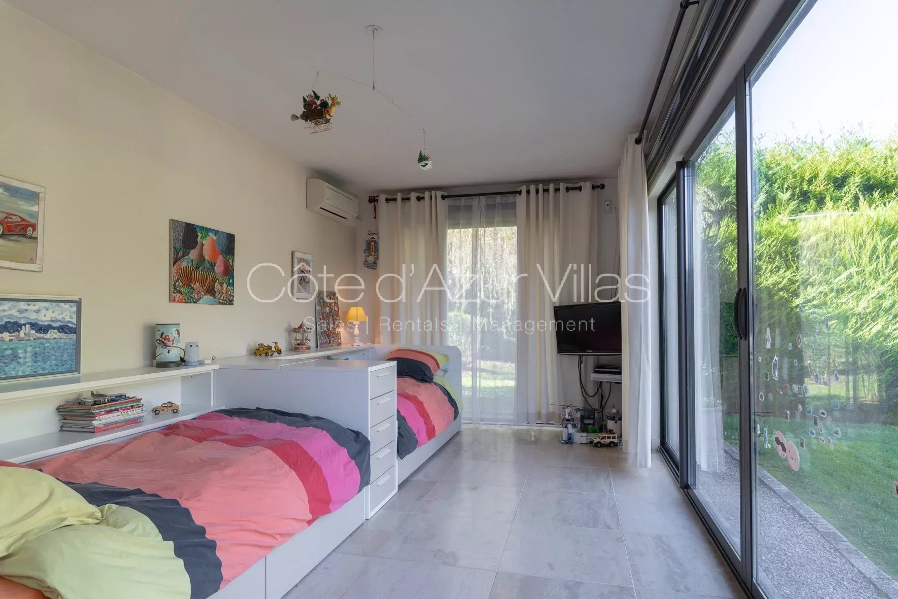 Une deuxième chambre, avec accès sur un jardin plat, pouvant faire office de bureau ou salle de jeux/de gym.