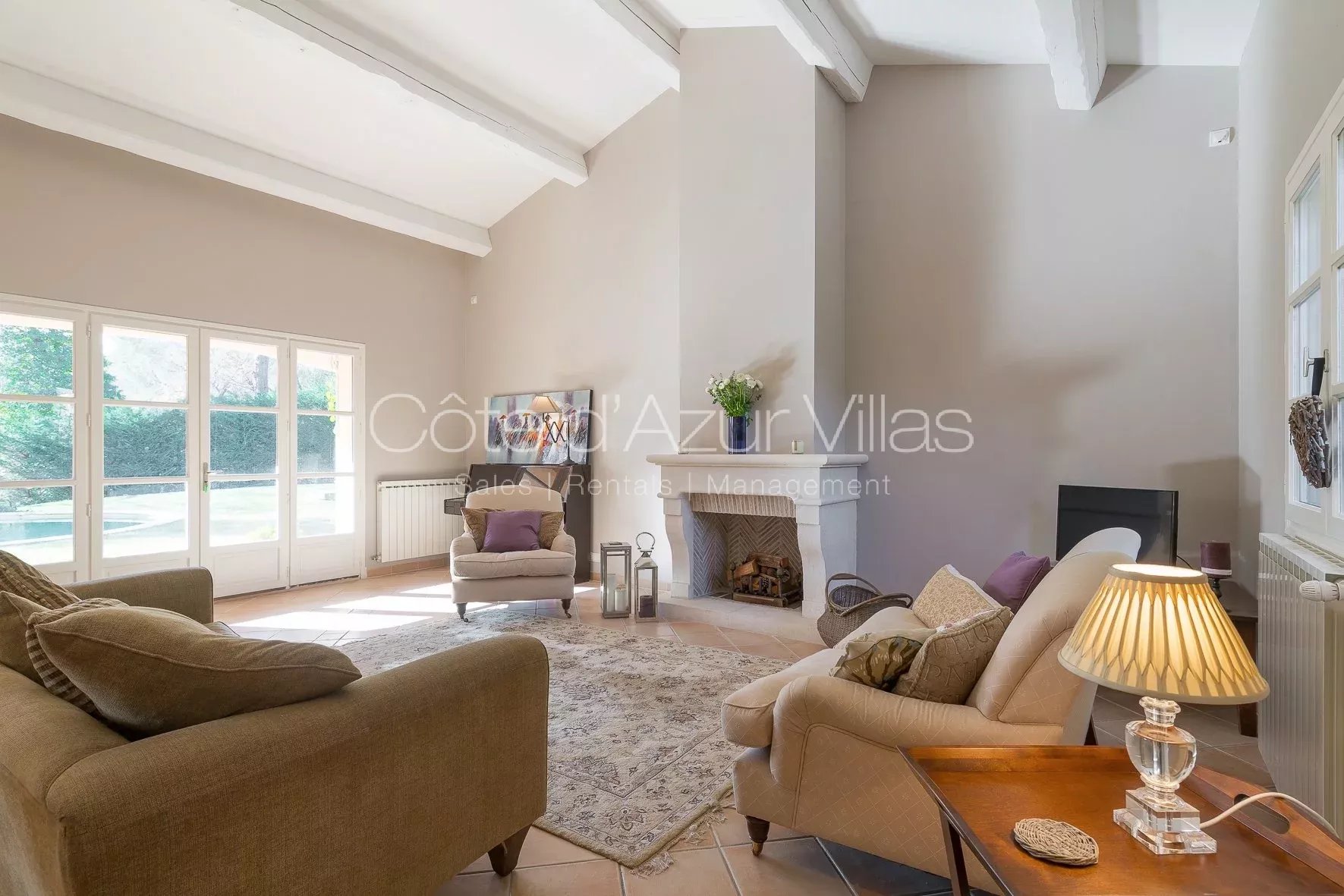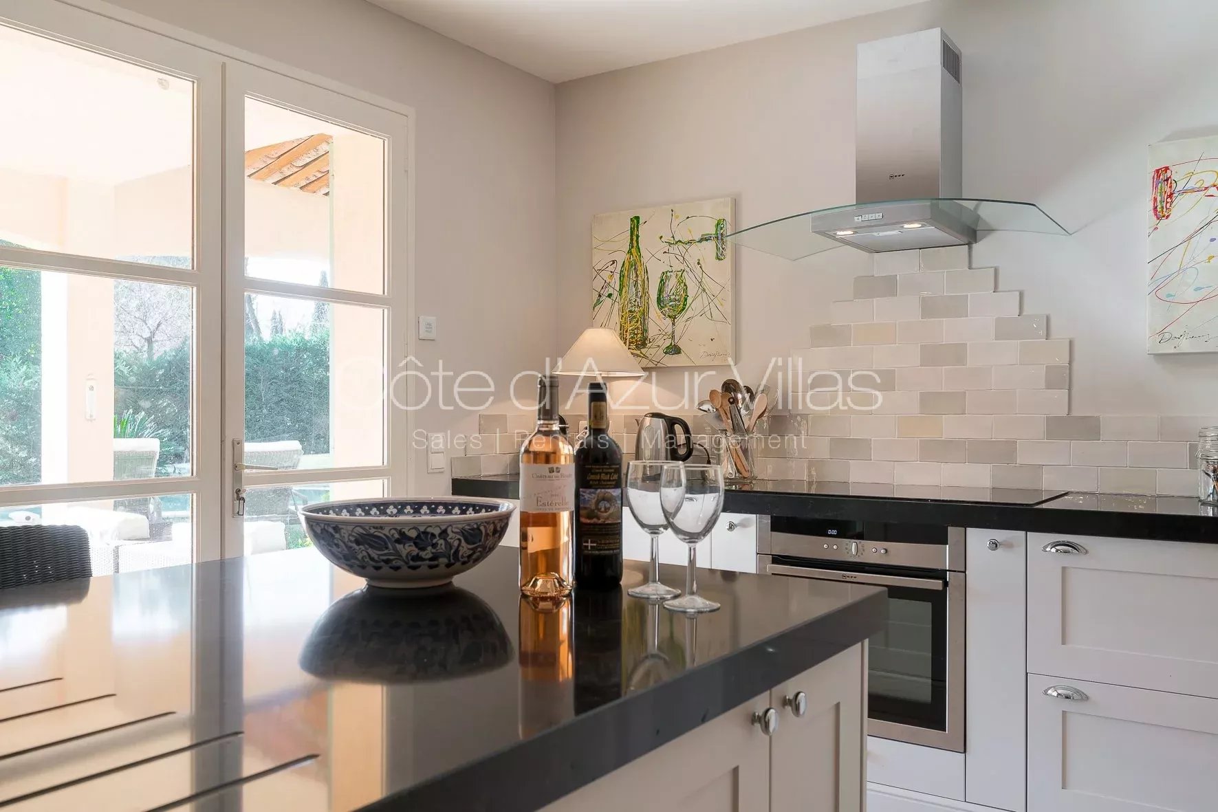 Charmante villa, joliment décorée et meublée avec style, offrant 4 chambres, située à pied de Valbonne village. La propriété possède d'une belle piscine au sel à débordement, jardin et une grande terrasse couverte.