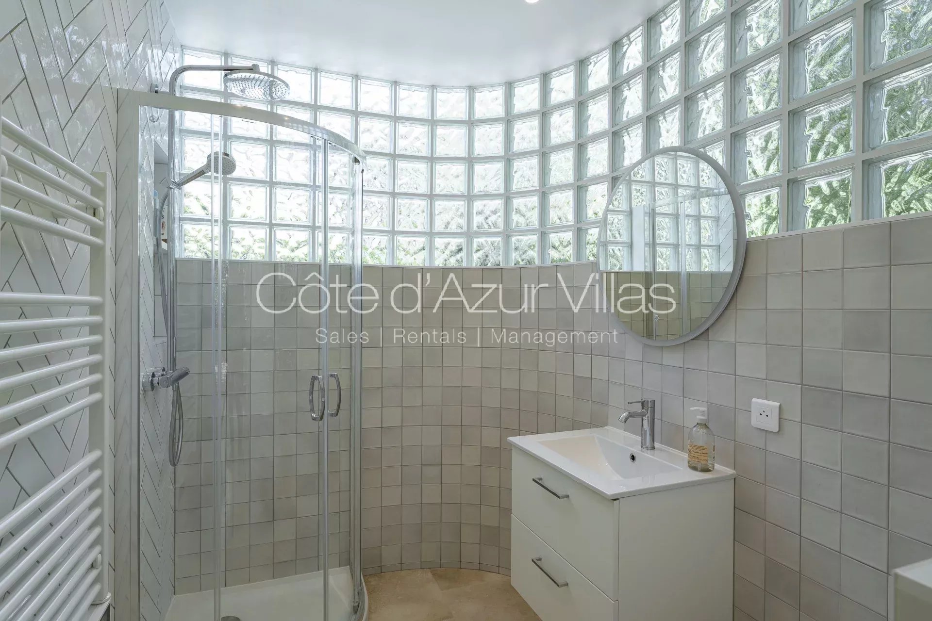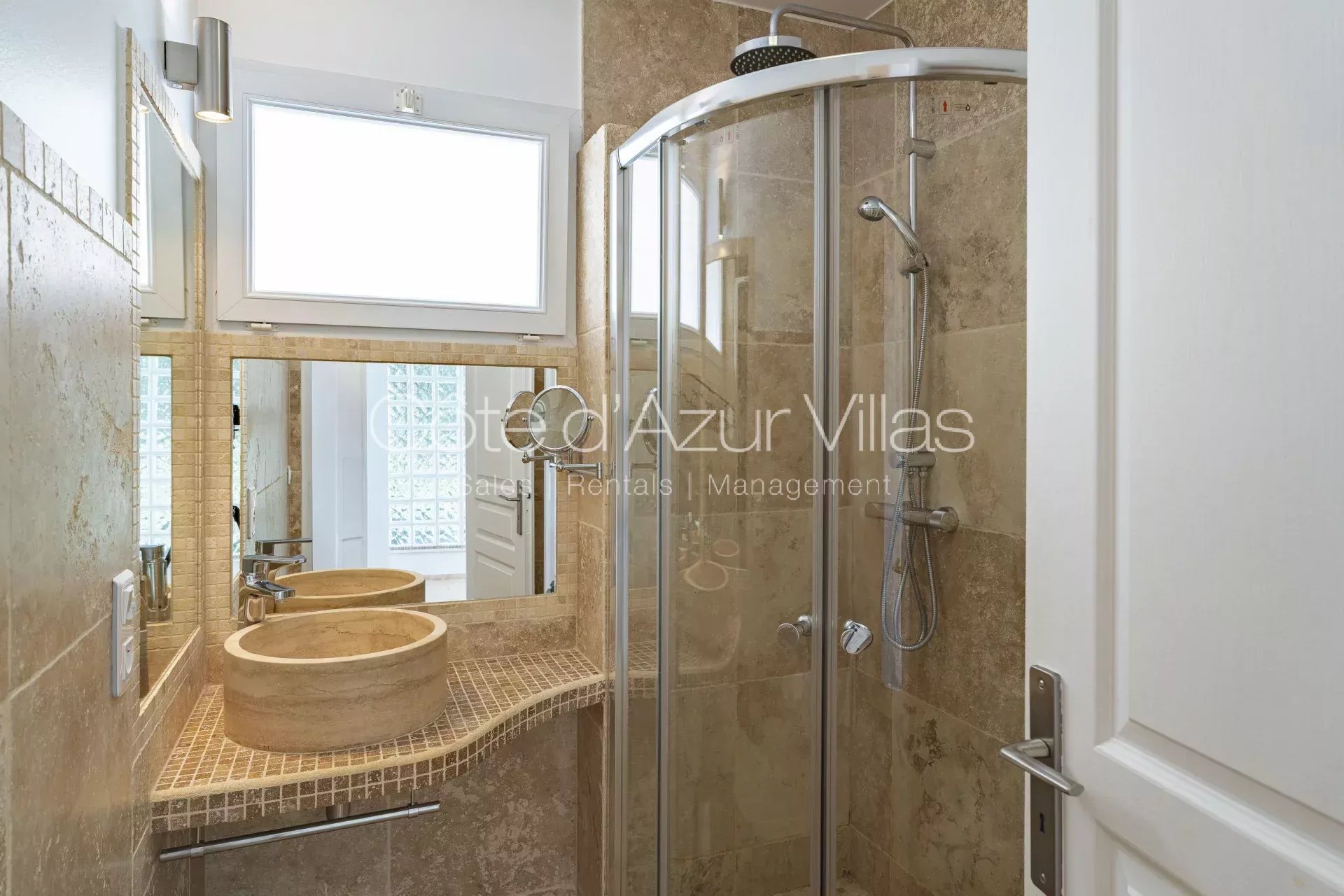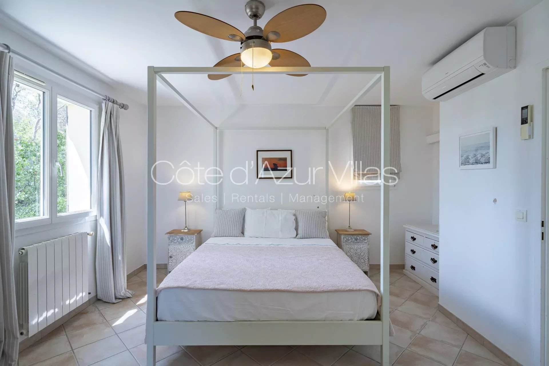 Chambre principale avec salle de bain en suite, deux autres chambres partageant une salle de bain. L'une des chambres est équipée d'un balcon avec une très belle vue dégagée sur la côte. Coin buanderie