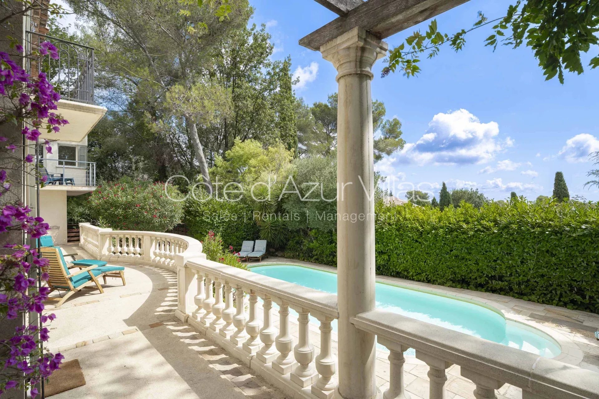 Agréable villa de cinq chambres (possibilité d'une sixième) à quelques pas du village de Valbonne. Propriété familiale, avec piscine clôturée, située dans une ruelle résidentielle tranquille. Emplacement idéal pour les écoles internationales de Mougins et Sophia Antipolis.