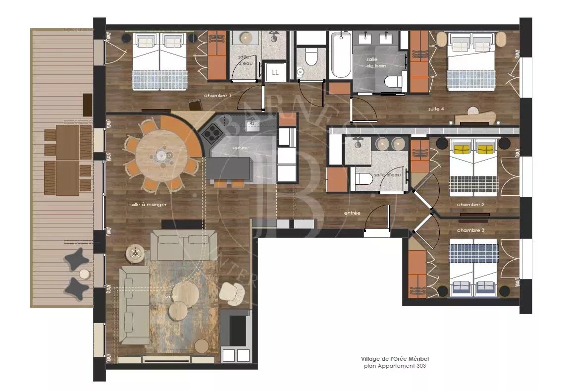 Ravissant appartement dénommé "Dou des Lanches", d'une superficie de 125 m², situé au Rond-Point des Pistes à deux pas des pistes et des écoles de ski.