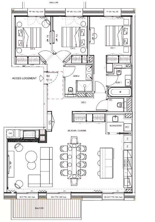 Magnifique appartement, dénommé "Blanchot", d'une superficie de 112 m², situé au Rond-Point des Pistes à deux pas des pistes et des écoles de ski.