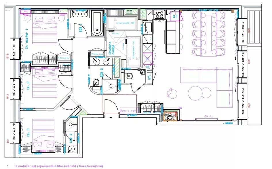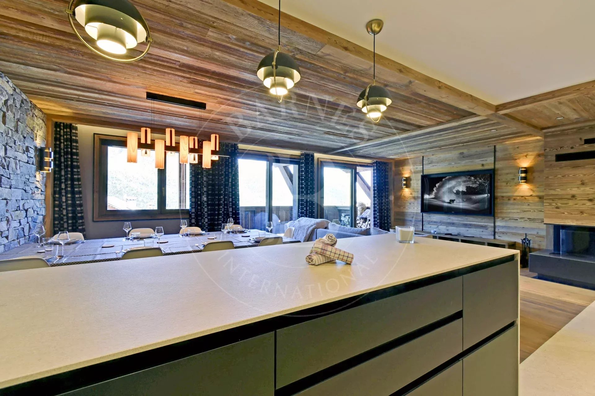 Magnifique appartement dénommé "Les Bosses", d'une superficie de 102 m², situé au Rond-Point des Pistes à deux pas des pistes et des écoles de ski.