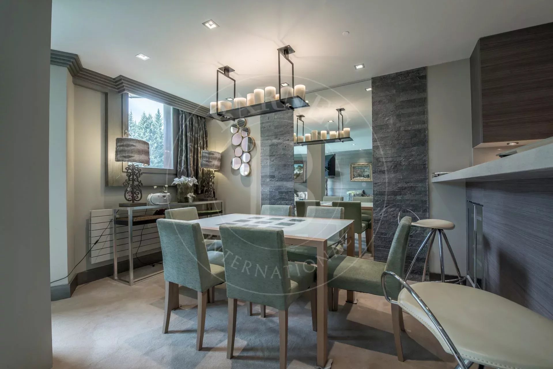 Appartement décoré avec goût et raffinement situé en plein coeur du Jardin Alpin dans une résidence skis aux pieds. La vue sur la forêt et la montagne depuis la terrasse plein sud est juste éblouissante.