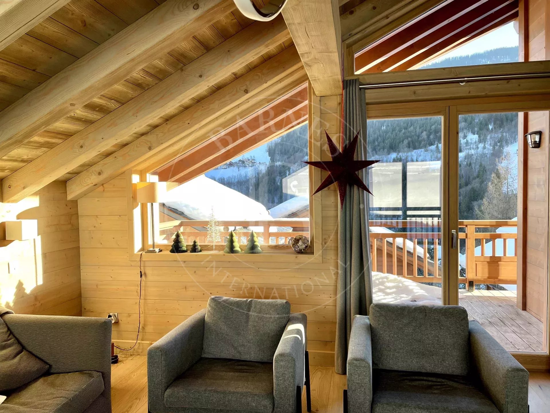 Chaleureux chalet de 150 m², situé dans le le très joli village authentique des Allues, chef lieu de Méribel. Vous serez à deux pas des commodités : supérette, restaurant, magasin de sport.