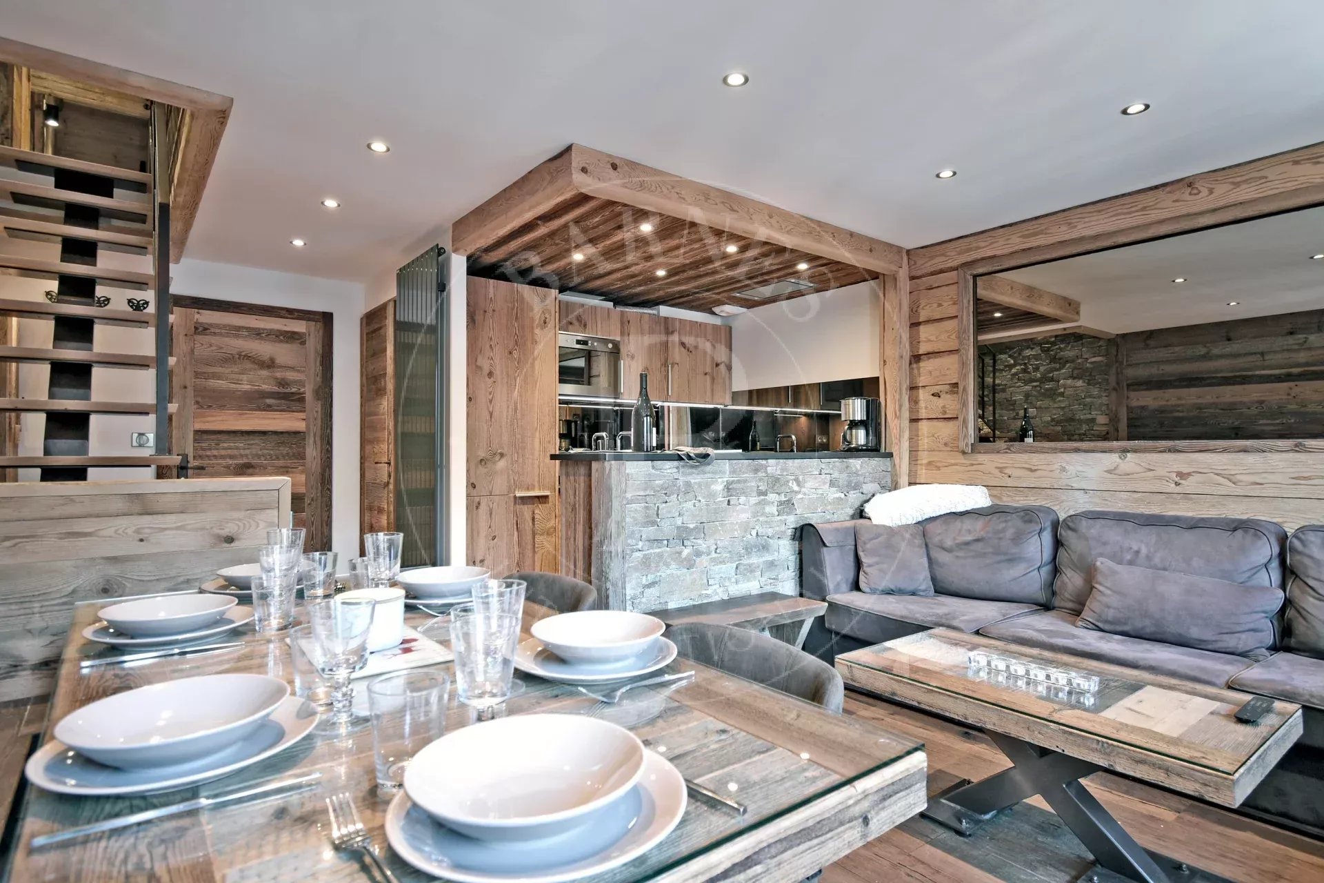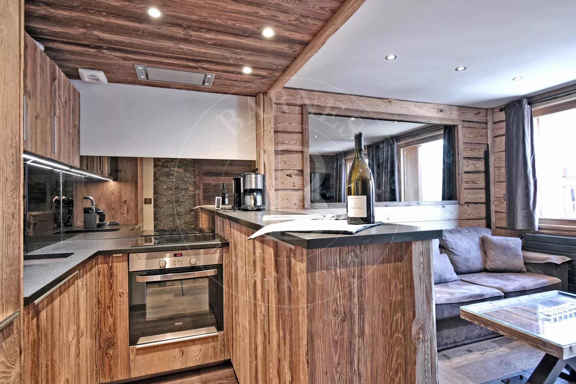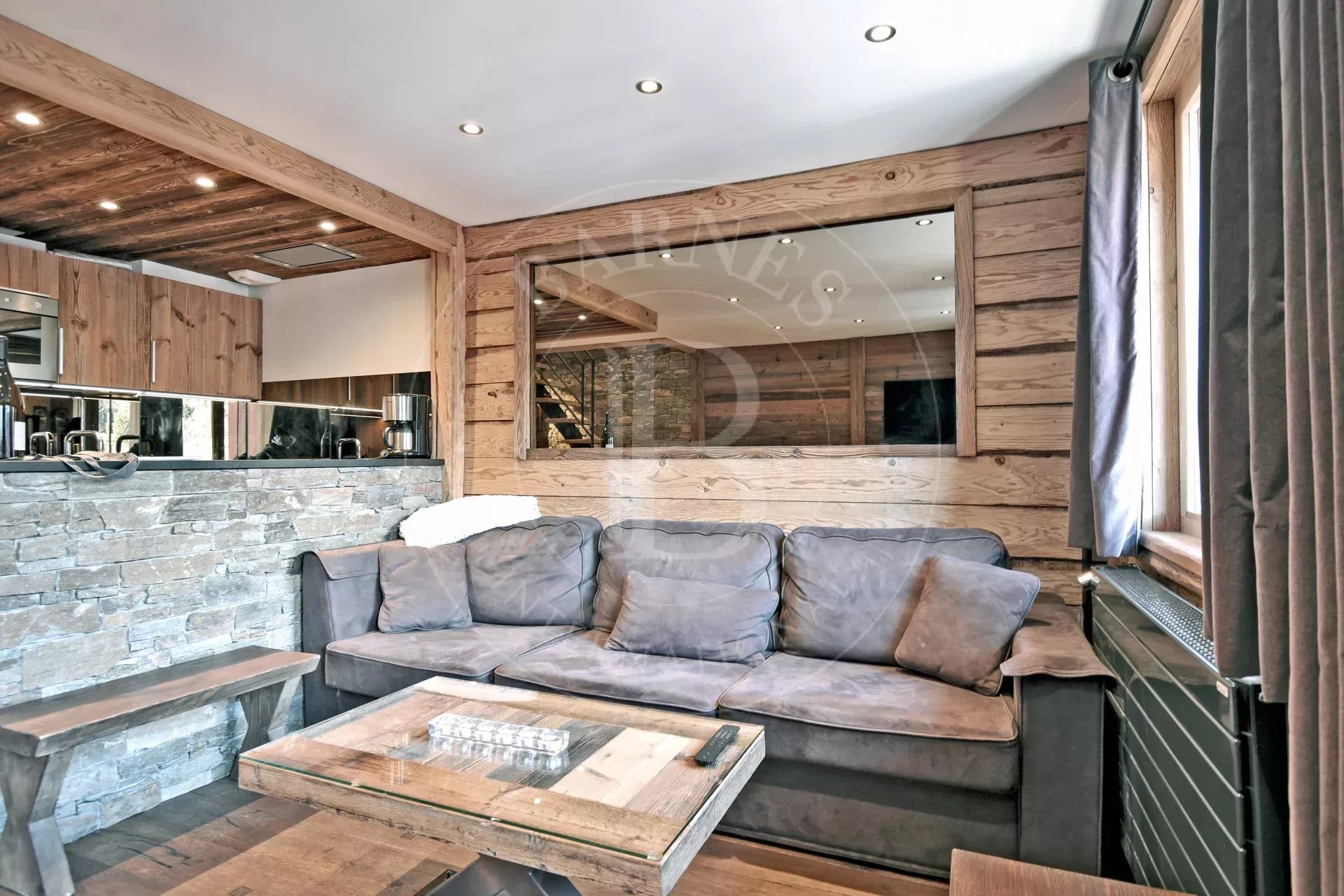 Très bel appartement "Label Méribel" d'environ 80 m², situé au rez de chaussée d’une petite résidence en plein cœur de la station et à deux pas des pistes via l’escalator de l’office de tourisme.