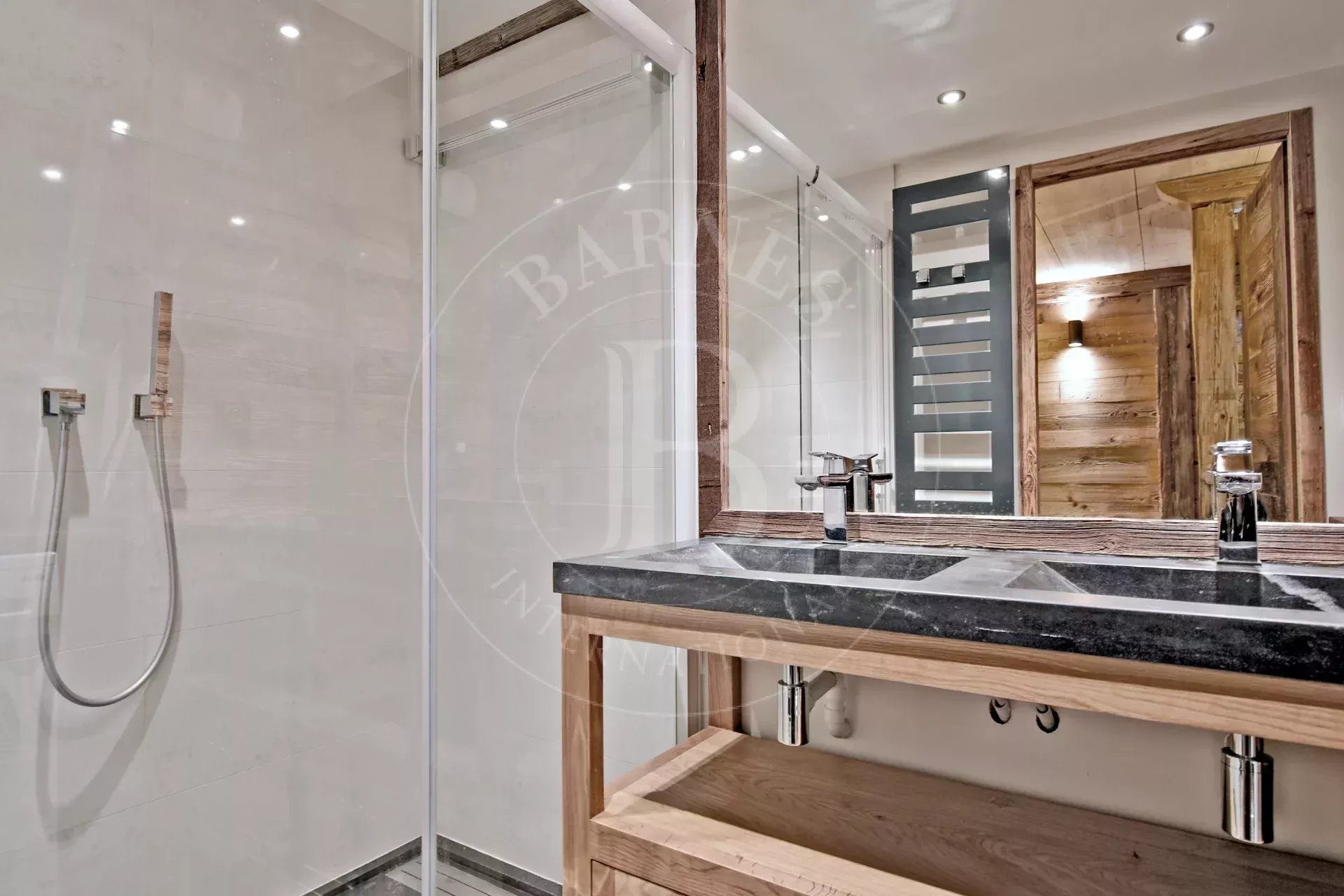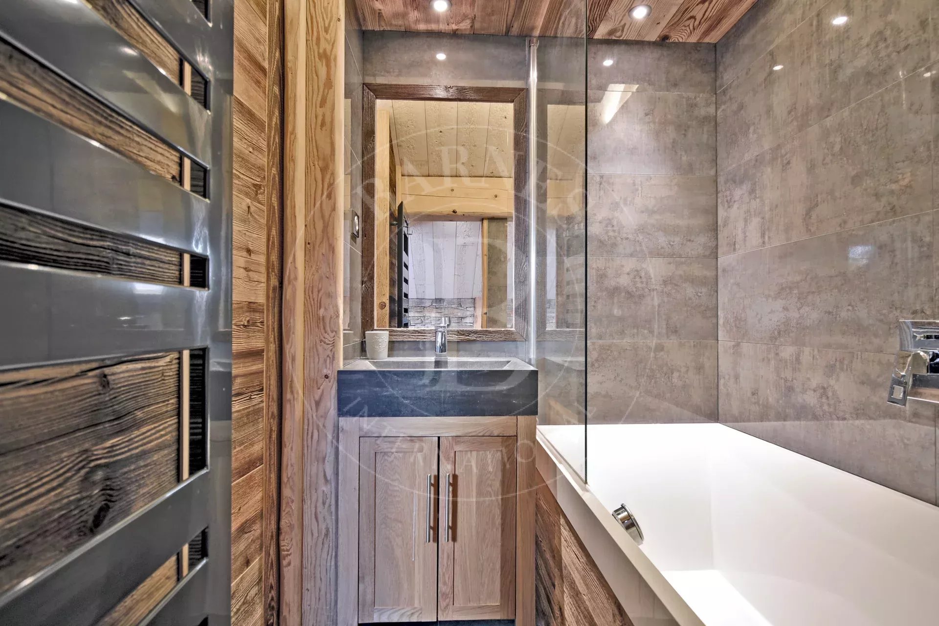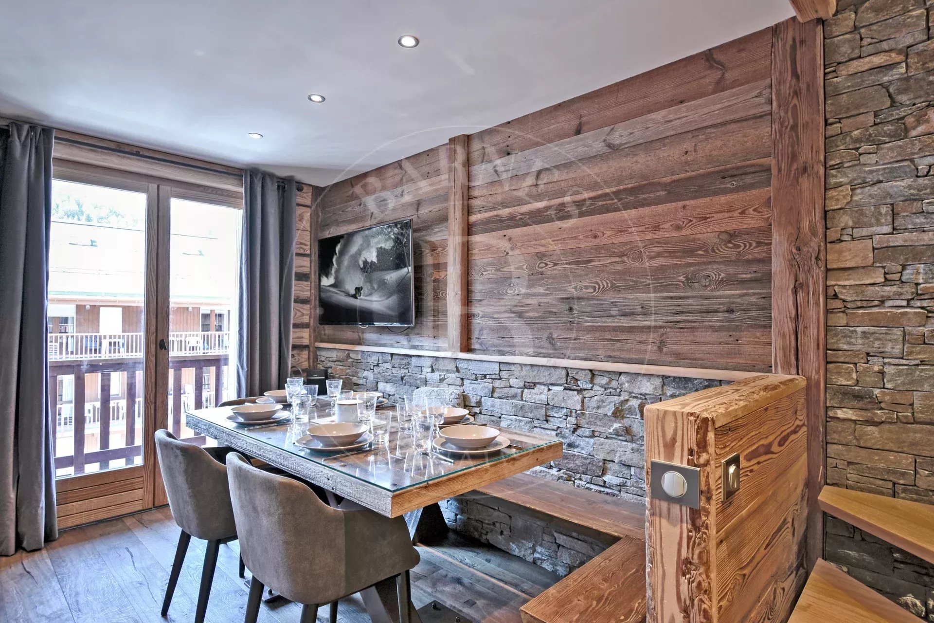 Très bel appartement "Label Méribel" d'environ 80 m², situé au rez de chaussée d’une petite résidence en plein cœur de la station et à deux pas des pistes via l’escalator de l’office de tourisme.