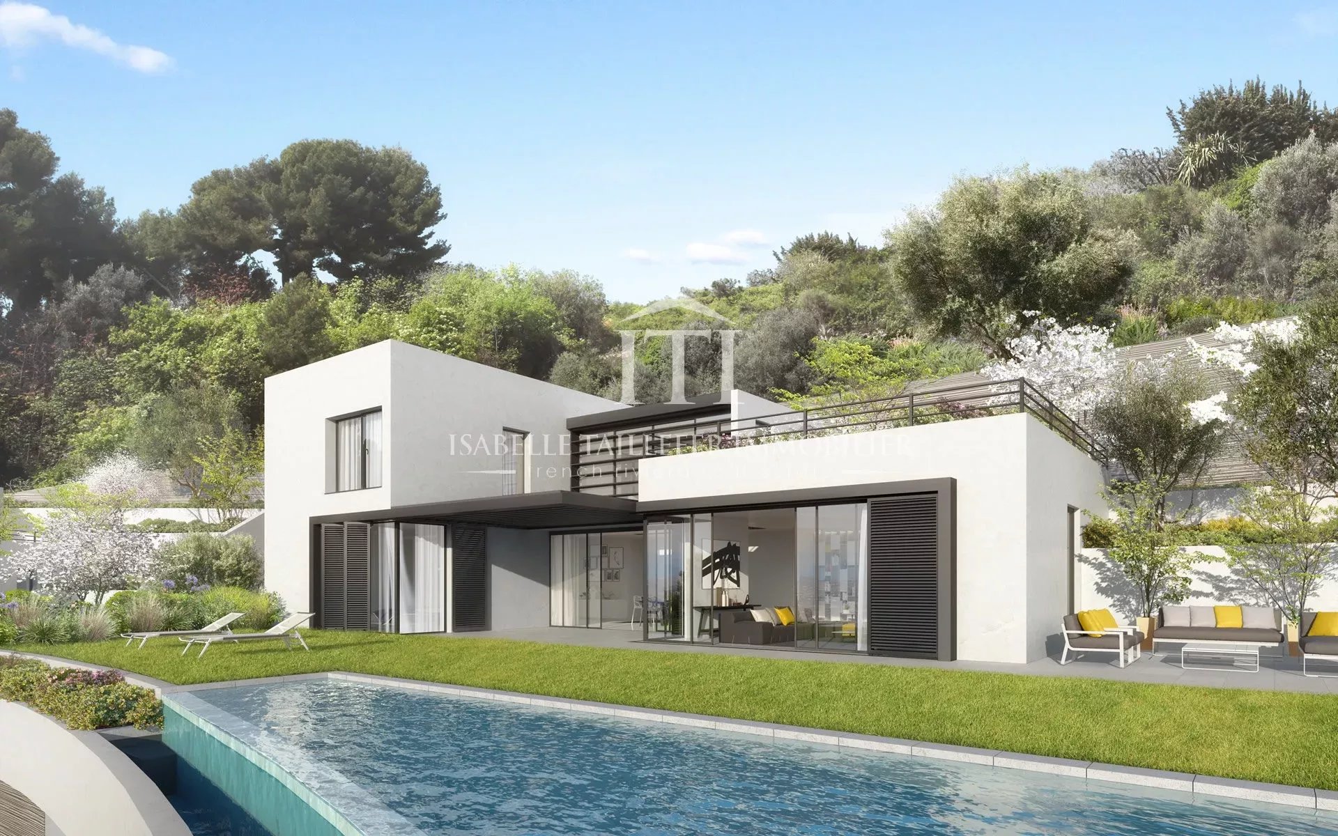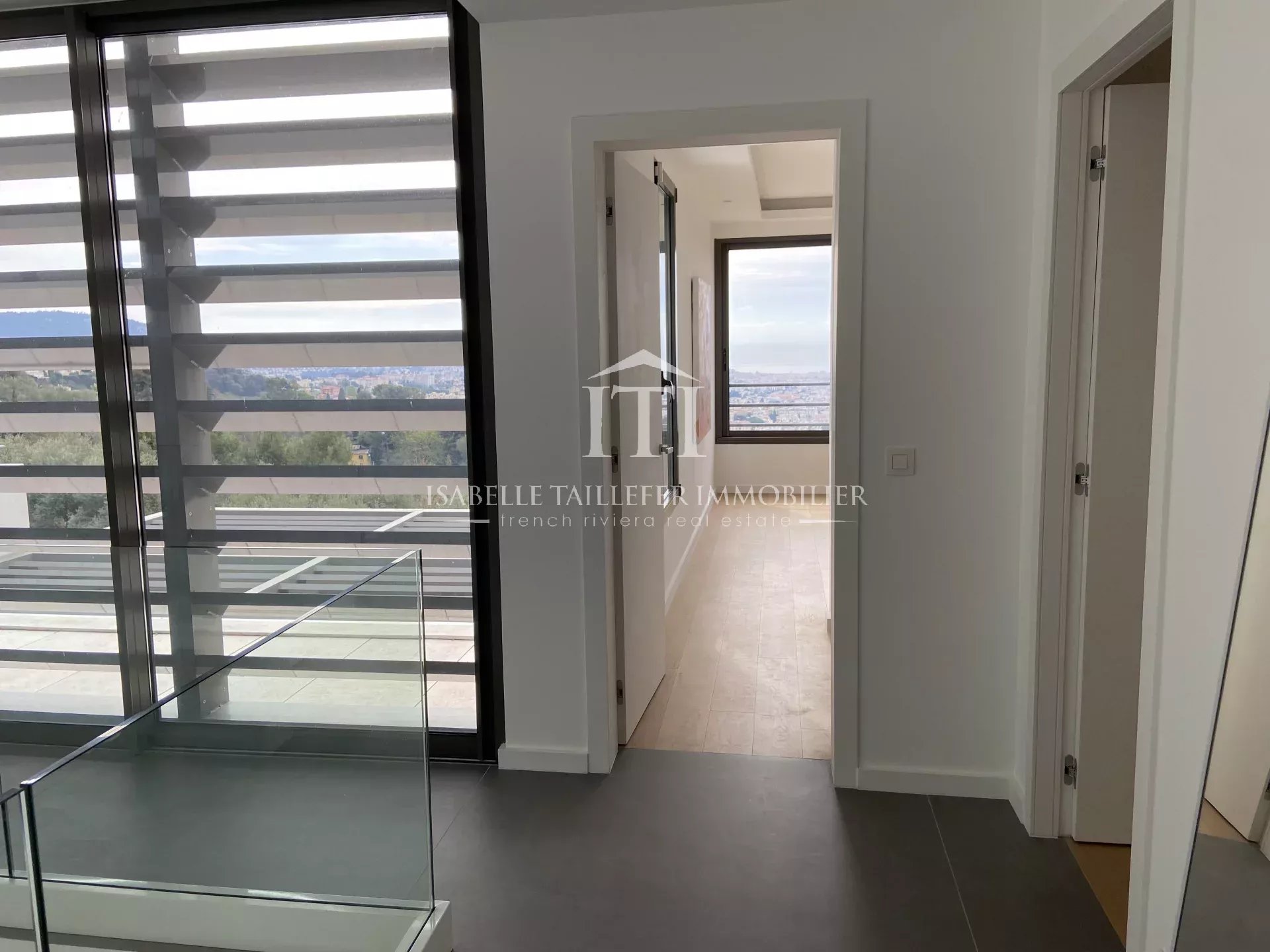 NICE QUARTIER GAIRAUT RÉSIDENTIEL MAGNIFIQUE VILLA CONTEMPORAINE RÉCENTE LUXE de 260m2 en POSITION DOMINANTE AU CALME sur un terrain de 2450m2. Dans un DOMAINE SÉCURISÉ, Prestations haut de gamme avec TERRASSES, JARDIN, PISCINE, GARAGE, ASCENSEUR. Double séjour avec une grande cuisine ouverte, 3 chambres en suite, buanderie, immense garage, salle de loisirs. Proche Autoroute. Aux normes Thermiques. Sur la French Riviera/COTE D'AZUR.