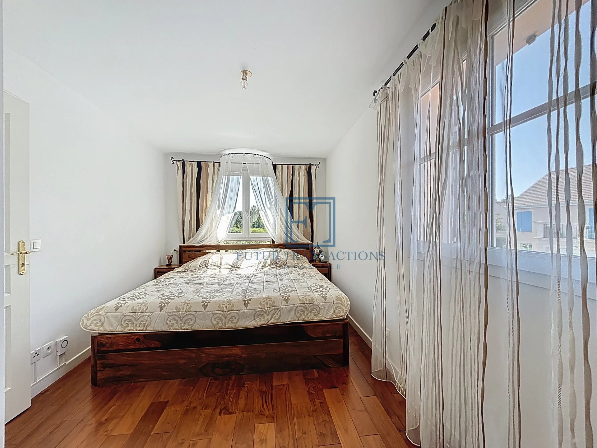Située au sein d'une résidence privée, construite en 2008, cette maison individuelle s'ouvre sur un séjour doté d'une cheminée et bénéficiant d'une luminosité traversante est-ouest, donnant accès au jardin. Un dégagement avec placard et WC mène à la cuisine ainsi qu'à l'accès intérieur au garage double. Le jardin est exposé sud-est et sud-ouest. L'étage de la maison est composé d'un palier desservant deux chambres mais aussi une suite parentale, ainsi qu'une salle de bain avec WC. Information d'affichage énergétique sur ce bien : classe ENERGIE D indice 238 et classe CLIMAT B indice 7. Montant estimé des dépenses annuelles d'énergie pour un usage standard : entre 1570 € et 2170 € par an. Prix moyens des énergies indexés sur l'année 2021, 2022, 2023 (abonnements compris) Les informations sur les risques auxquels ce bien est exposé sont disponibles sur le site Géorisques : https://www.georisques.gouv.fr/
