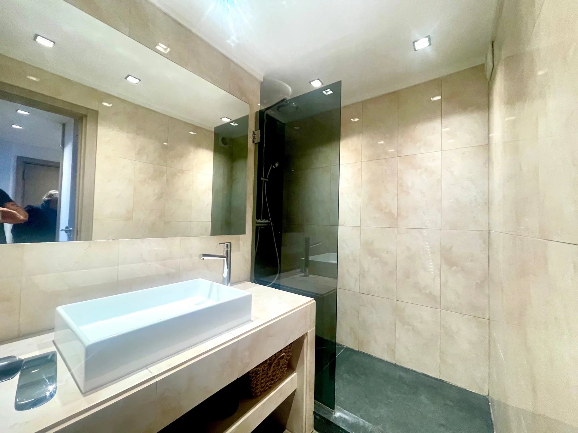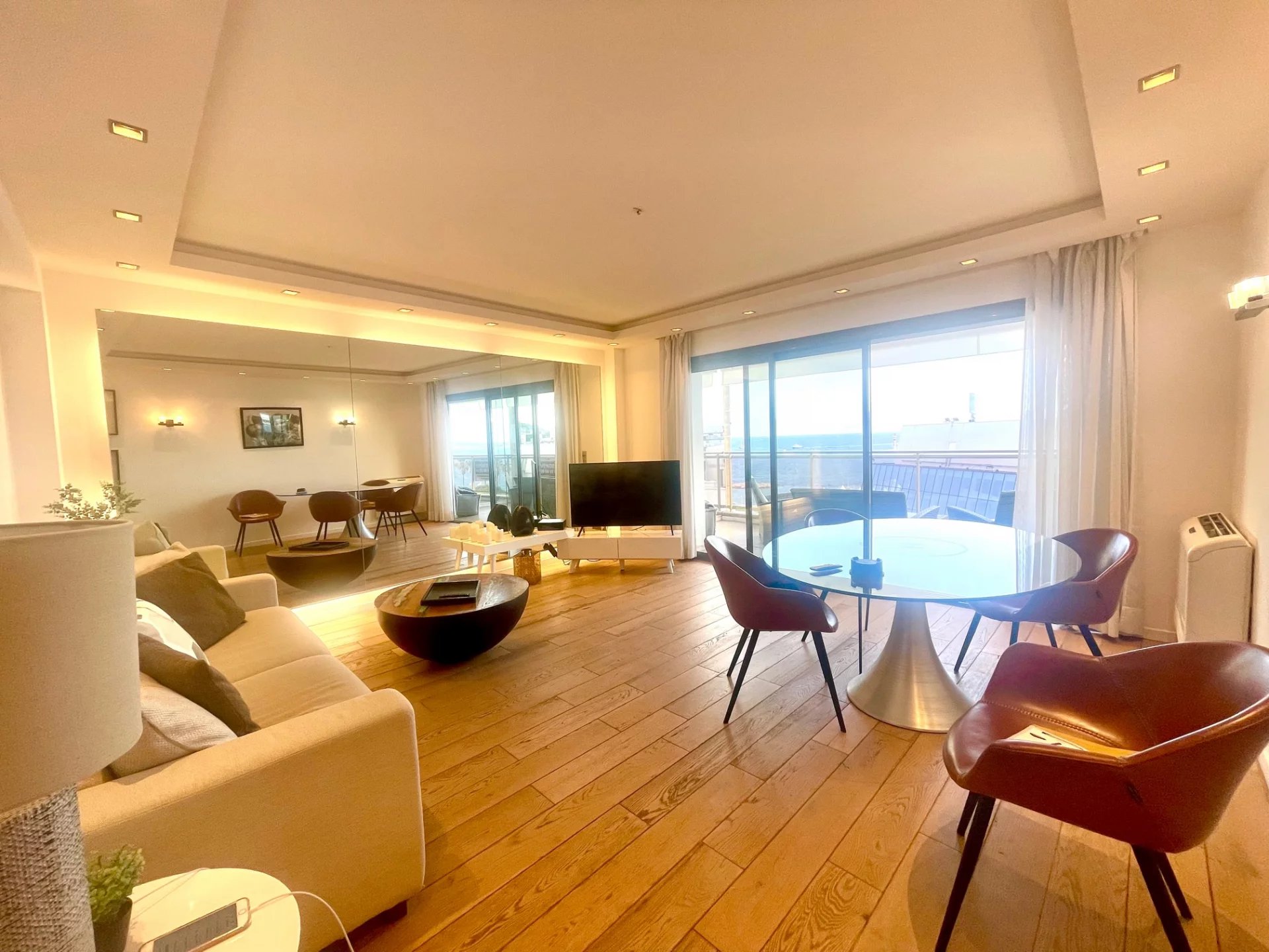 EMPLACEMENT EXCEPTIONNEL ! Sur la croisette, face au palais et ces fameuses marche ,mais aussi avec une très belle vue sur la mer et baie de Cannes ,en étage élevé ,très beau et confortable 2 pièces qui à été entièrement rénové avec des matériaux de qualités , d'une surface de 60 m² habitable , il est composé d'un beau séjour donnant sur une belle terrasse plein Sud de 12 m² une cuisine sépare toute équipée ,d'une grande chambre avec une salle de douche et un toilette séparé . Il dispose ce qui est rare d'un garage et d'une cave .