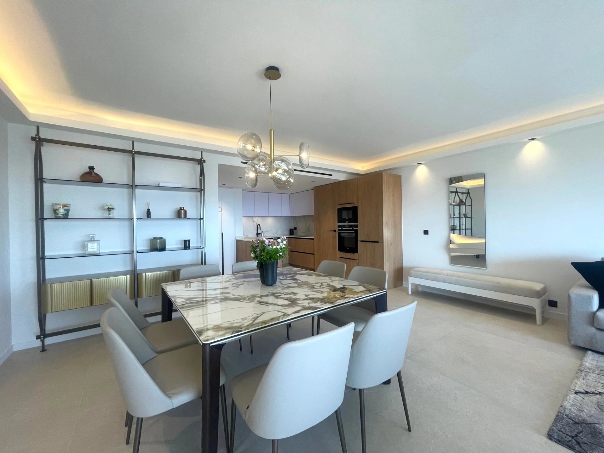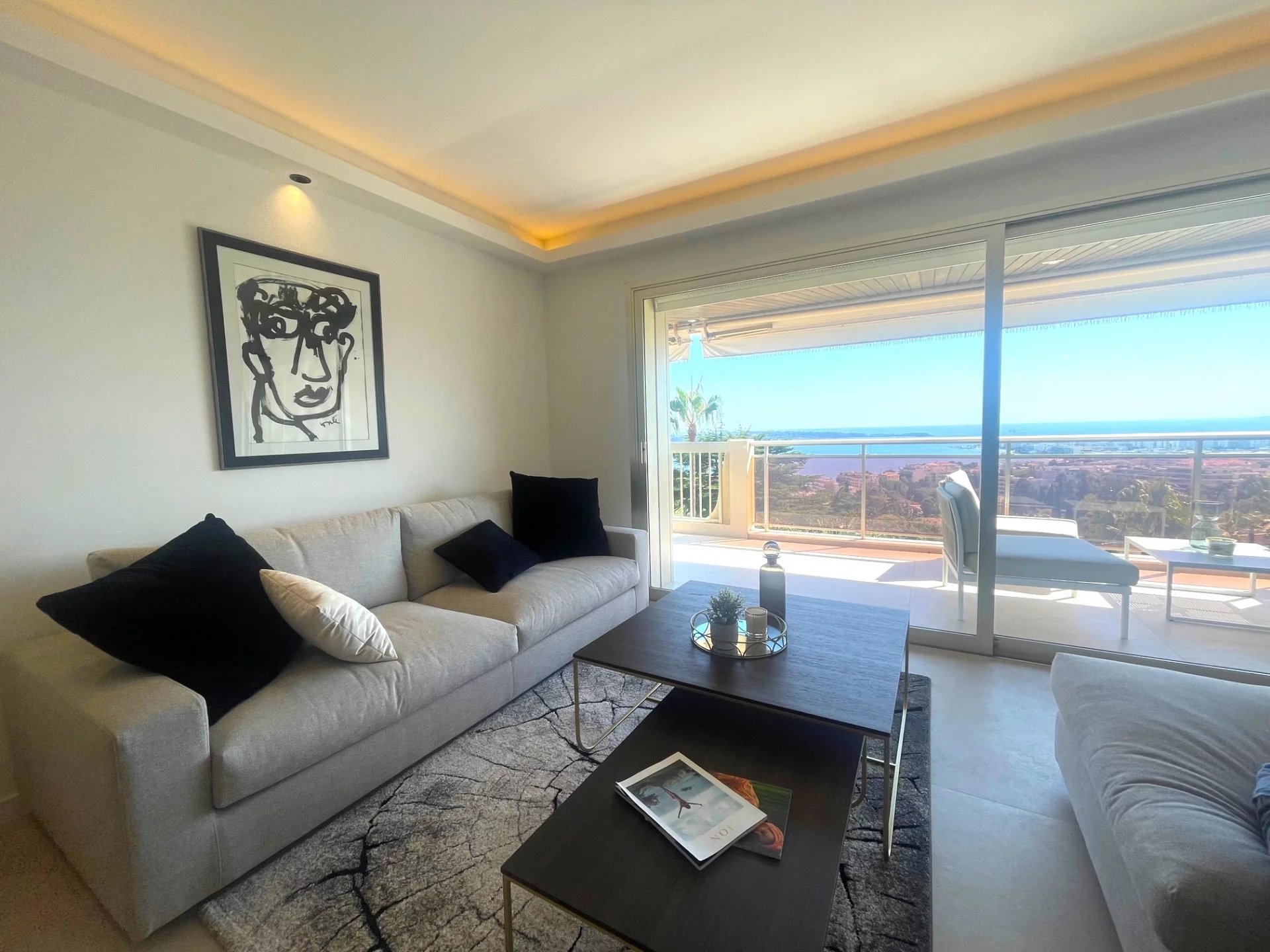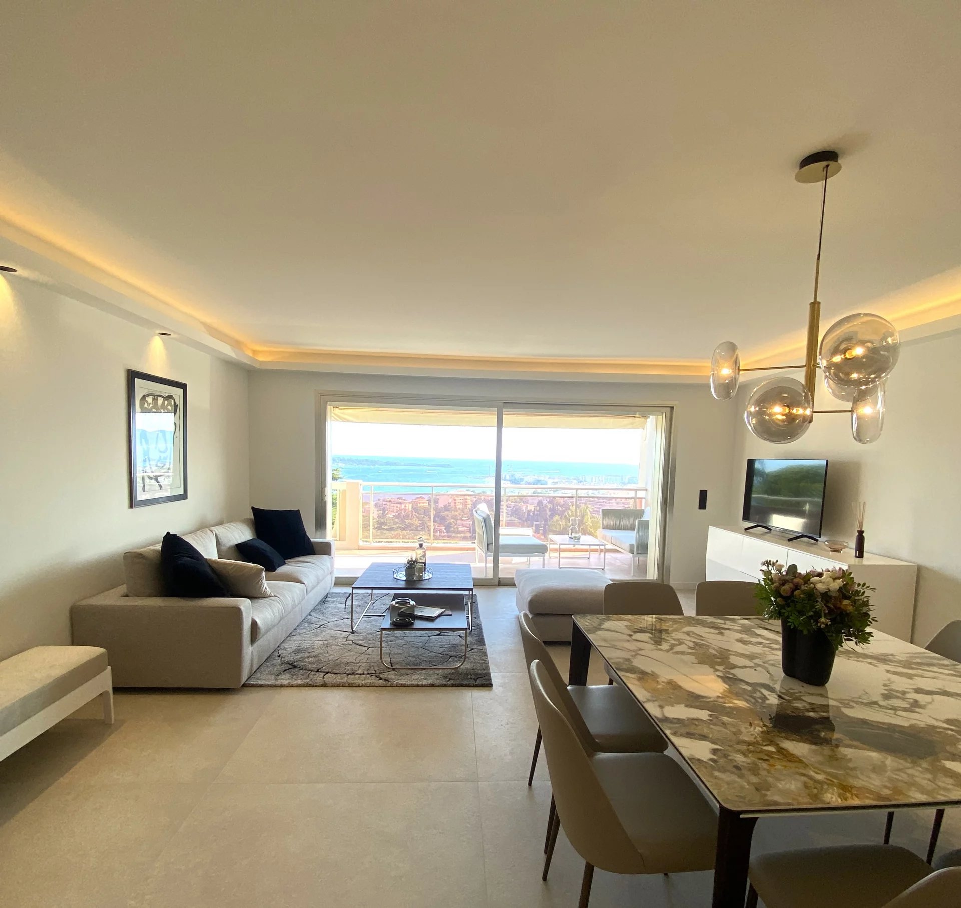 Dans le secteur très prisé de la Californie dans une résidence de grand standing avec gardien parc piscine tennis au calme absolu Magnifique appartement de 4 pièces superbement rénové avec des matériaux de qualités Il est composé d'un grand séjour donnant sur une belle terrasse de 20 m² dominant la baie de Cannes avec une vue fantastique sur la mer et les iles de Lerins, une cuisine ouverte équipée 3 belles chambres en suites . il dispose de 2 garages et d'une cave .