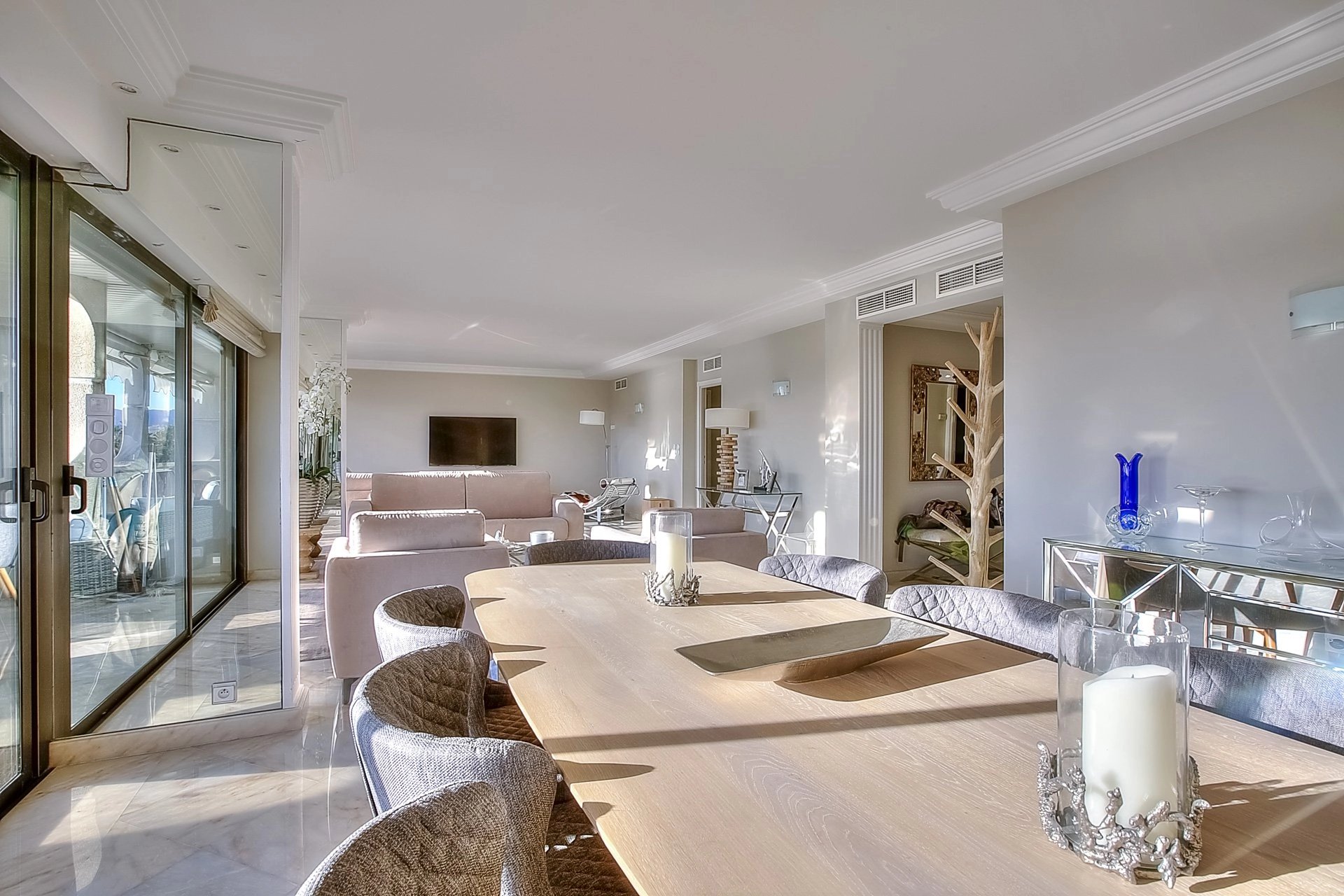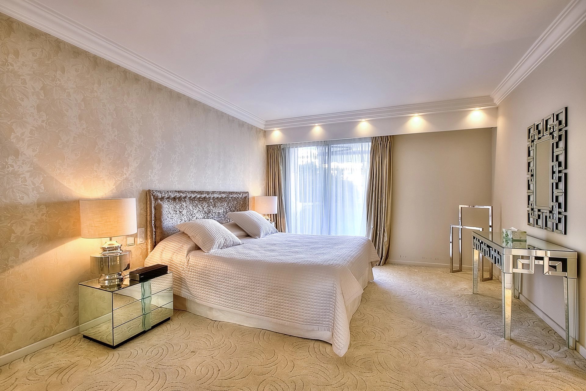 Très bel appartement de luxe à côté du Carlton avec une magnifique vue dégagée sur la Croisette. 4/5 personnes peuvent séjourner confortablement dans ce bien de 157 m2, en profitant d’un grand séjour-réception avec vaste terrasse surplombant la Croisette, 2 chambres master avec salle de bain, 1 petite chambre bureau avec salle de douche, 2 wc invités. Toutes les chambres possèdent un balcon. Une cuisine équipée, 2 places de parking complètent ce bien. Idéal pour vos vacances ou séjours professionnels.
