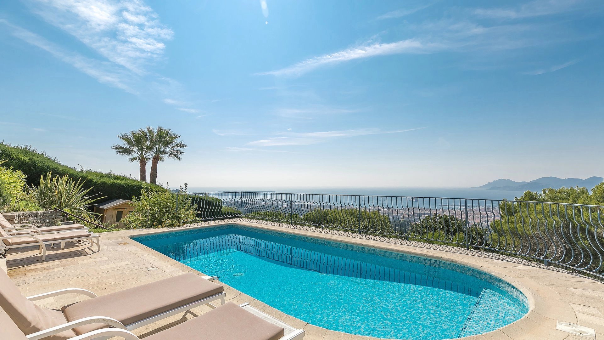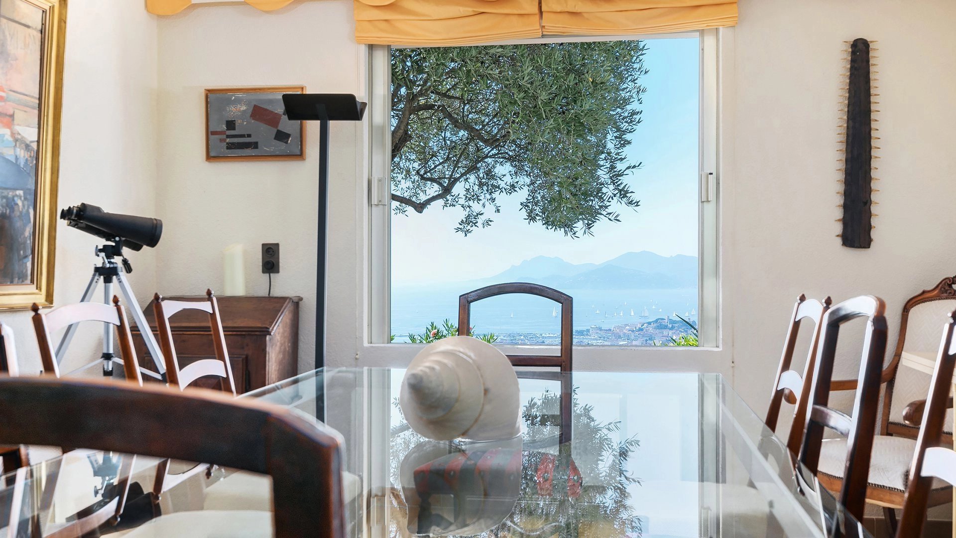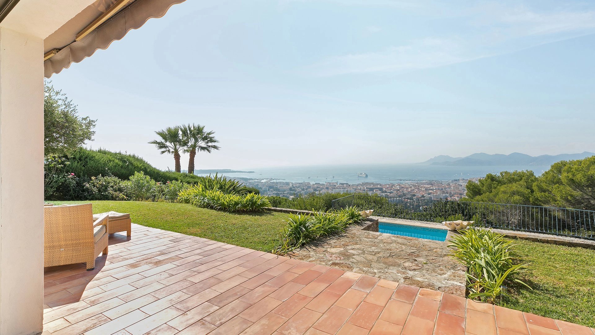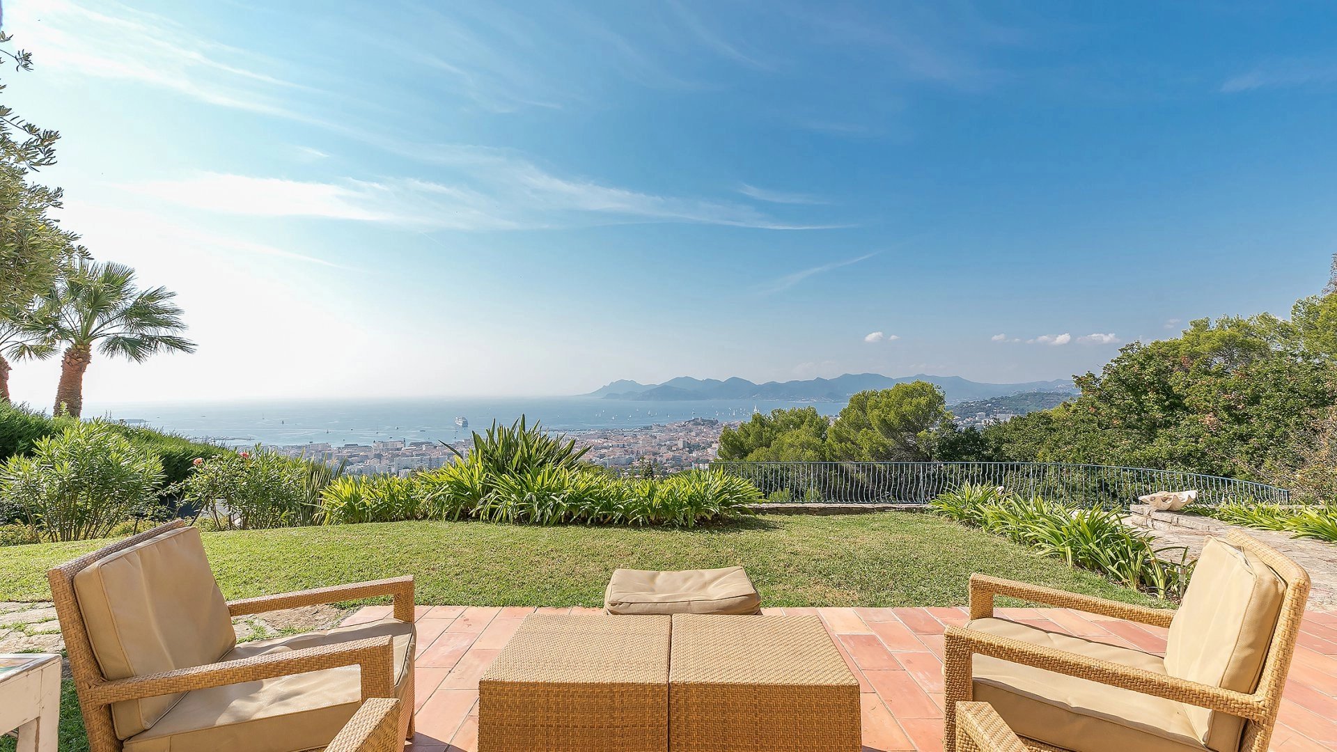 Sur la plus belle adresse de la Californie dans un domaine sécurisé,Une magnifique Villa située à 10 minutes du centre ville,avec une vue unique et époustouflante sur les îles de lérinsà l'Esterel Cette villa est composée de trois chambres avec vue mer, dont une chambre de maître, trois salles de bains un grand double séjour avec salle à manger, une cuisine indépendante et une buanderie. Toutes les pièces de cette villa ont une vue directe sur la mer. Il dispose aussi d un appartement indépendant avec 2 chambres, une salle de bain et un séjour avec cuisine américaine.