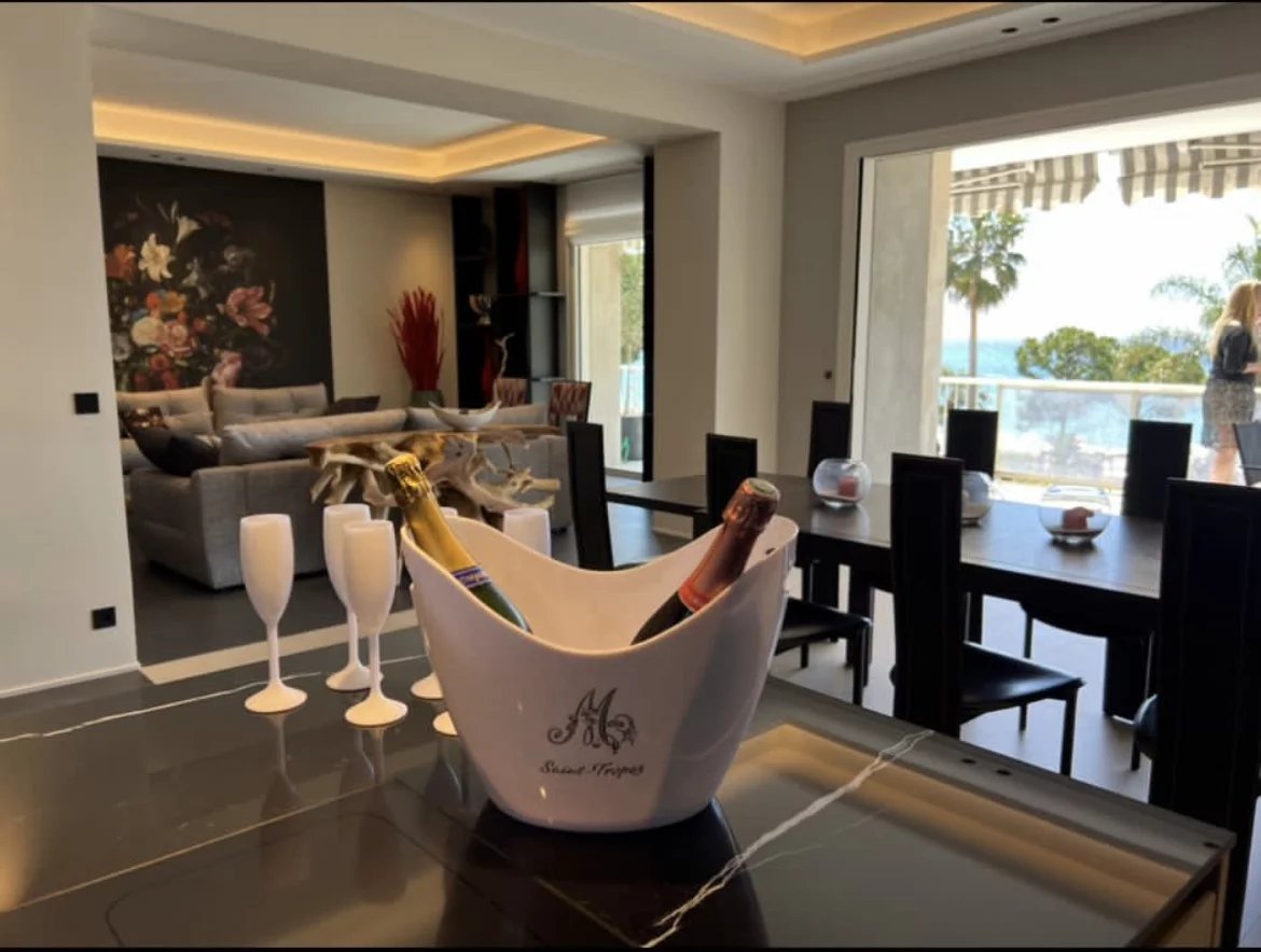 Situé sur la Croisette, entre le Carlton et le Martinez, voici un magnifique appartement rénové en 2023. Il se situe au deuxième étage et dispose d’une superficie de 196m2. L’ appartement détient une terrasse de 42m2 avec vue mer panoramique, quatre chambres avec salle de bain attenante dans chacune. Un double salon très spacieux, belle cuisine et vue mer de l’intérieur. Appartement d’exception vendu avec double parking.