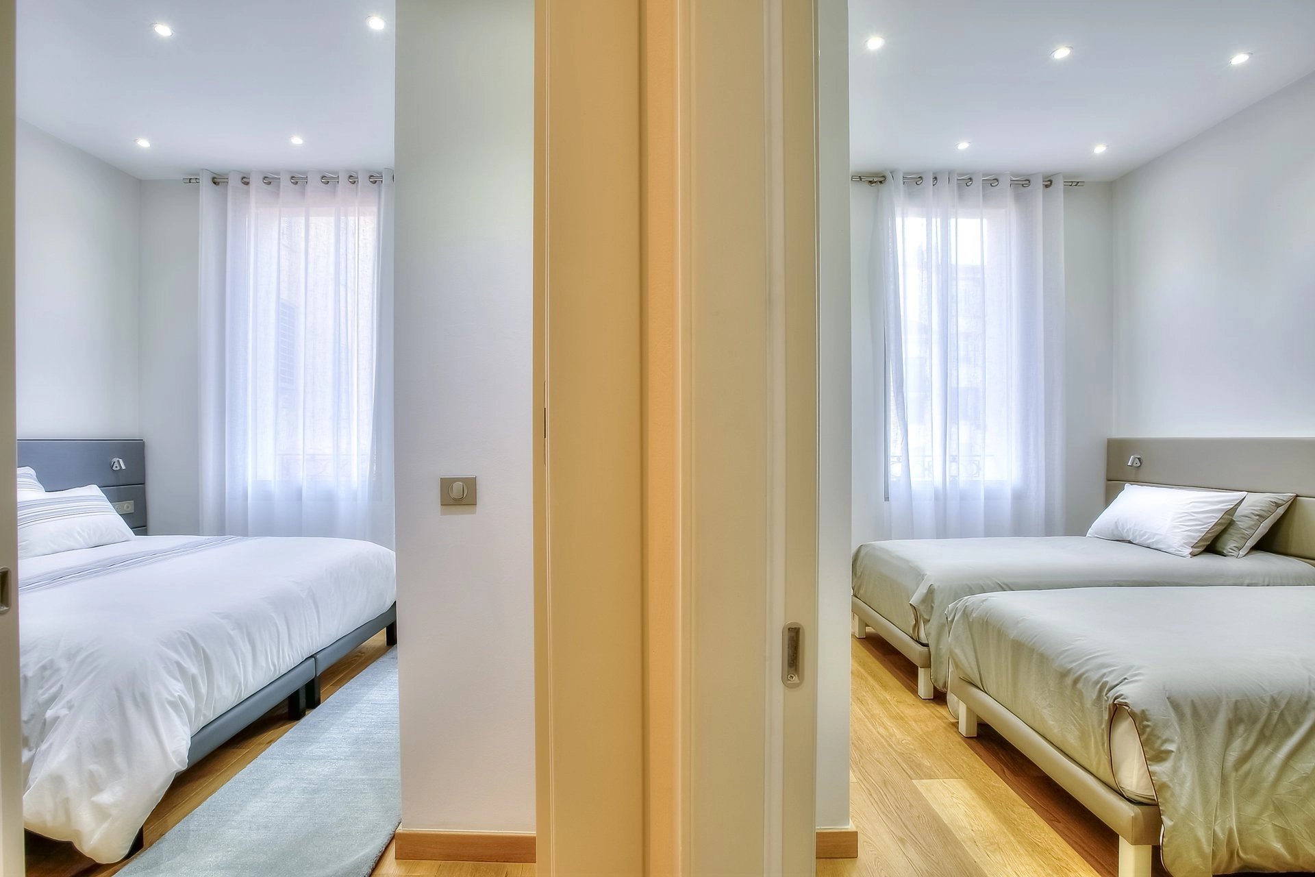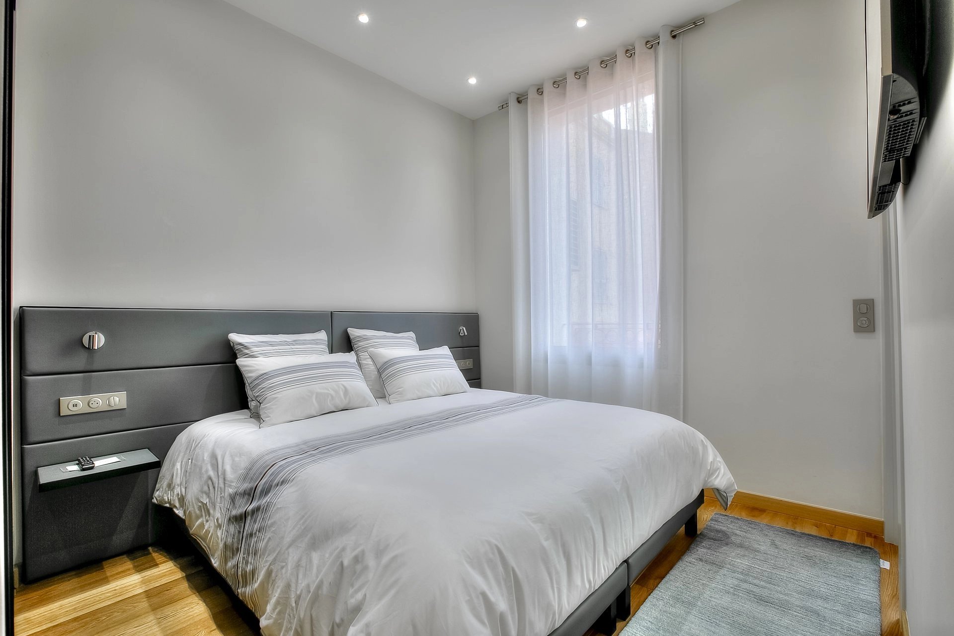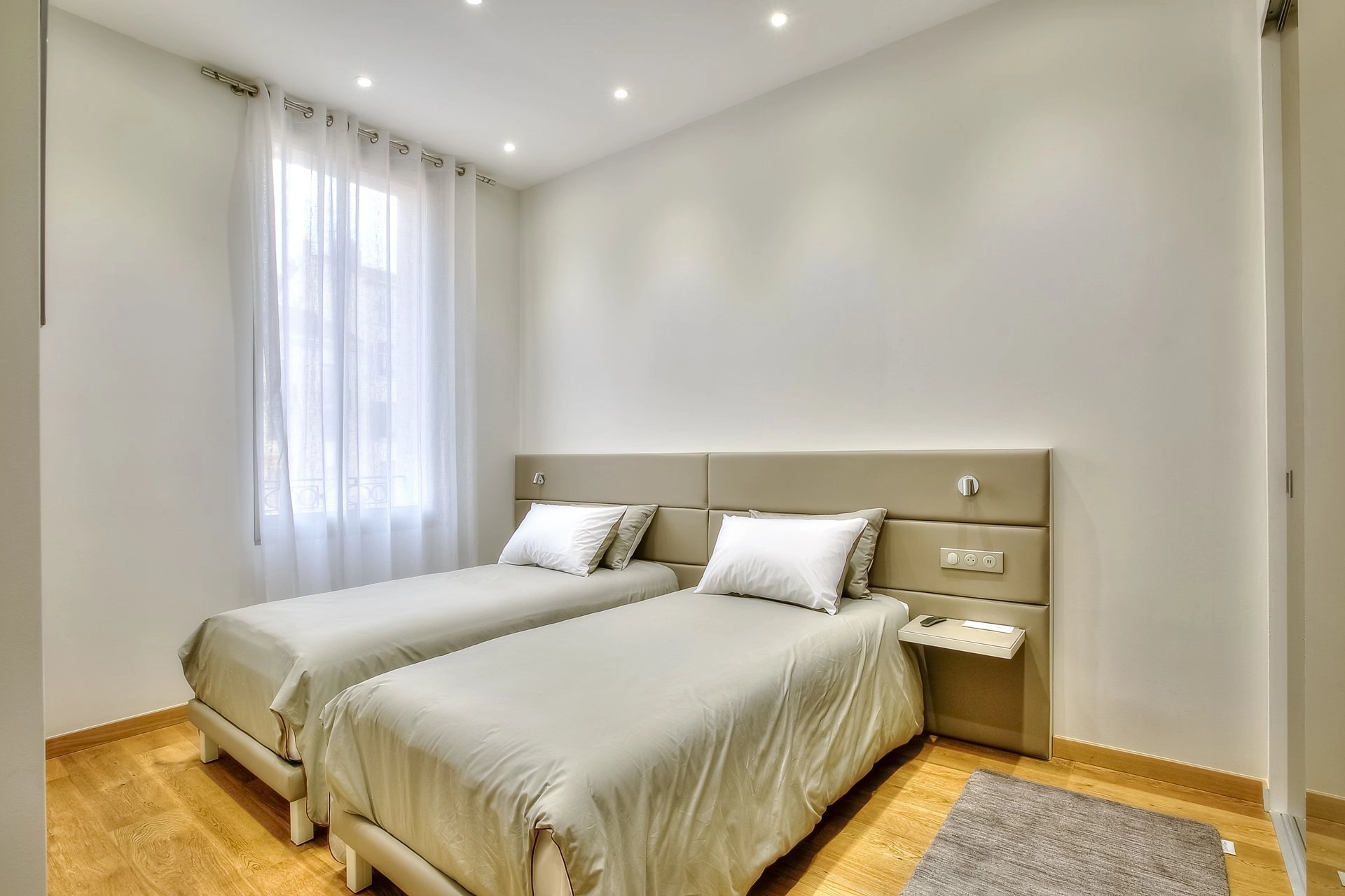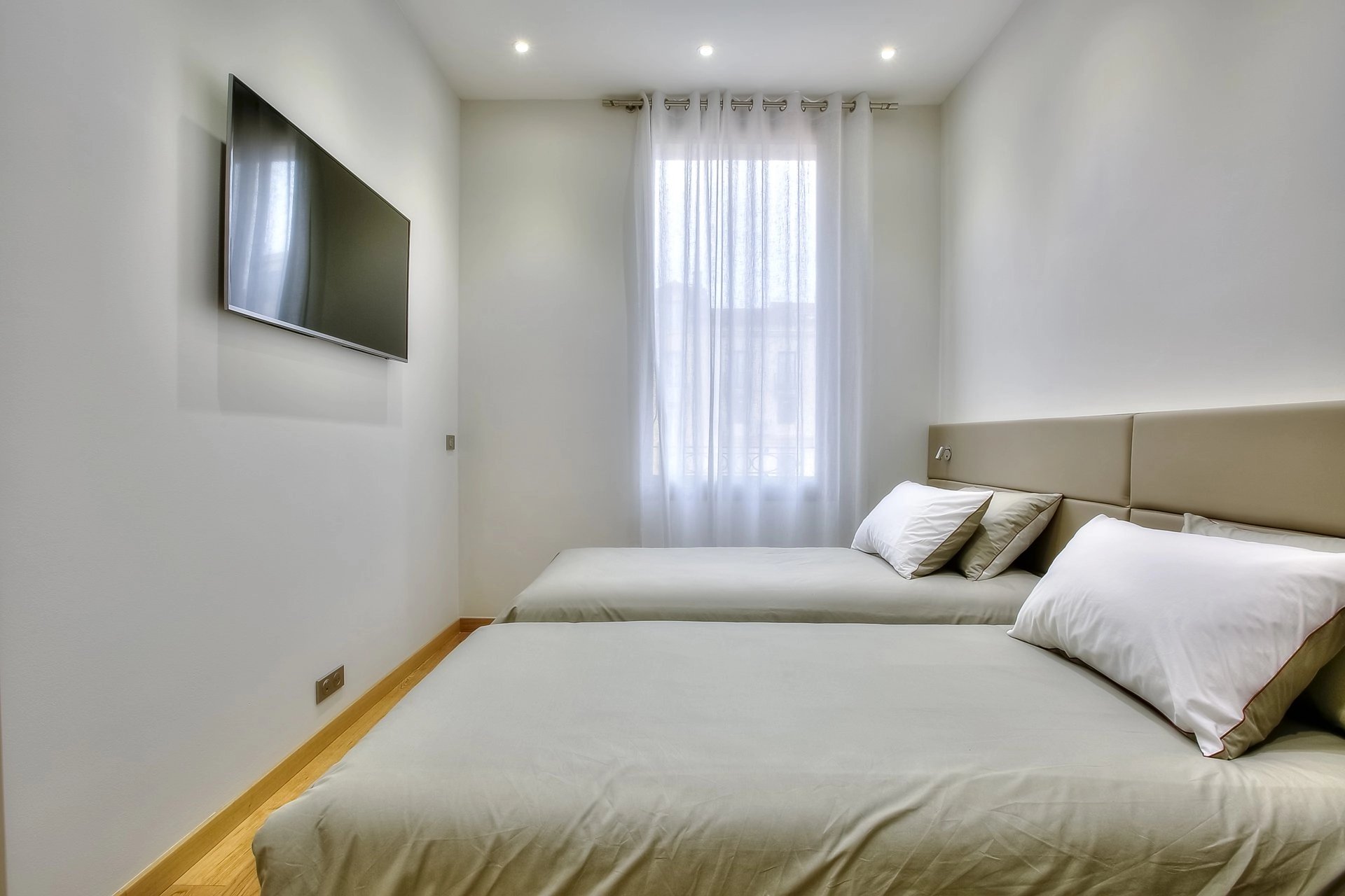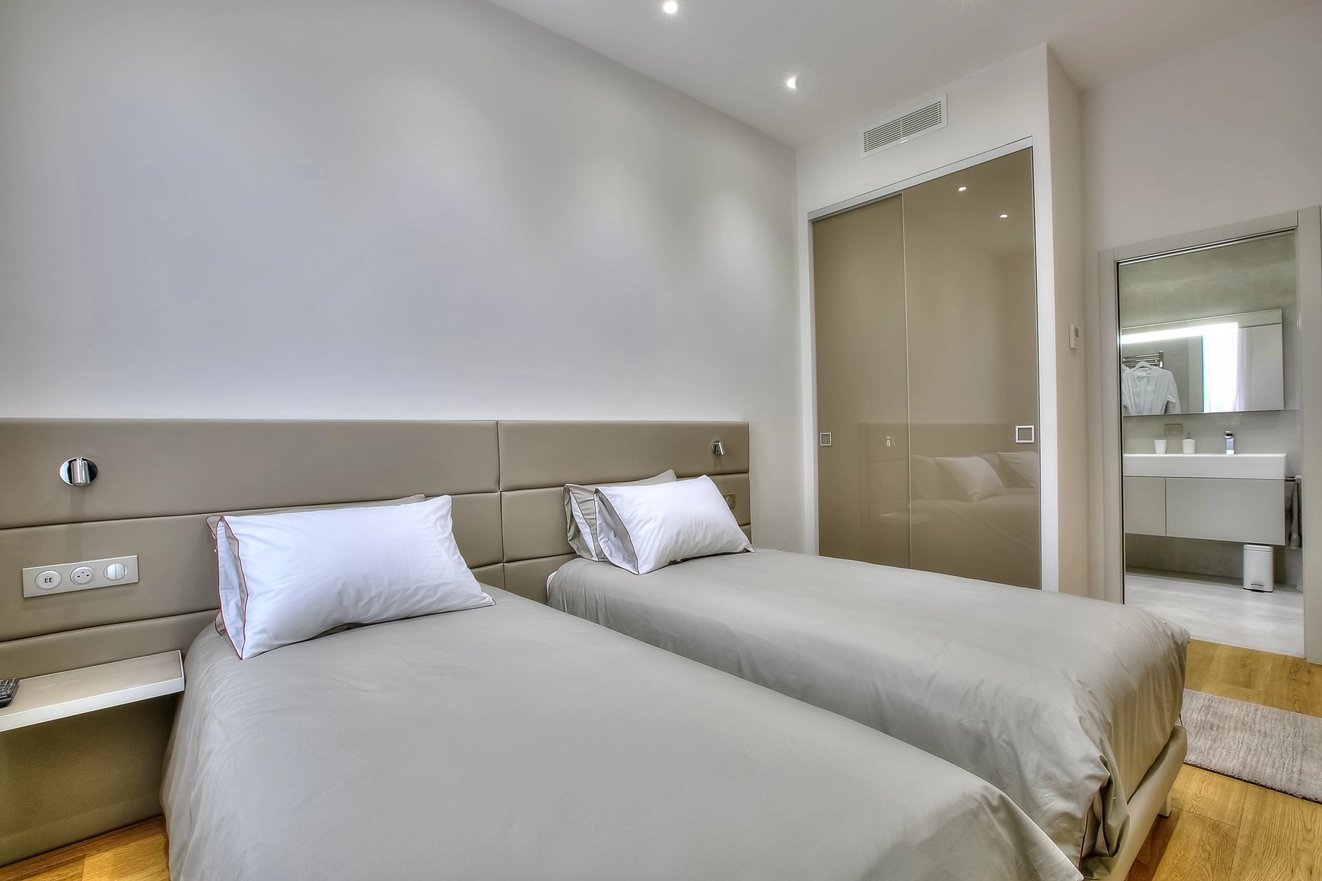 Très bel appartement d’une surface de 80 m2 bénéficiant de prestations d’excellente qualité et d’un emplacement exceptionnel sur la rue d’Antibes pouvant convenir à 4 personnes pour un séjour de vacances ou professionnel. Situé dans un immeuble tout récemment rénové avec ascenseur. Cet appartement abrite 2 chambres en suite avec leurs salles de bains attenantes. Un salon-salle à manger, cuisine américaine, 1 wc invités et une terrasse meublée.