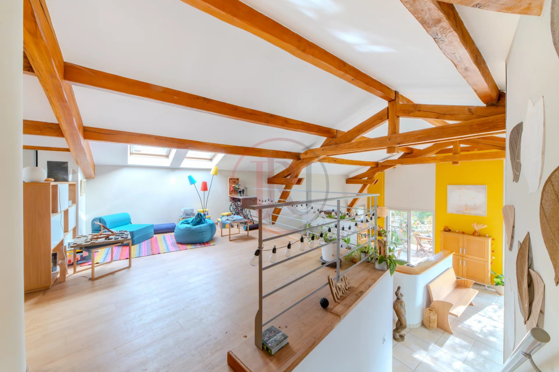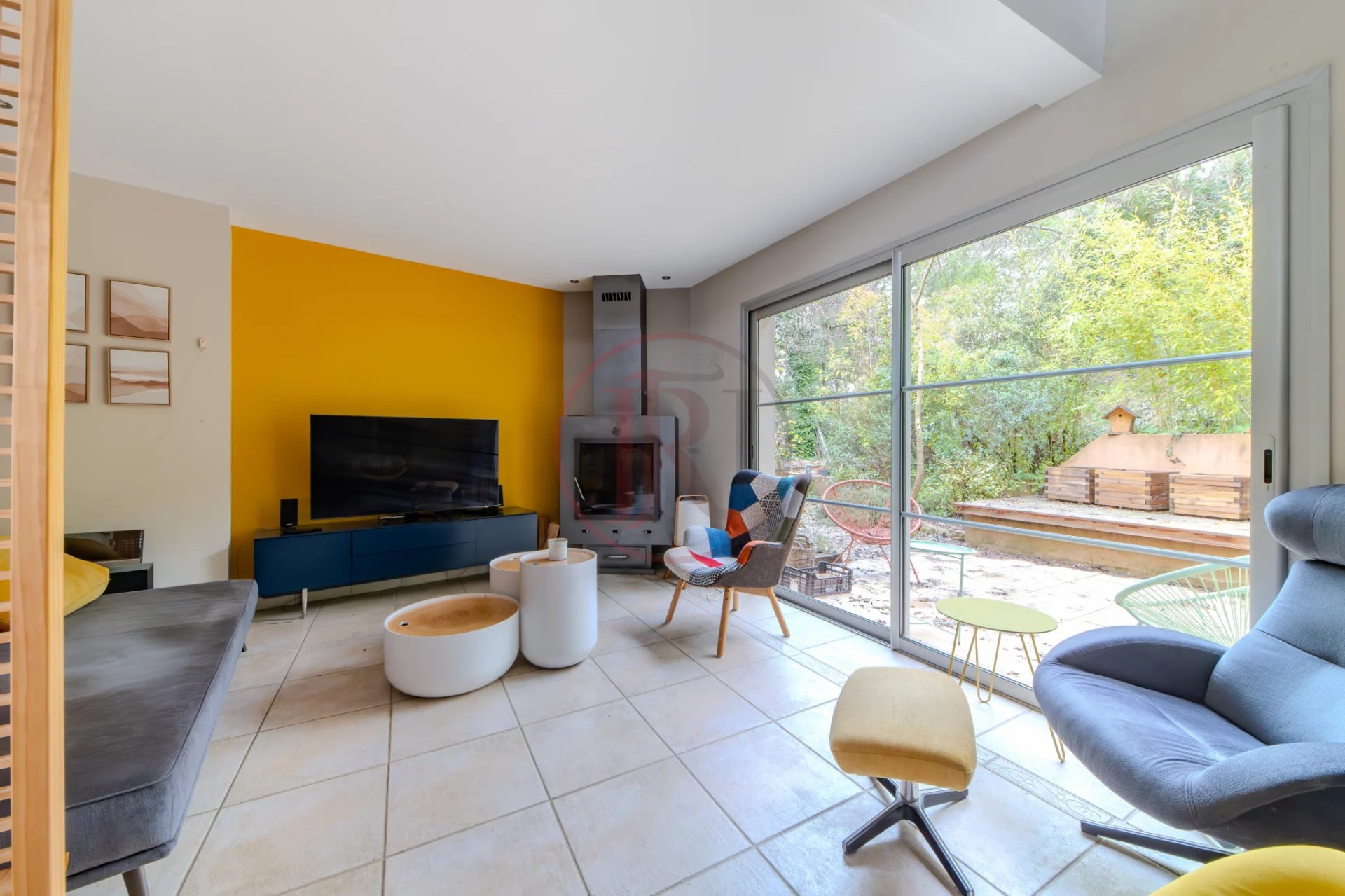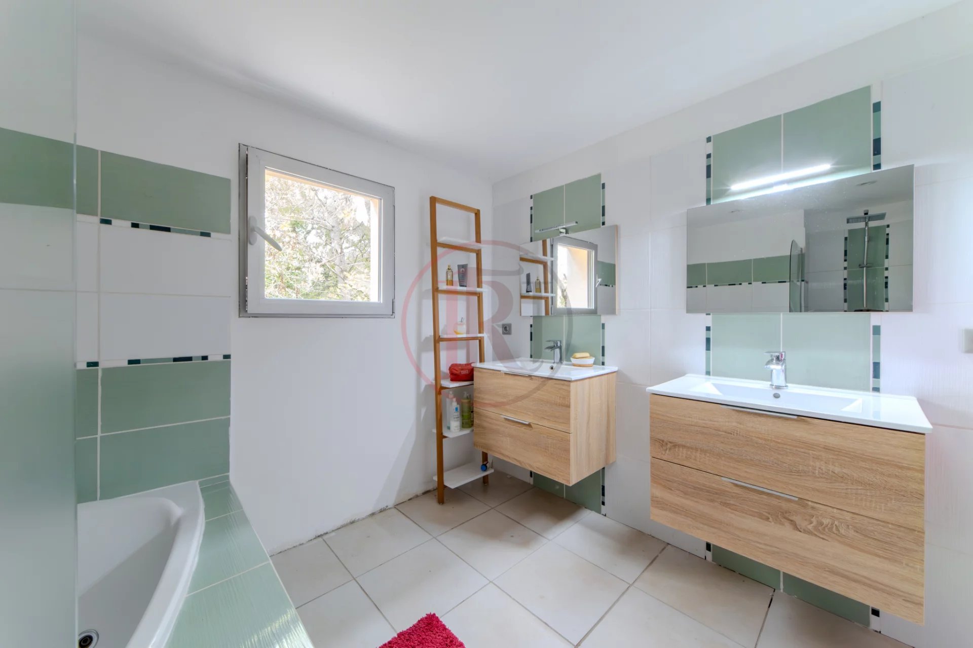 Prades le Lez, proximité du centre sur les hauteurs une jolie villa bio climatique, construction traditionnelle dans un environnement privilégié, avec de très belles prestations actuelles, d'une surface habitable de 186.71 m², grande pièce jour, cinq chambres, dont trois en rez de chaussée, possibilité de faire une sizième chambre, salle de bain, salle d'eau,cuisine équipée, mezzanine, plancher chauffant, et rafraichissant, pompe à chaleur, cheminée, poele, grand cellier de 24 m² isolé, garage de 50 m², piscine 6X4, appartement T2 de 41.59m² indépendant, possibilité de le louer 750 € par mois, le tout sur un terrain de 730 m² arboré, sans vis à vis