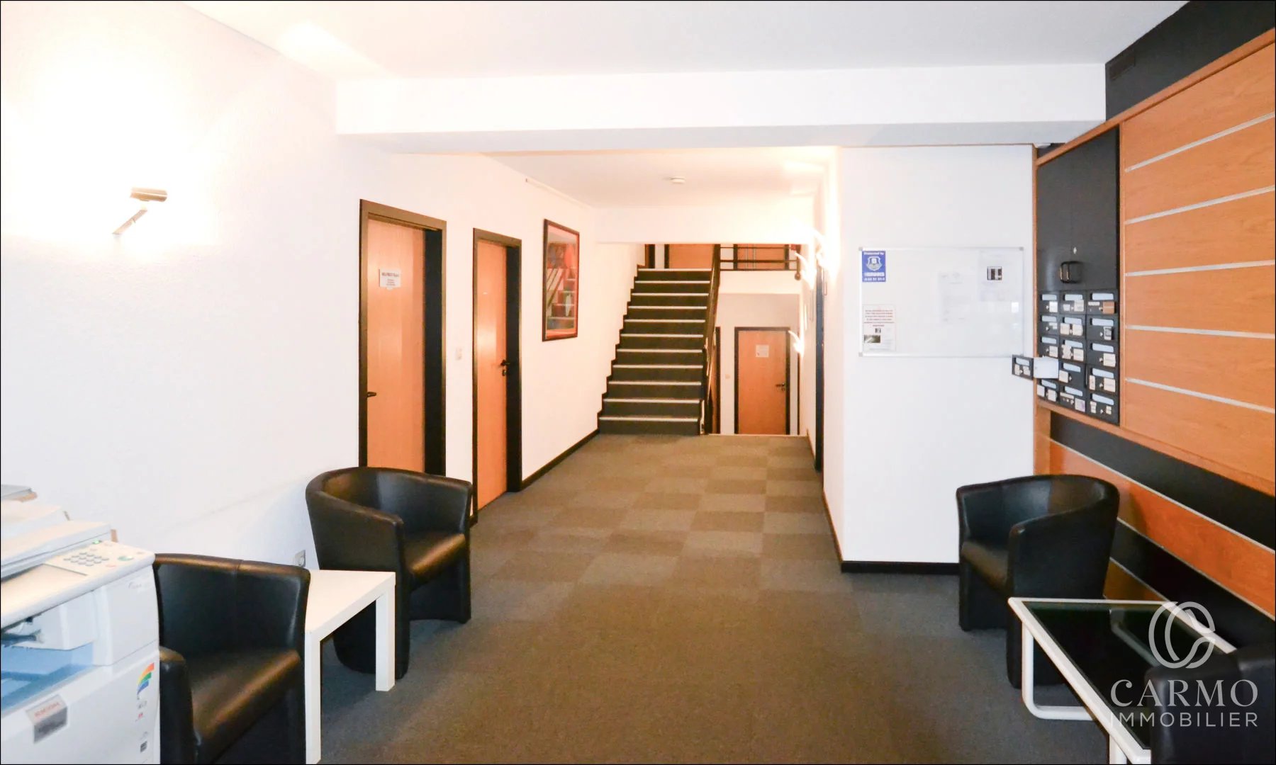 Situé au 37 Val Saint André à Luxembourg, cet immeuble professionnel propose plusieurs bureaux meublés à la location dans un cadre fonctionnel, moderne et bien équipé. Répartis sur différents niveaux, les espaces de travail conviennent parfaitement aux petites structures, indépendants ou professions libérales. Chaque bureau est entièrement aménagé, avec une capacité de un à trois postes de travail selon la surface. Les loyers incluent des charges fixes couvrant l’eau, l’électricité, le chauffage, le nettoyage des bureaux et des parties communes ainsi que l’entretien général de l’immeuble. L’immeuble dispose d’un hall d’accueil, d’une salle de réunion accessible gratuitement sur réservation, d’une cuisine équipée avec machine à café, micro-ondes, réfrigérateur, d’un distributeur d’eau, de sanitaires, d’une salle de douche, d’un espace d’archives et d’un copieur/imprimante partagé. L’accès est sécurisé par un système d’alarme actif 7j/7. Des emplacements de parking intérieurs sont proposés à 200,00 € HTVA par mois, complétés par plusieurs places disponibles devant le bâtiment. Des services complémentaires peuvent être mis en place à la demande, notamment la gestion du courrier entrant/sortant ou l’installation d’une ligne téléphonique interne. Cet immeuble offre un environnement de travail qualitatif dans un secteur recherché de la capitale, avec un accès rapide aux grands axes et aux infrastructures urbaines. Contactez David CARMO au +35220600816 ou office@carmoimmo.lu. Ce bien est présenté par Carmo Immobilier (+352-20600816). Plus d’infos sur www.carmoimmo.lu.