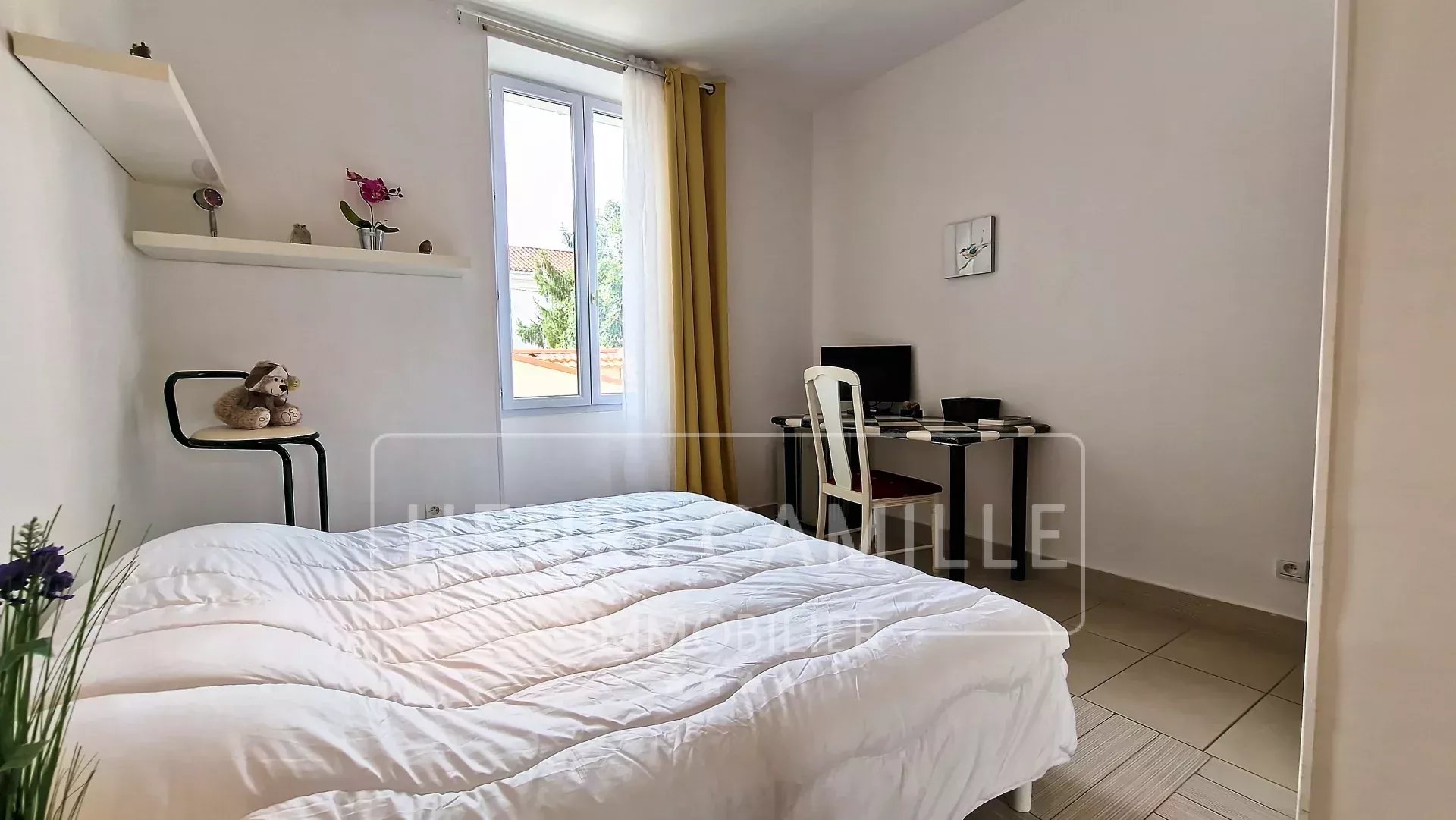 Il est composé d'une grande pièce de vie avec salon, salle à manger et cuisine, donnant sur une petite terrasse ensoleillée toute la journée ; une chambre avec lit double et sa salle de douche et WC, une deuxième chambre avec 2 lits simples, une 3ème chambre avec un lit double et un lit simple, sa salle de douche moderne et WC.