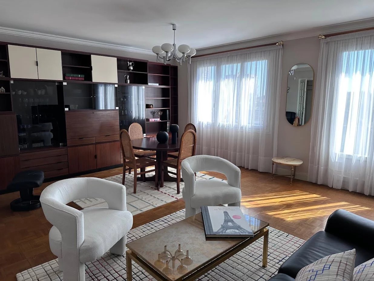 Situé dans une rue calme dans au dernier étage d'une copropriété bien entretenue, à 400 m de la gare de CLAMART et 1km du métro ligne 12 (Mairie d'ISSY), bel appartement familiale de 98 m² loué meublé comprenant un séjour double avec balcon, une grande cuisine dinatoire entièrement équipée, 3 chambres, une salle de bain, des wc, de nombreux placards et un parking en sous-sol.