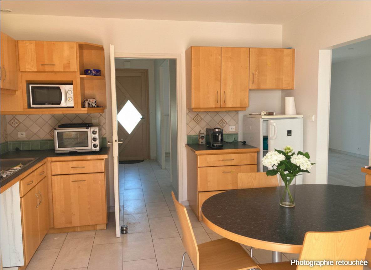 Exclusivité ABL IMMOBILIER - Dans un environnement calme et verdoyant, à seulement quelques minutes des écoles, commerces, et transports, découvrez cette maison non mitoyenne à la vie de plain-pied, idéale pour une vie confortable en famille. Les atouts principaux : Pièce de vie traversante lumineuse de 33 m² exposée Ouest, ouvrant sur une grande terrasse carrelée, ainsi que la cuisine indépendante aménagée et équipée, 3 chambres, une salle d'eau et un wc. Une chambre d'appoint a été aménagée dans les combles avec salle d'eau et wc : parfait pour bureau, télétravail ou invités. Garage attenant, chaufferie, cave : des espaces fonctionnels de rangements. Terrain de 902 m², arboré, avec cabanon de jardin. Travaux récents et confort moderne : salle d'eau et sols refaits, volets roulants électriques, VMC, jardin paysager en façade. Contactez-nous pour plus d'informations ou envisager une visite. Romuald ROUSSET Agent commercial immatriculé au RSAC de NANTES sous le numéro 791548050 Romuald ROUSSET (EI) Agent Commercial - Numéro RSAC : - .