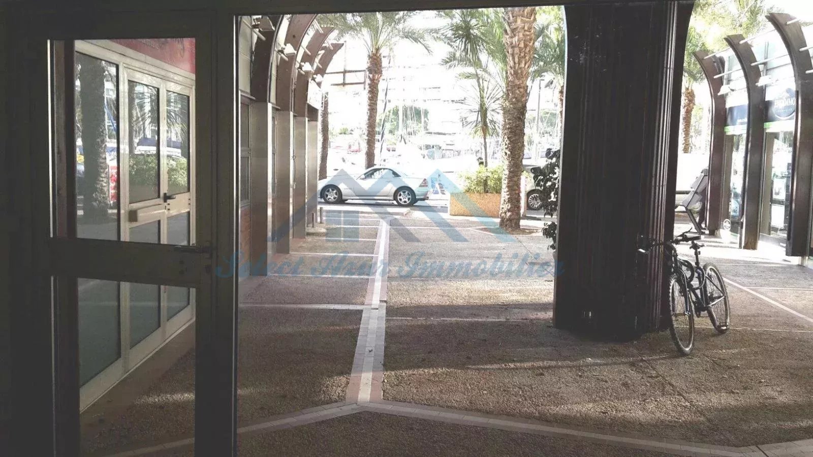 Local commercial à louer à Marina Baie des Anges : 27 m² en rez de chaussée et 46 m² en sous sol. En haut grand bureau, en bas, 1 grande salle, 1 bureau, 1 coin cuisine, 1 douche, 1 WC