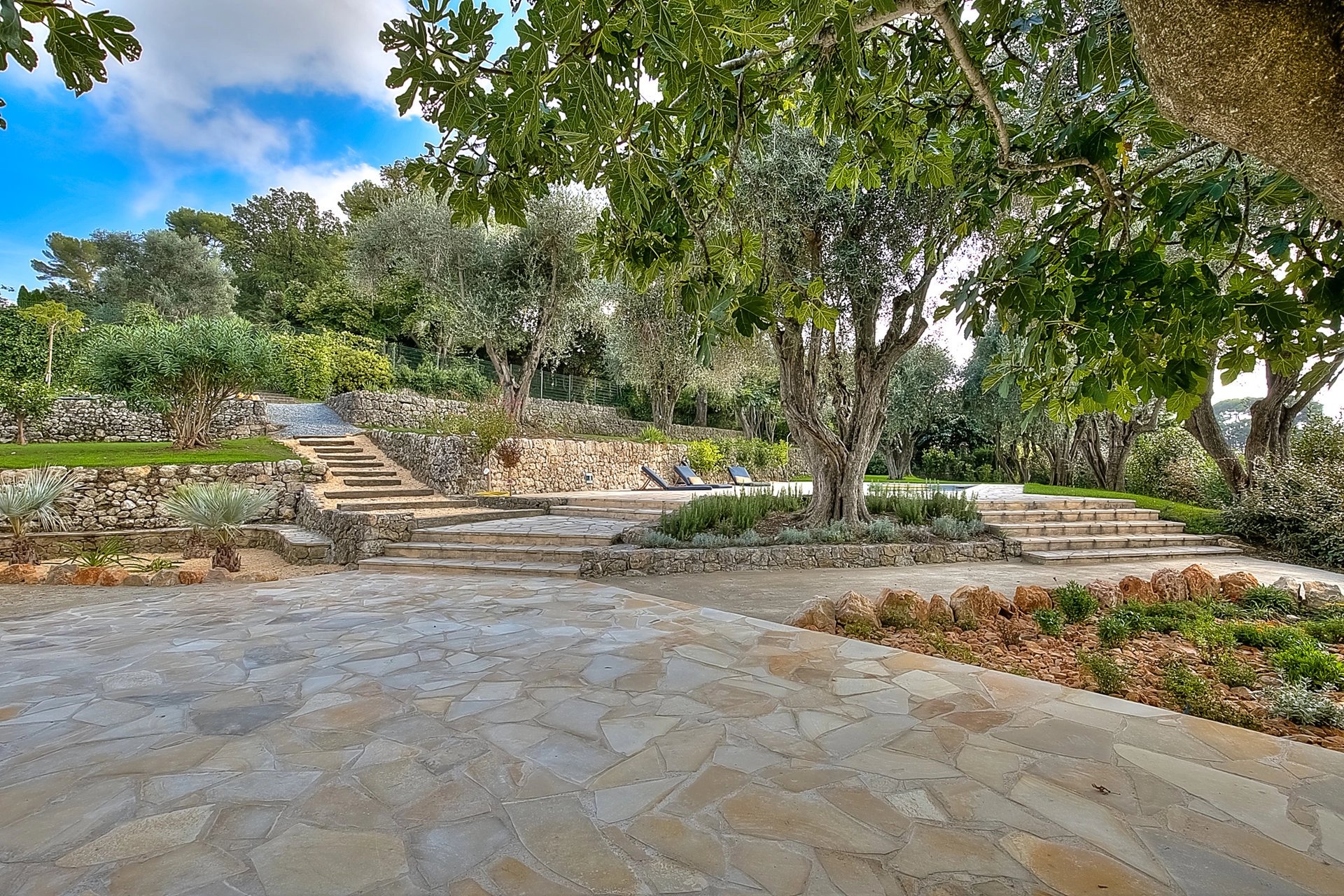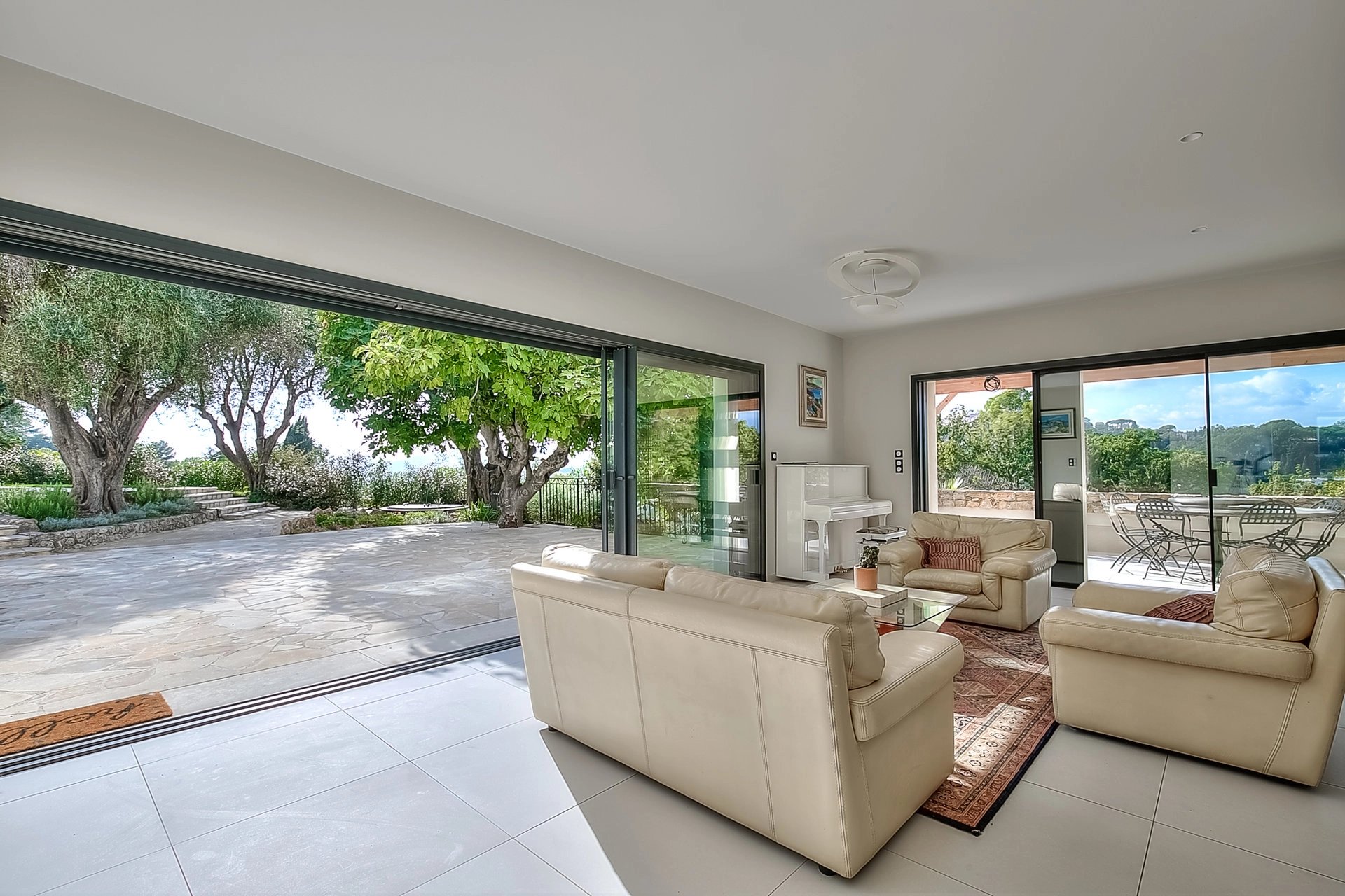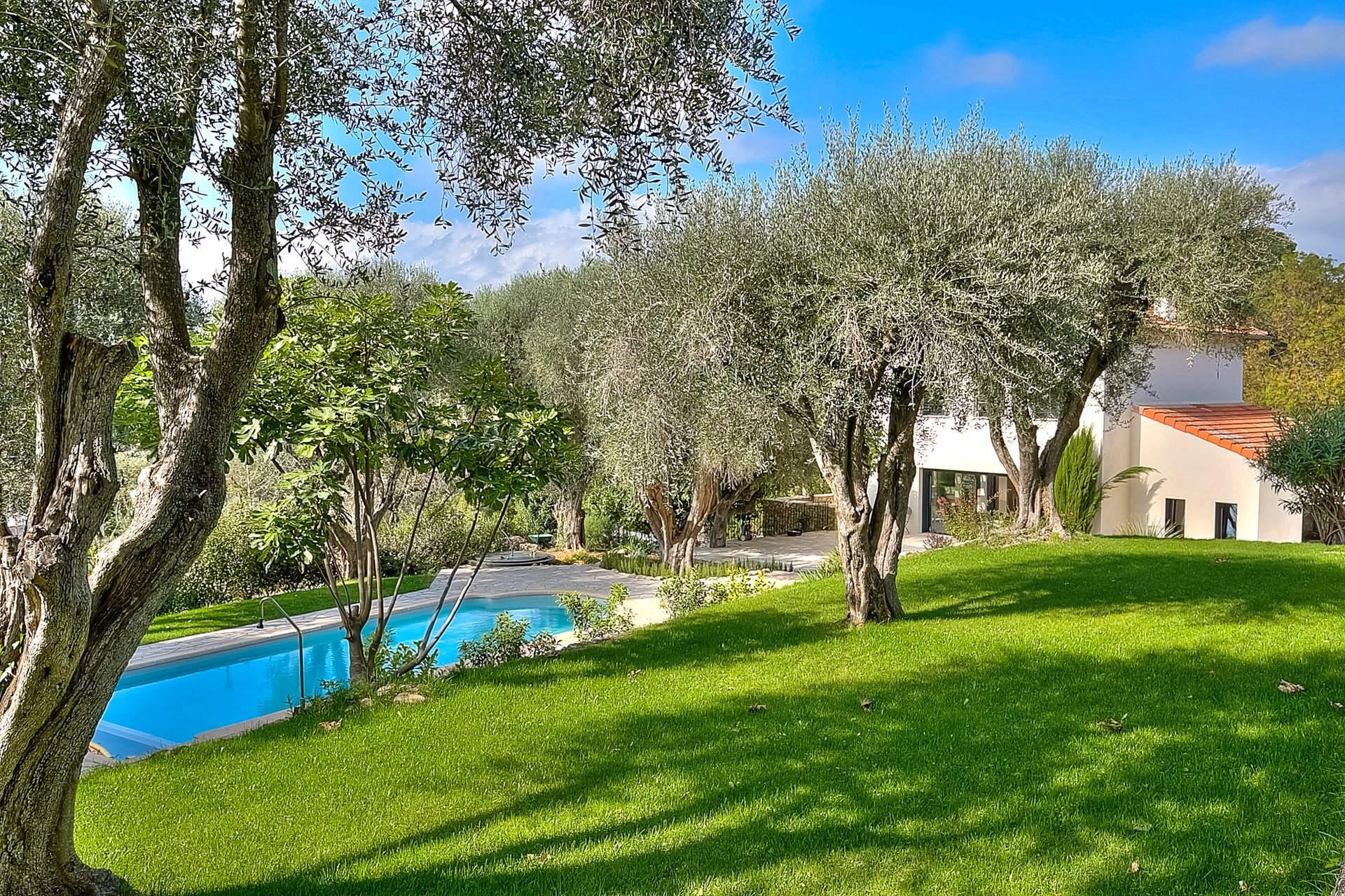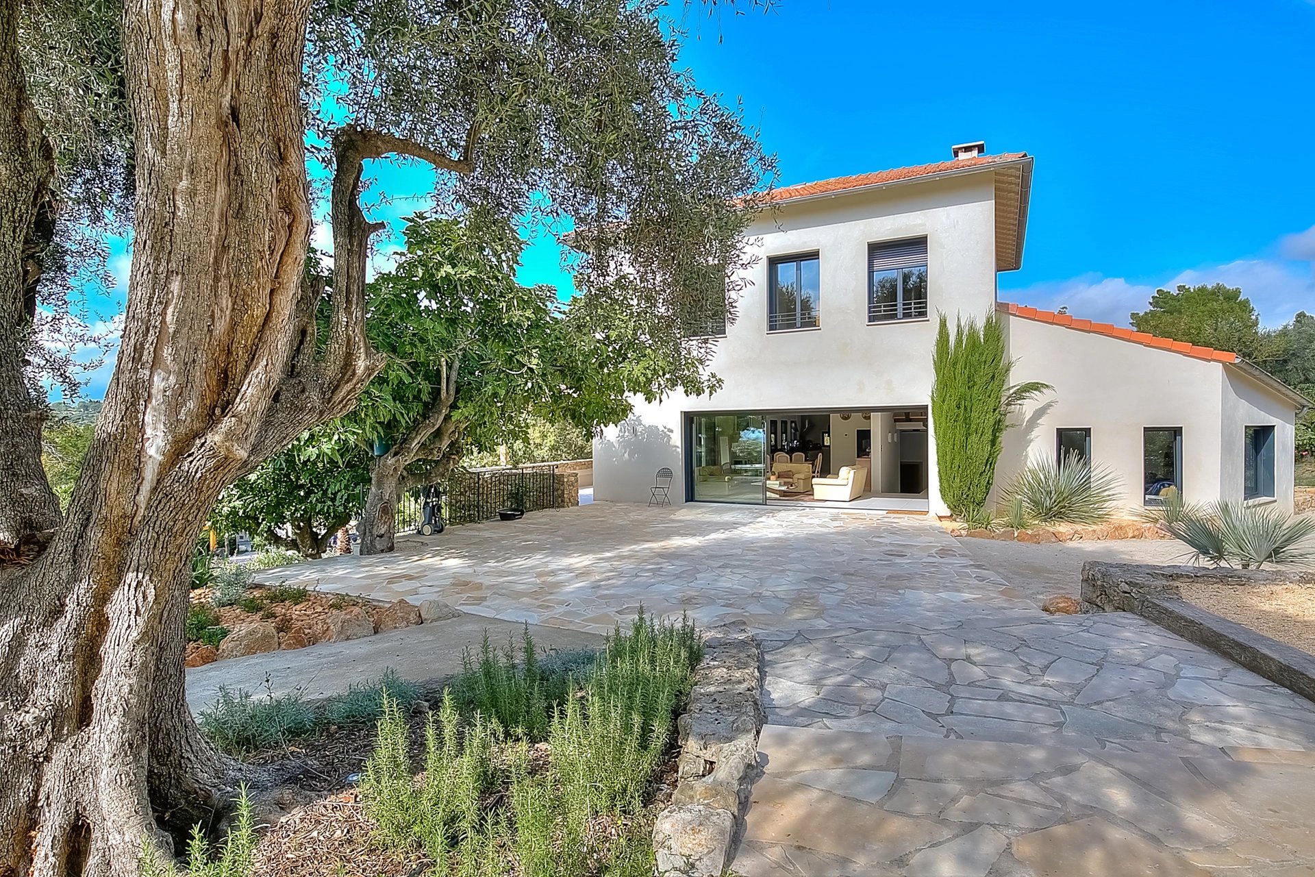 Au calme d'un écrin de verdure de 3400m2 arboré d'oliviers centenaires tout en étant proche de tout; Belle villa provencale d'environ 230m2 profitant d'une superbe vue sur le village de Mougins.
