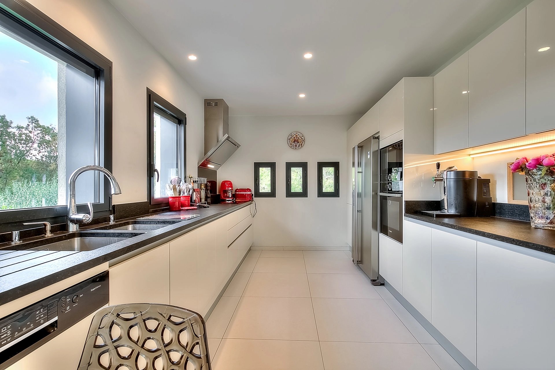 L'espace séjour - salle à manger cuisine ouverte est très lumineux, ouvert sur l'extérieur et profite d'une très jolie vue; Depuis le salon "cozy" vous profiterez des soirées d'hiver autour de la cheminée.