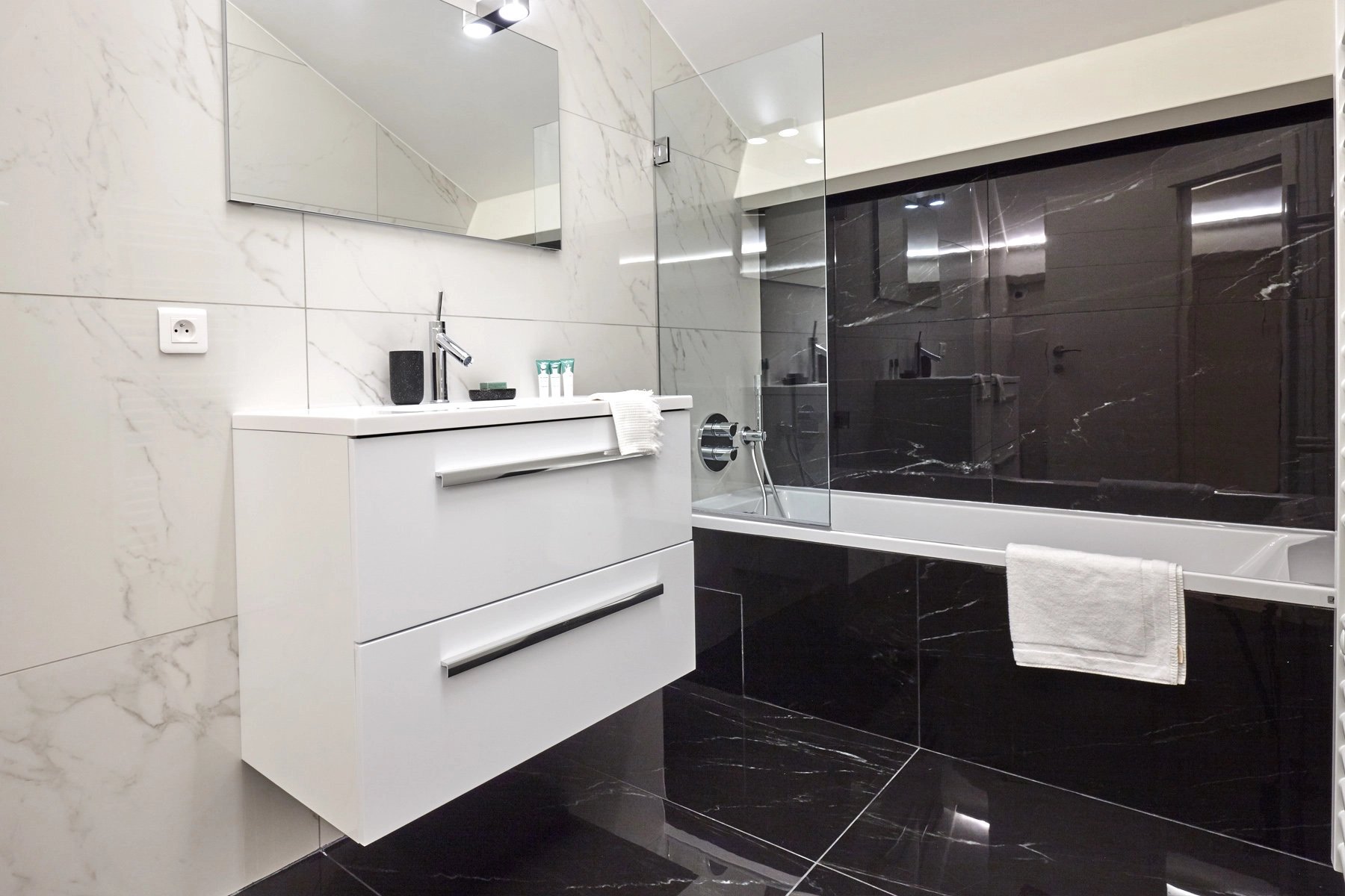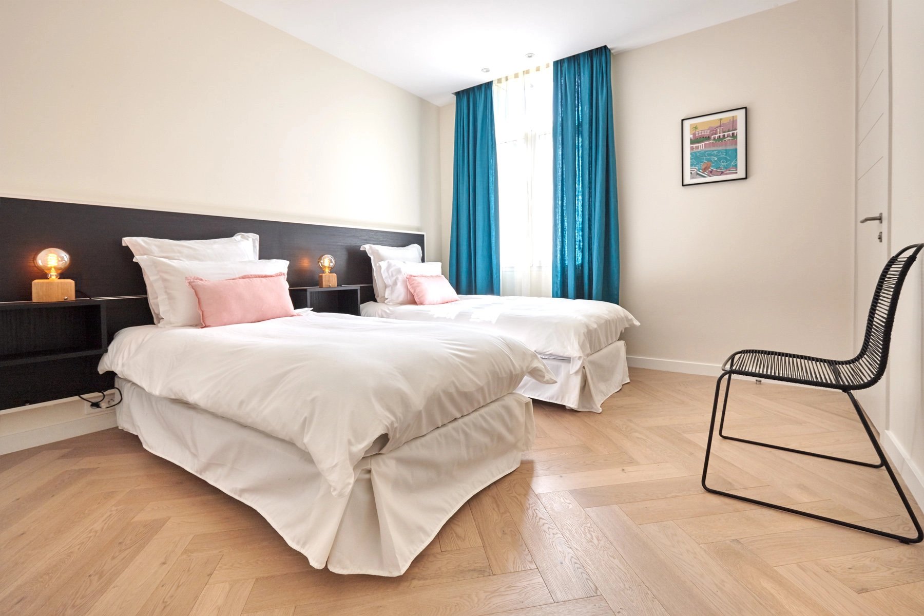 Grand duplex de 5 pièces d'environ 125 m2 situé au 3ème étage composé en bas d'une entrée, un salon séjour, une cuisine équipée, wc invités, couloir, une partie nuit avec wc, 2 chambres avec dressing et chacune sa salle de douche. Climatisé, internet, machine à laver séchante, lave vaisselle, TV en haut: une grande chambre avec dressing et salle de bain/wc