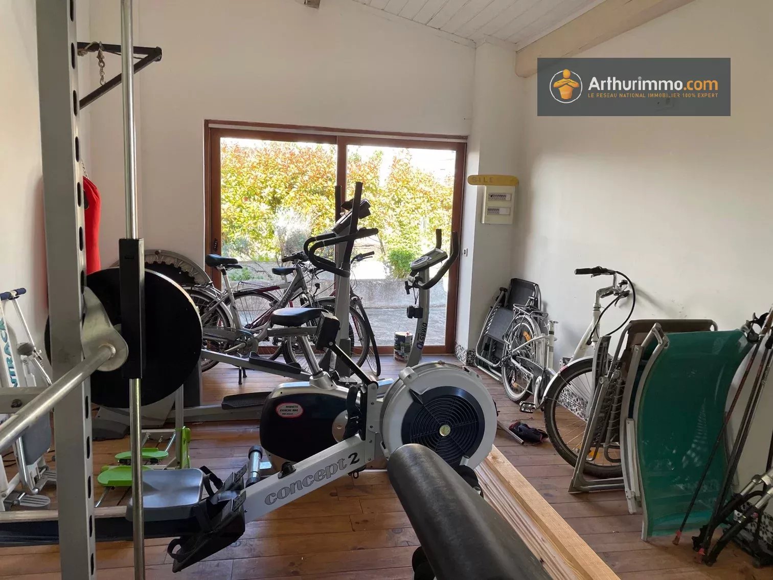 En extérieur, salle de sport indépendante avec grandes baies vitrées, hammam, douche et toilettes.