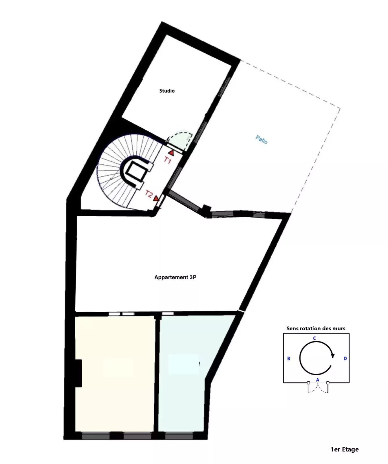 1er étage / Studio 18,10 m2 + Appartement 3 pièces avec 2 chambres 85,50 m2