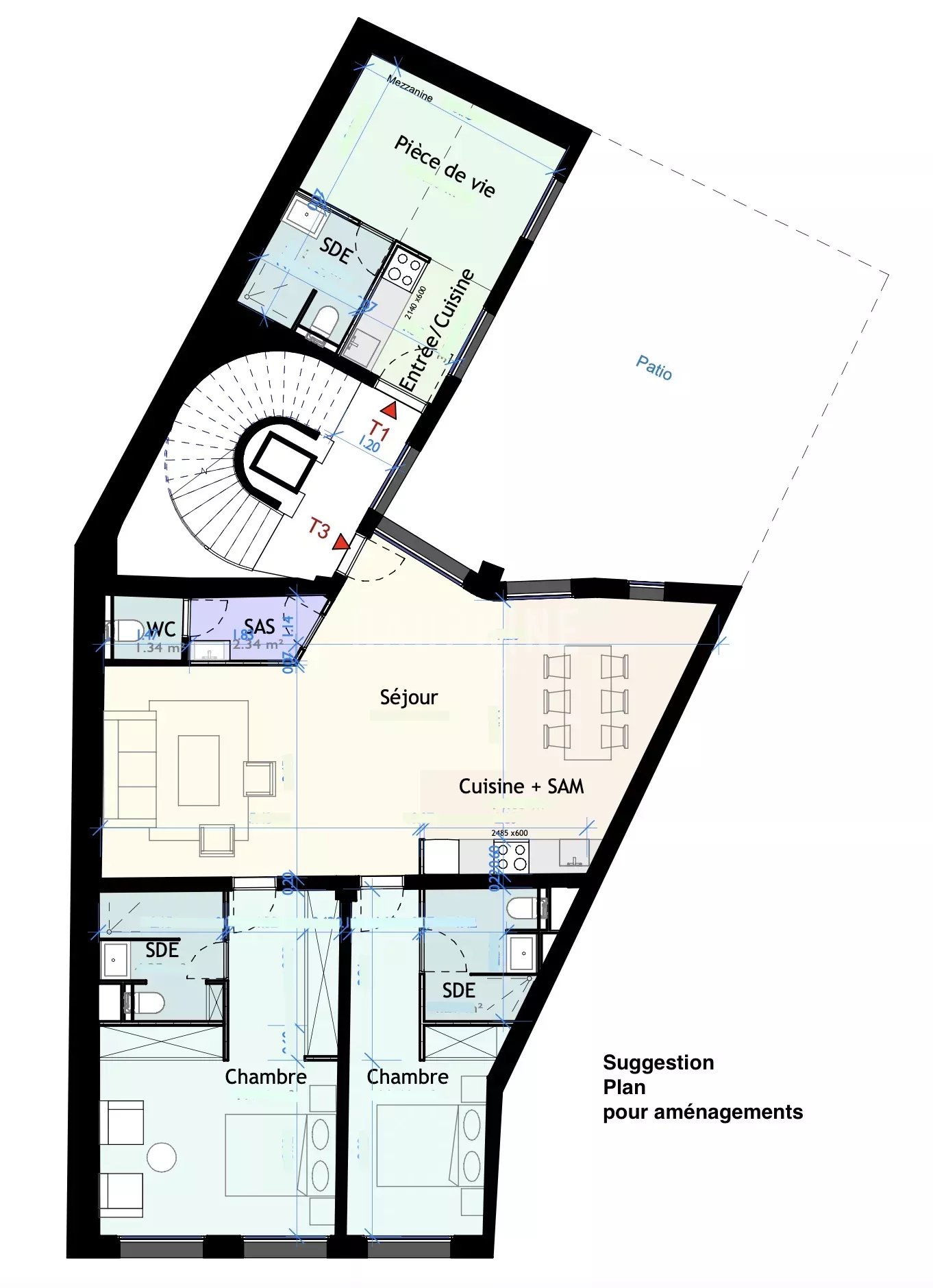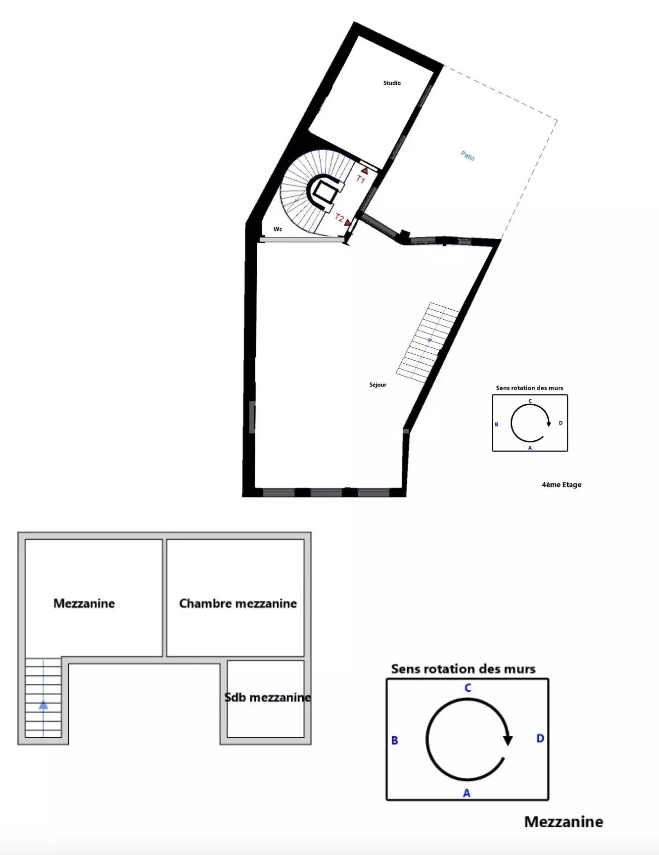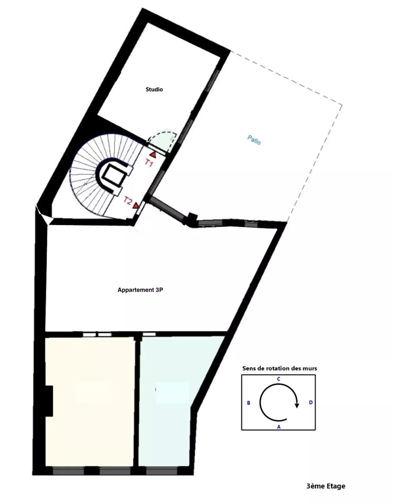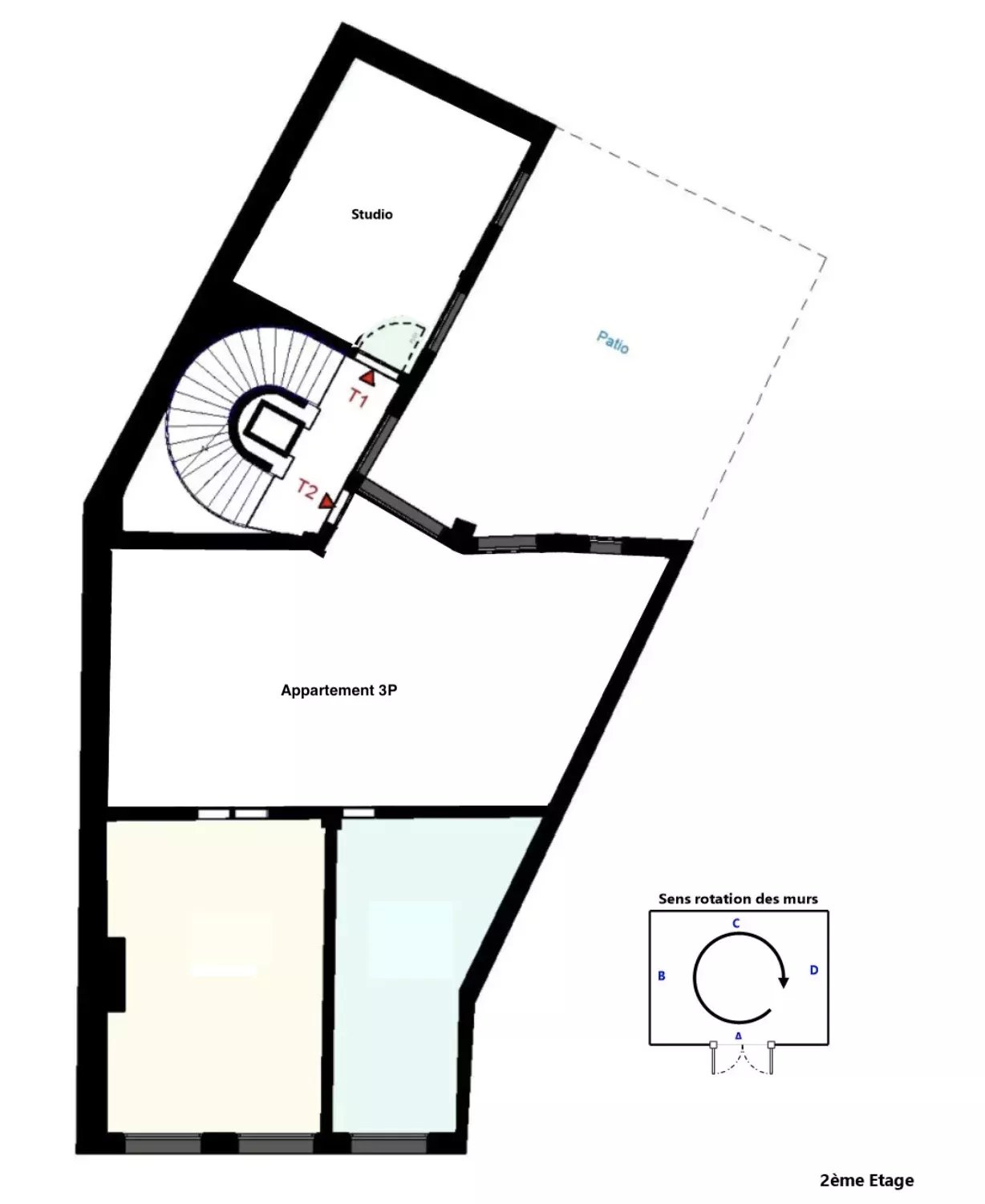 2e étage / Studio 18,10 m2 + Appartement 3 pièces avec 2 chambres 84,50 m2