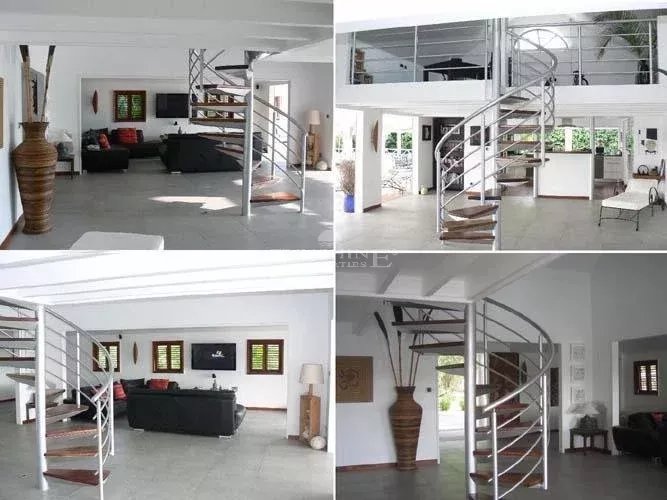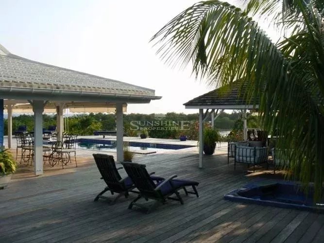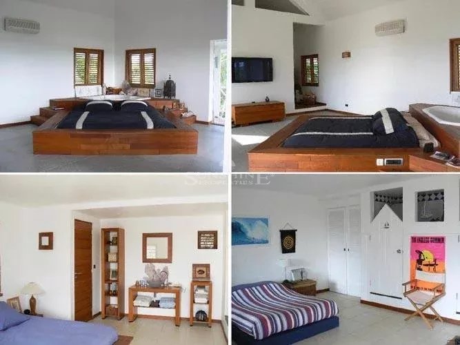 Localisation : suite sur les « Lowlands » du côté française de Saint Martin. Chambres : 3 salles de bains : 4 sur un lot de 10.000 m² (2.5 hectares) à l’intérieur de la maison sont à 290 m² avec une terrasse de 200 m² et en plus une plateforme ouverte de 250 m². Vous aviez la possibilité d’agrandir la maison de 120 m² de plus ou construire une chambre d’hôte ou un chalet de 120 m² adjacents de la petite lagune.